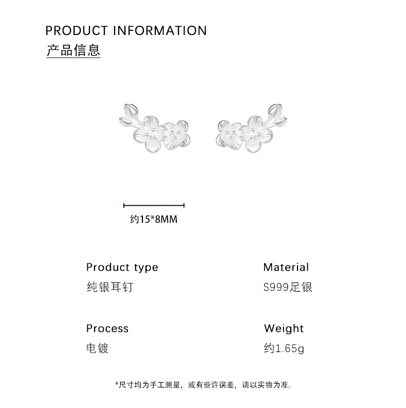 【梅花慕】S999纯银梅花花朵耳钉【YXS-E5565】