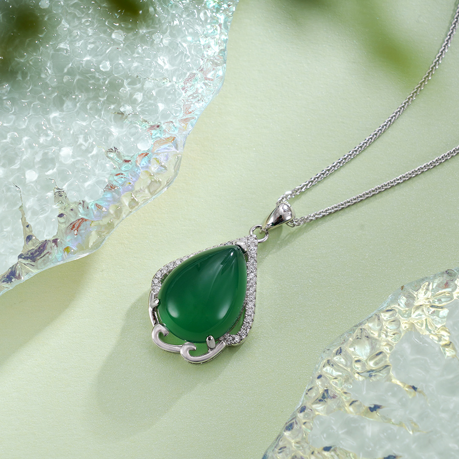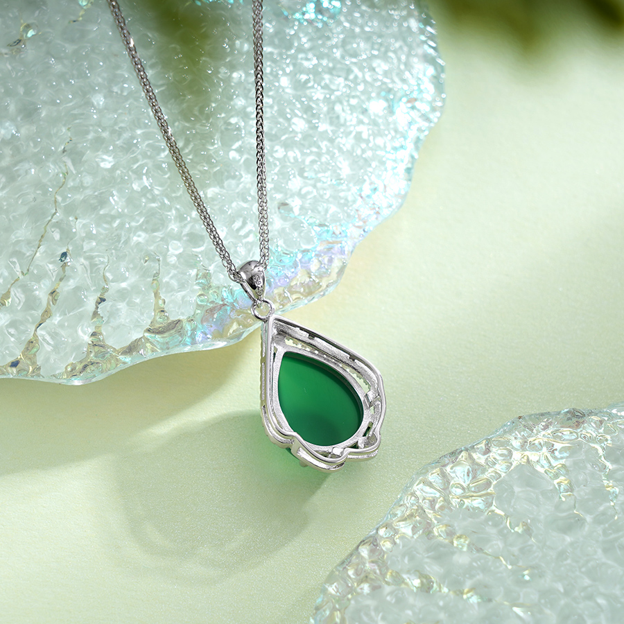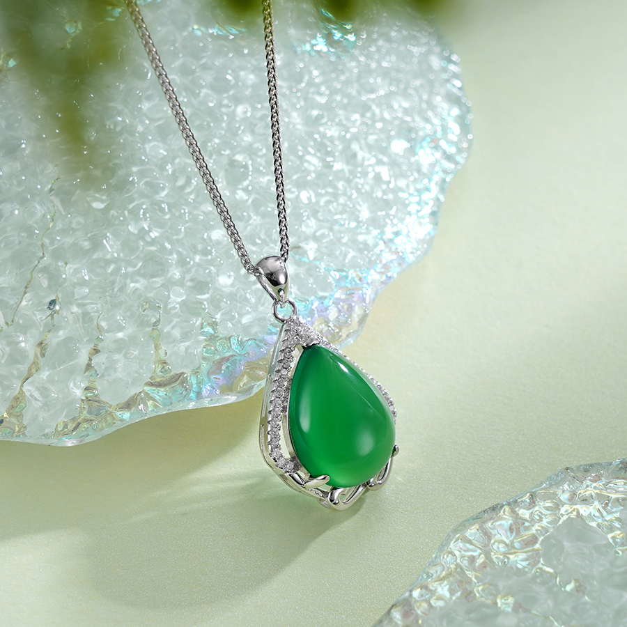 子佩集S925银四月清和套链【YHTL002】纯银绿玉髓水滴项链2408