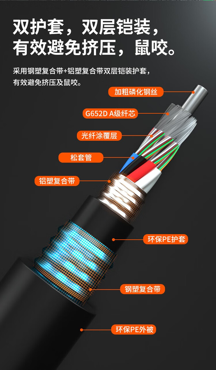 商品名称:主推国标【GYTA53双铠/重铠】地埋双铠双护套单模GYTS53铠装光缆 层绞式直埋重铠地埋铠装单模光纤线电信级架空/管道/防鼠咬4/6/8/24/48/72/96/144【足芯足米、国标品质】