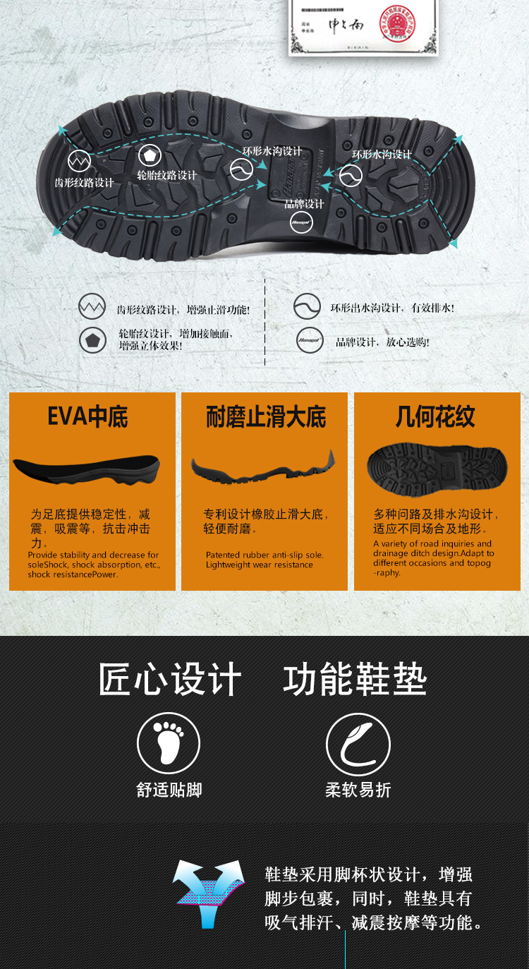 【399秒杀】悍戈Hanagal户外高帮沙漠工装靴登山徒步运动鞋防滑耐磨男女33302