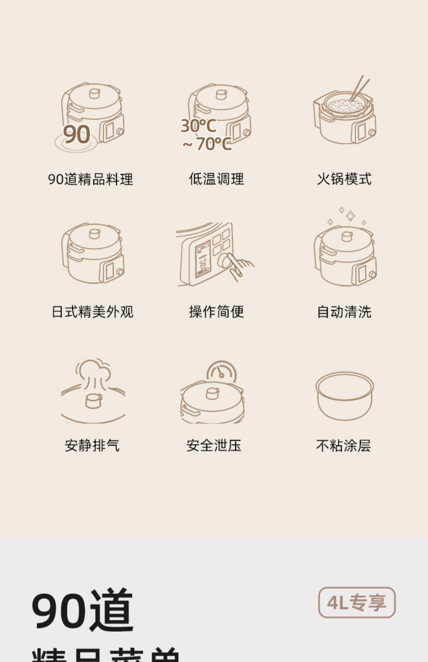 功能:煲 蒸 煮 炖 焖 预约 火锅 多功能