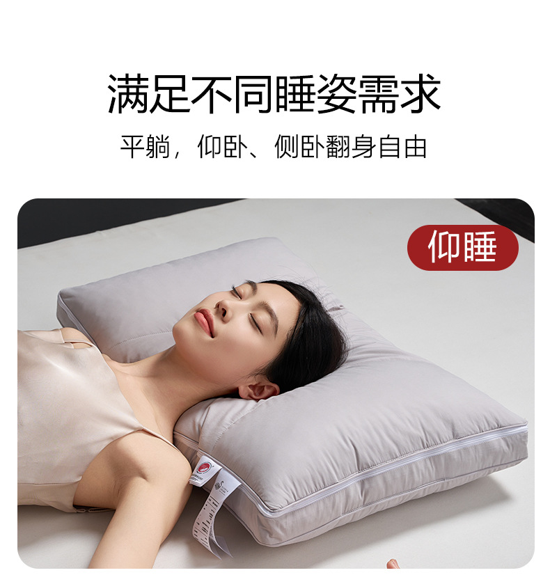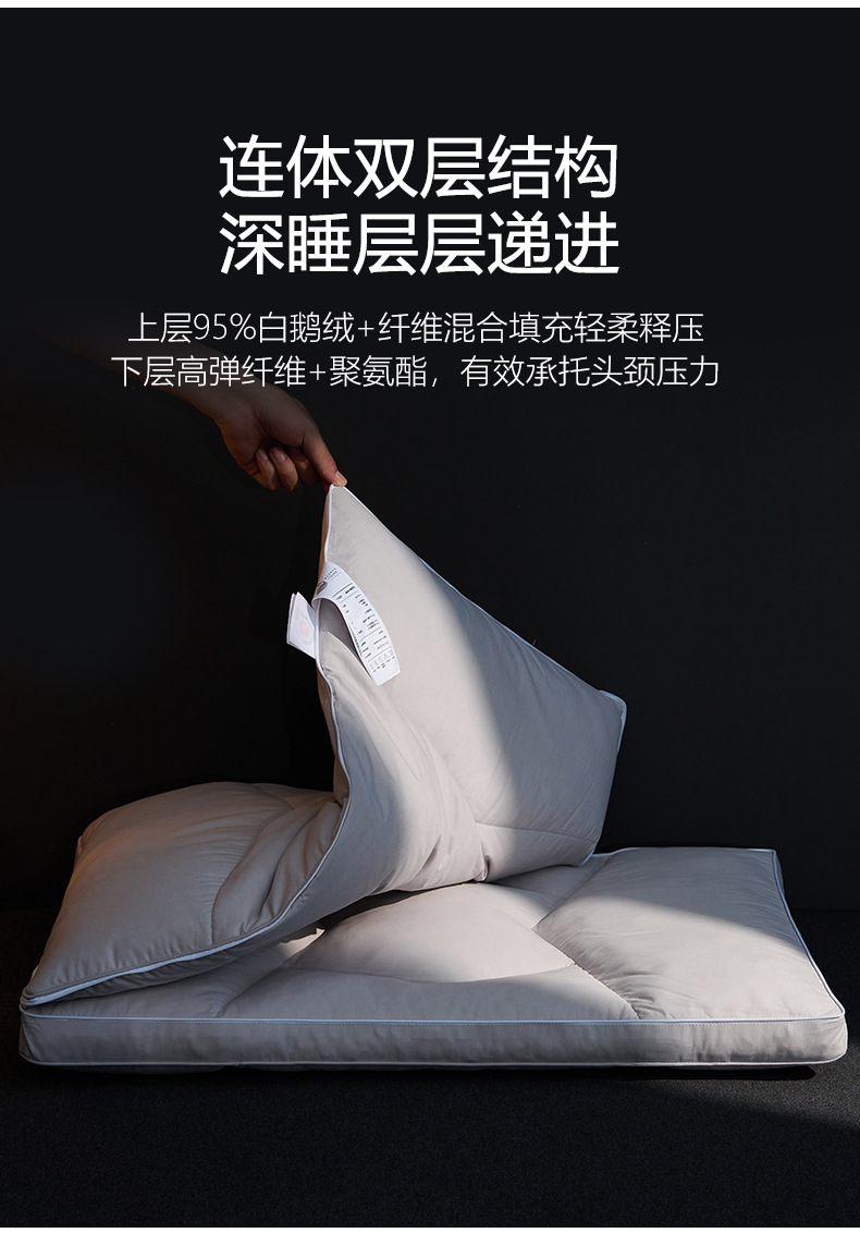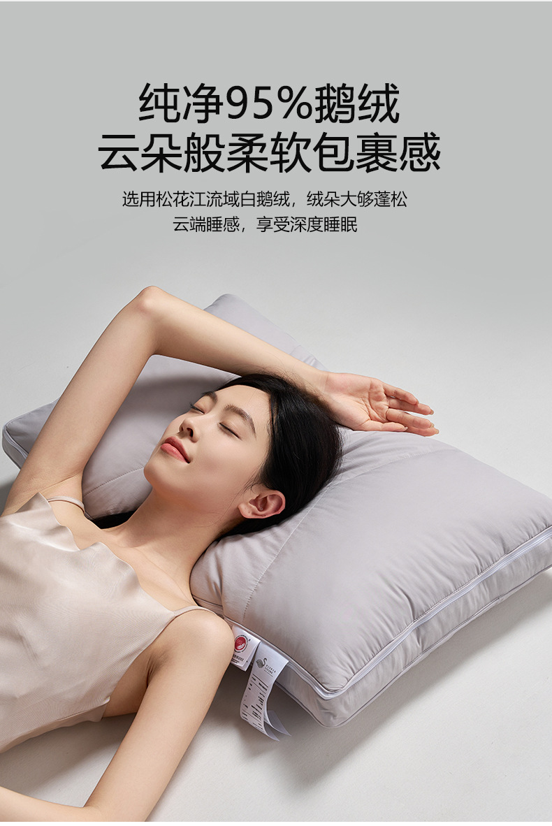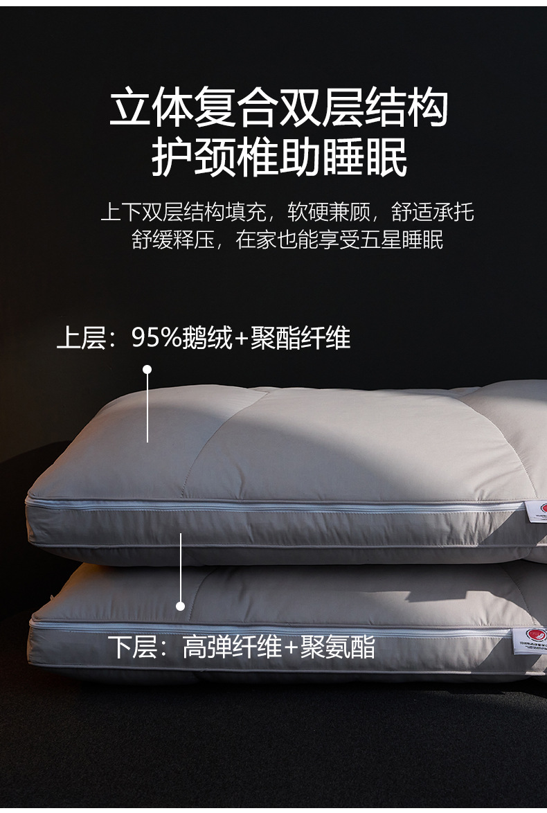 【可调节95白鹅绒T枕】95白鹅绒枕芯高端枕头T型H护颈枕慢回弹羽绒酒店民宿