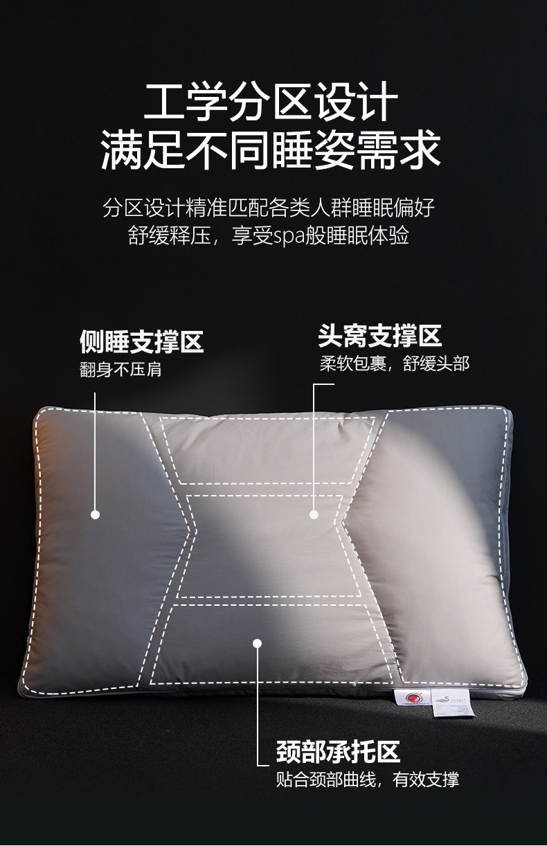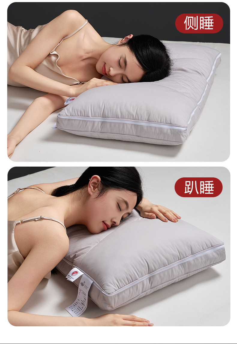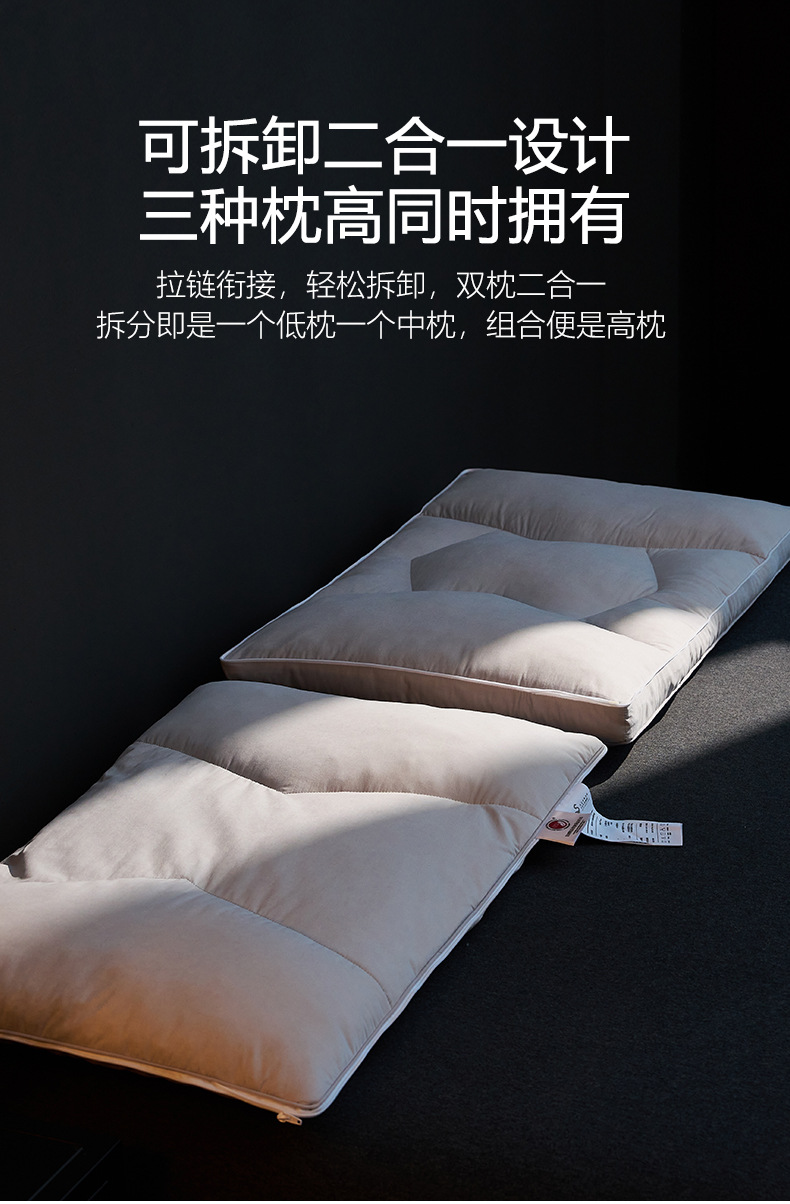 【可调节95白鹅绒T枕】95白鹅绒枕芯高端枕头T型H护颈枕慢回弹羽绒酒店民宿