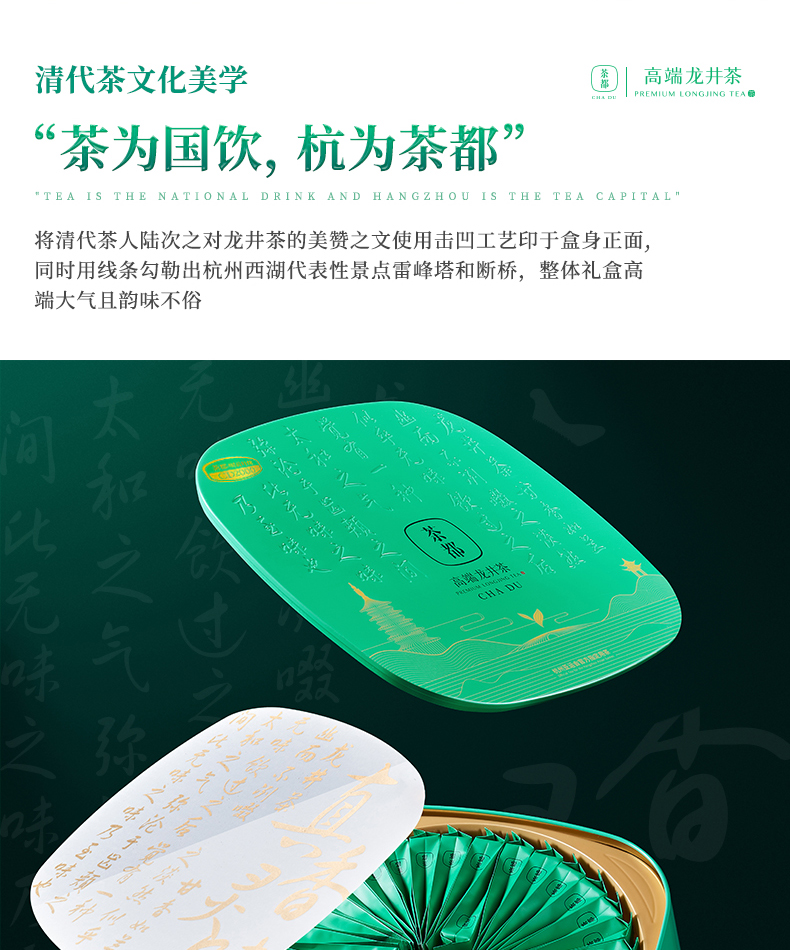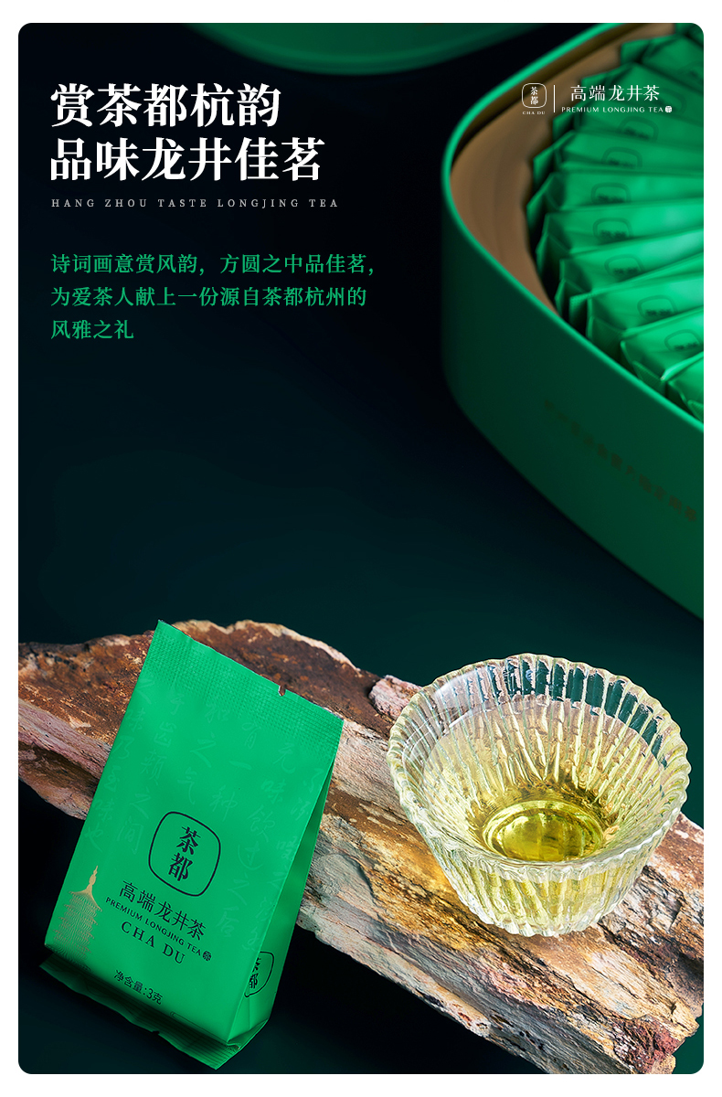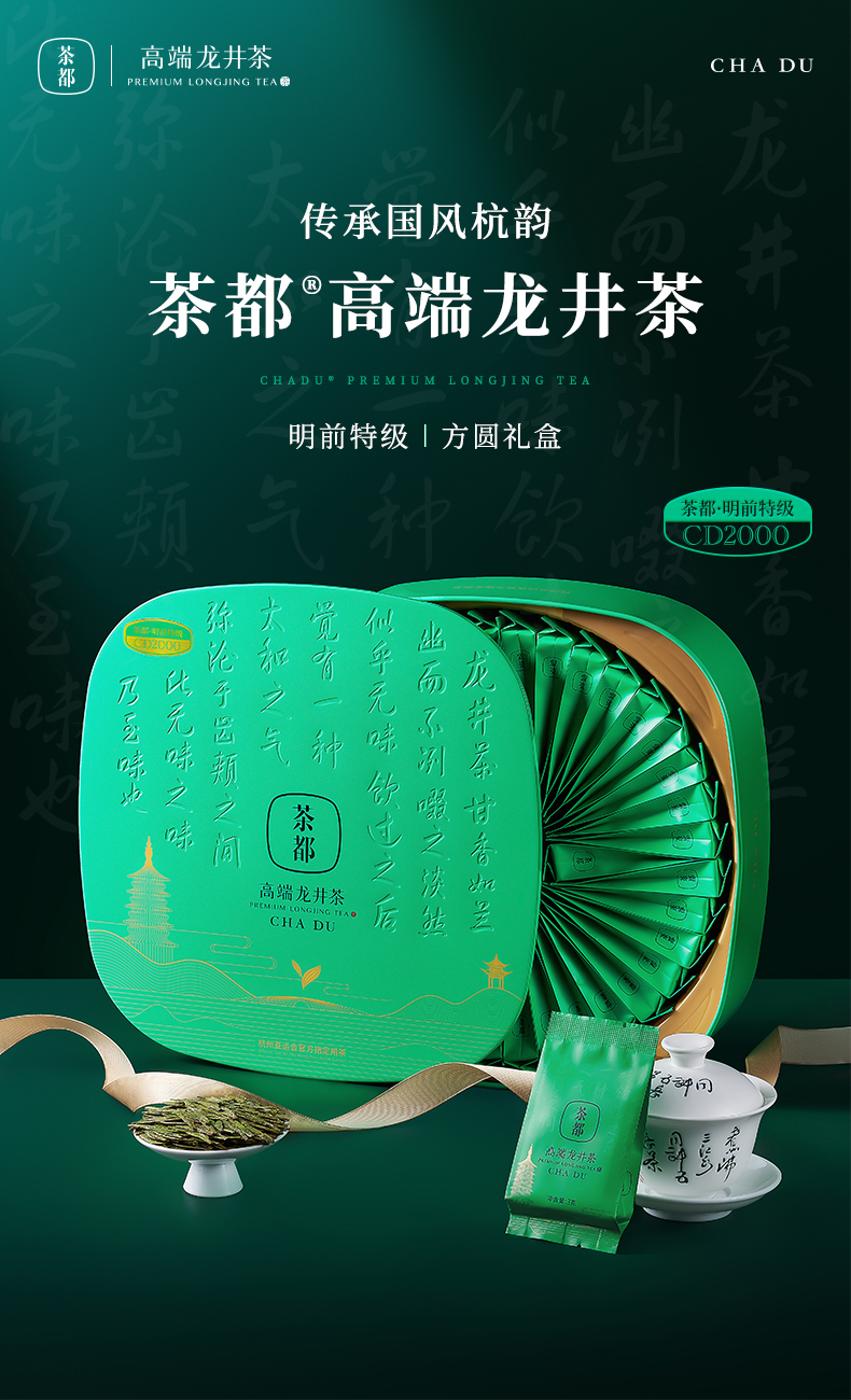 【新茶上市】茶都CD2000龙井茶杭州绿茶茶叶 明前特级 送礼长辈 方圆礼盒120g/盒