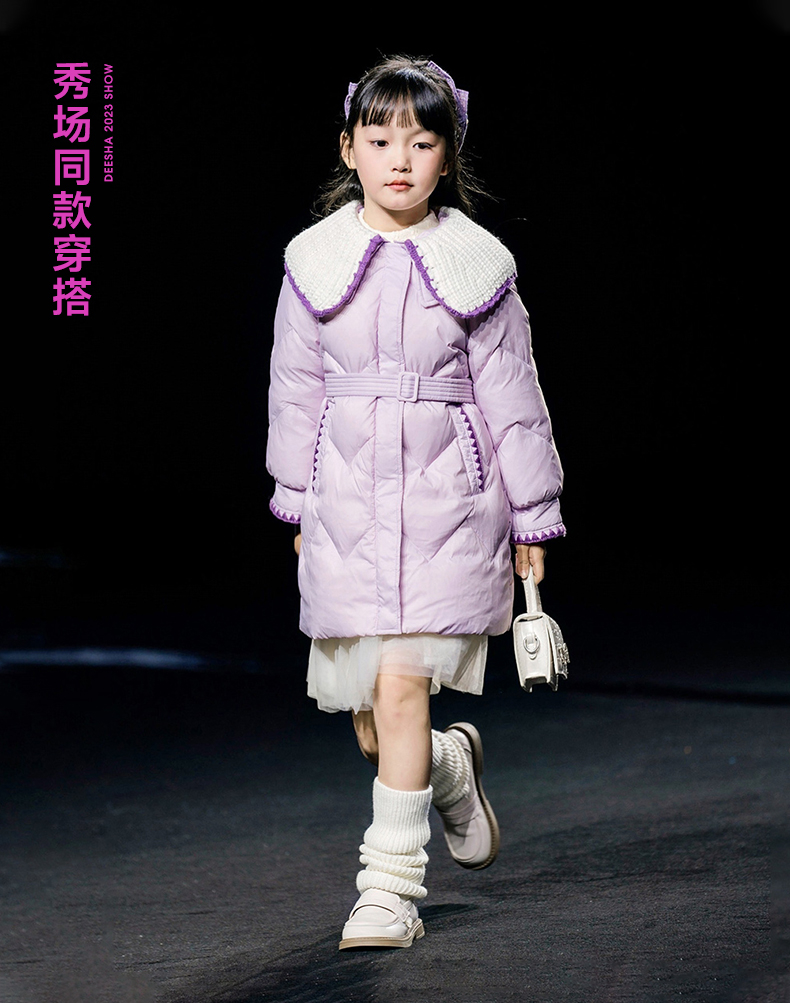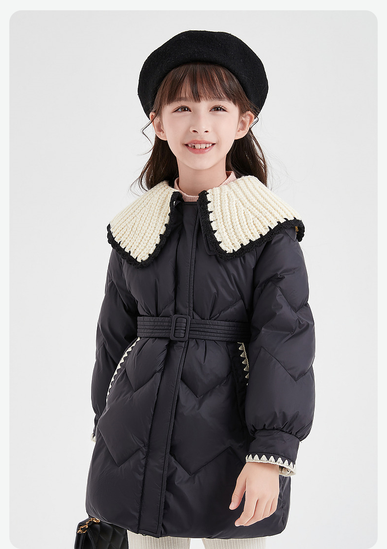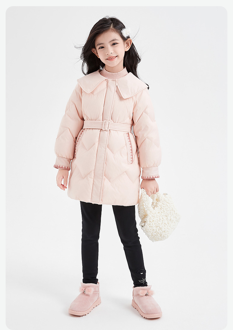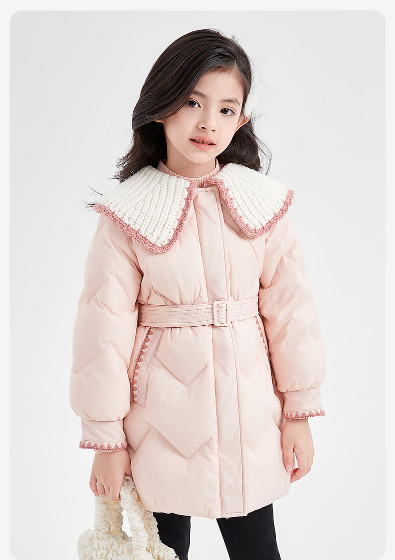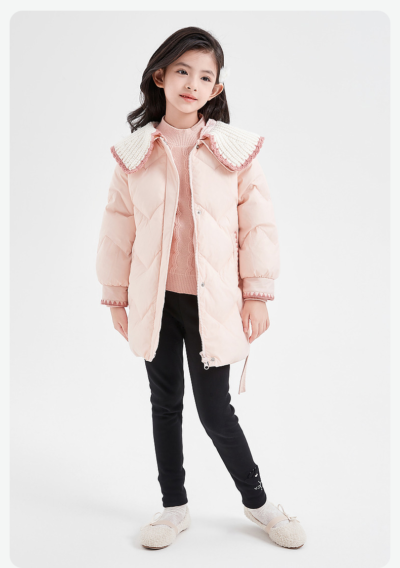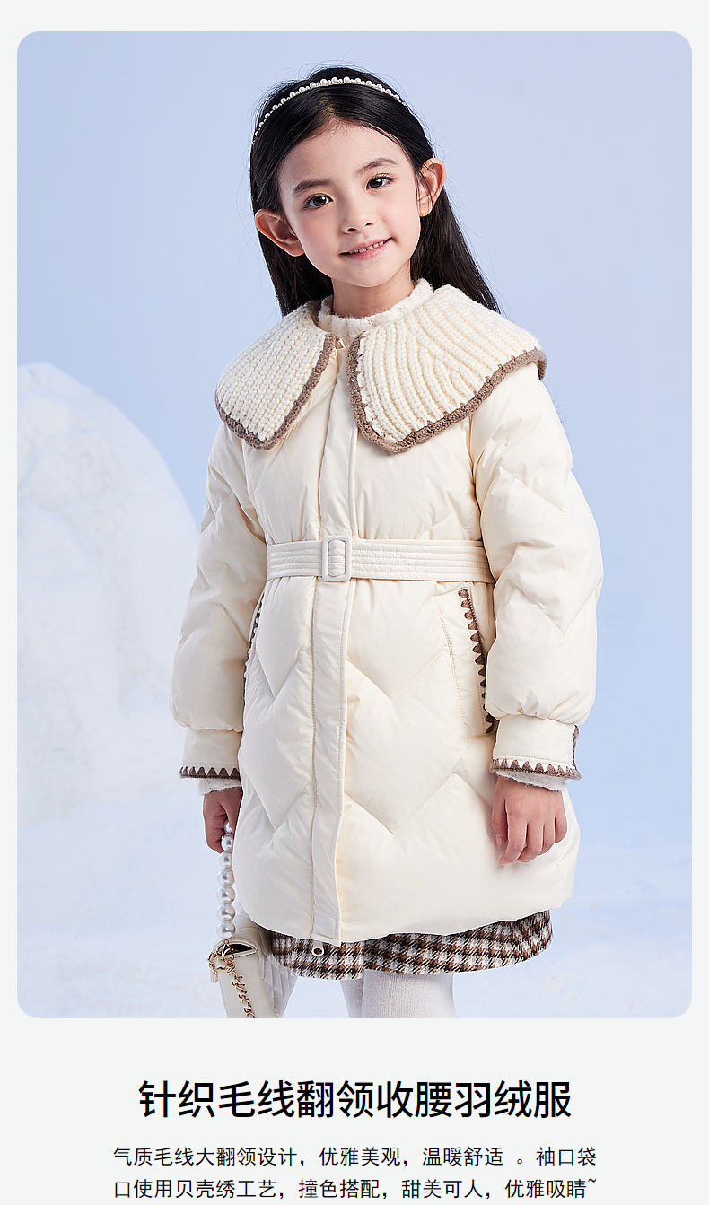 笛莎DESHA童装女童羽绒服2023冬季新款时尚翻领收腰长款羽绒服