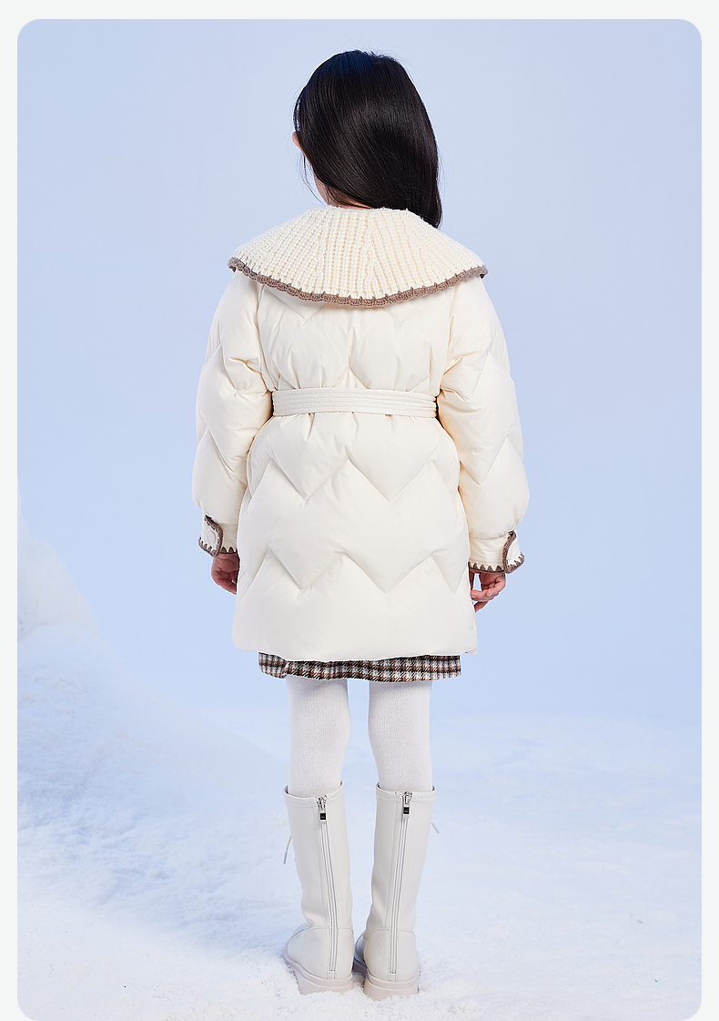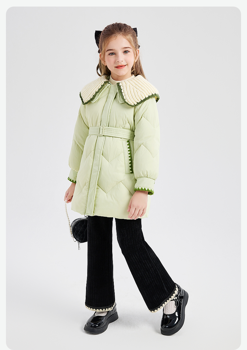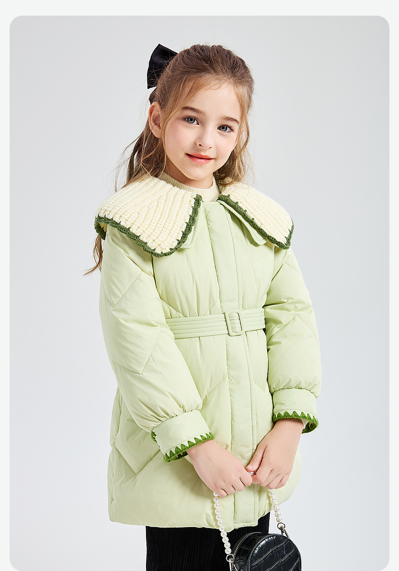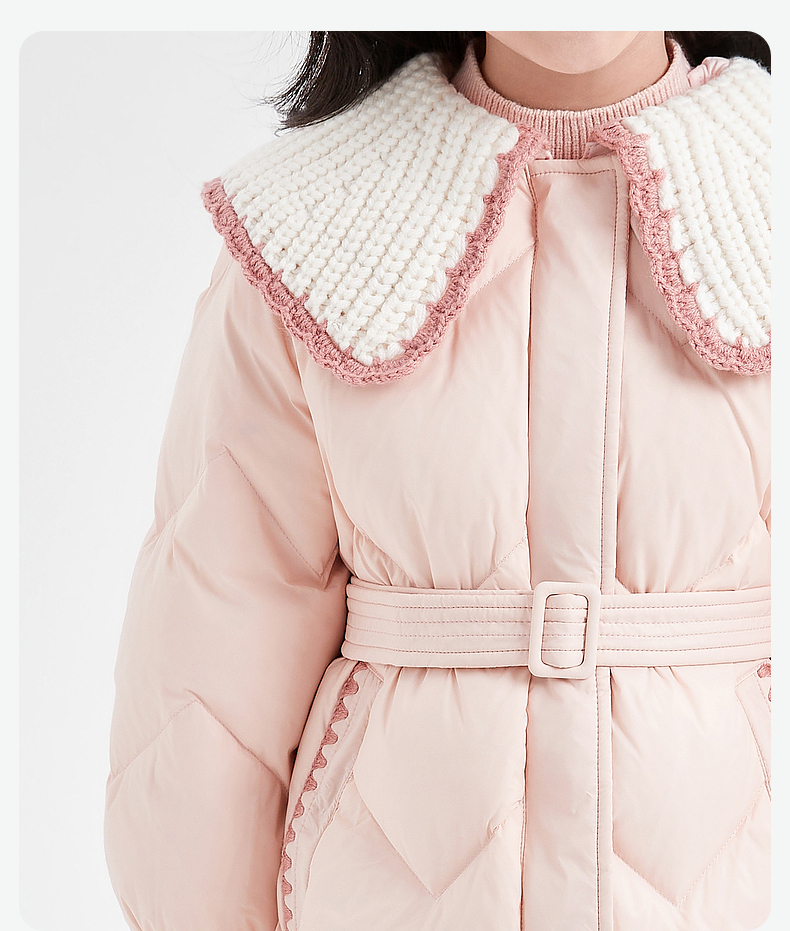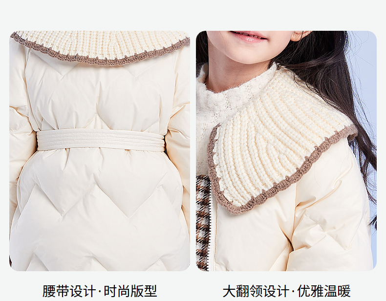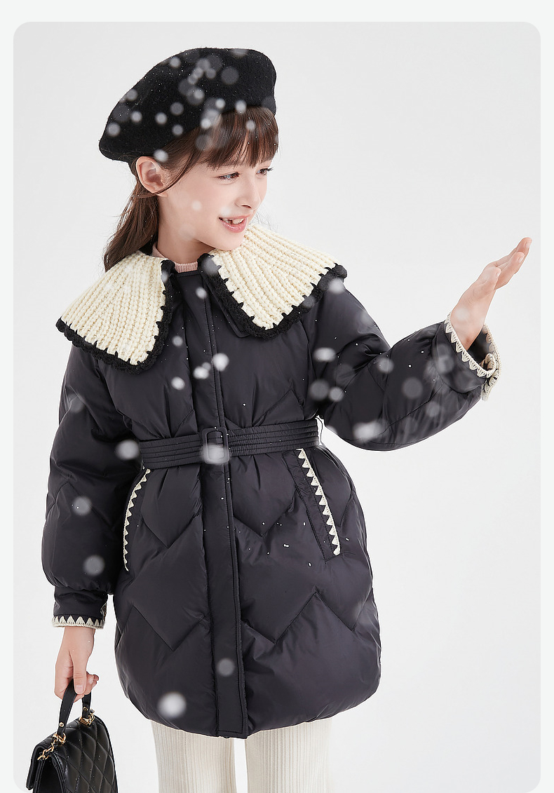 笛莎DESHA童装女童羽绒服2023冬季新款时尚翻领收腰长款羽绒服