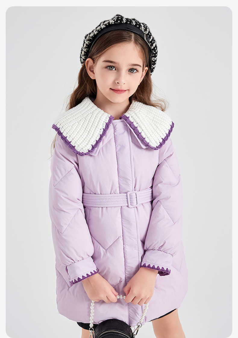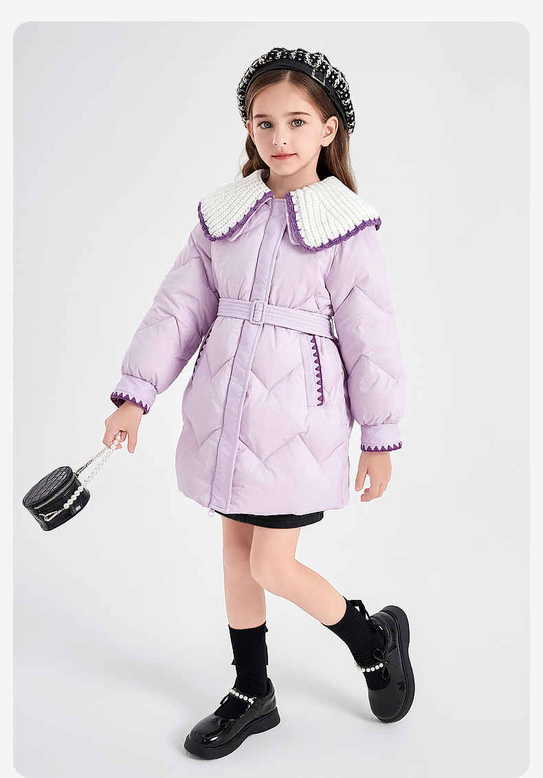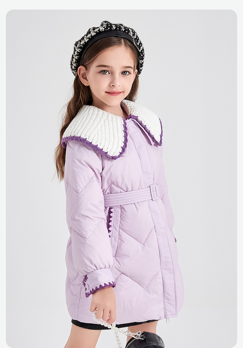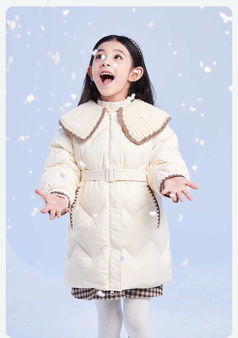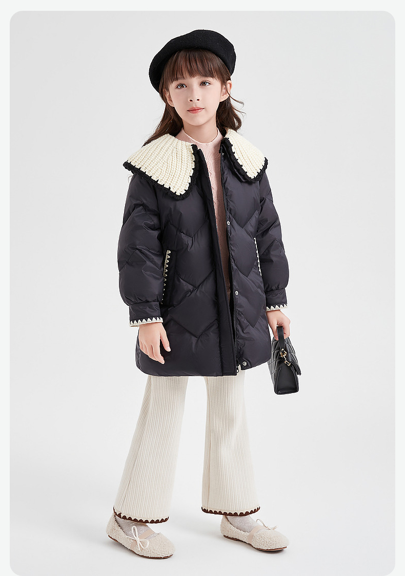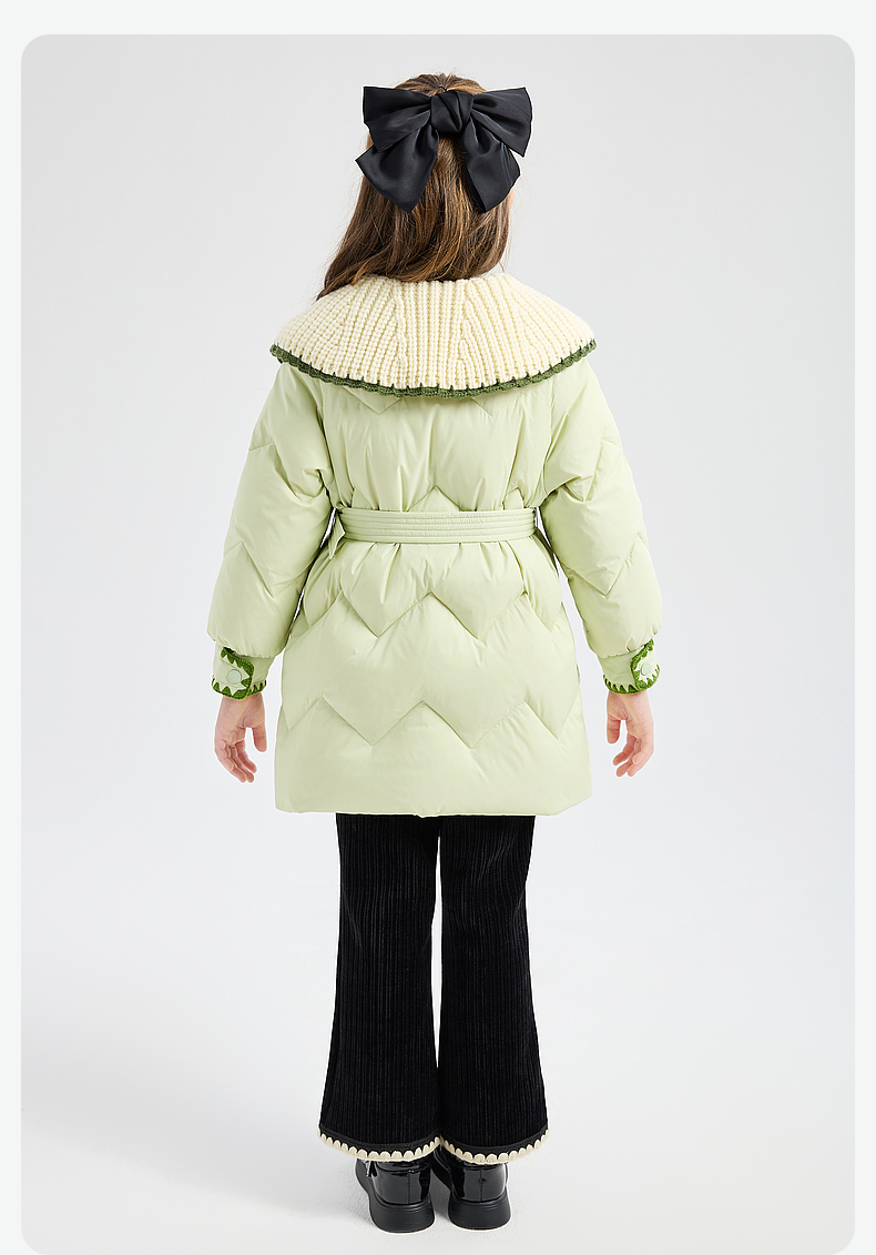 笛莎DESHA童装女童羽绒服2023冬季新款时尚翻领收腰长款羽绒服