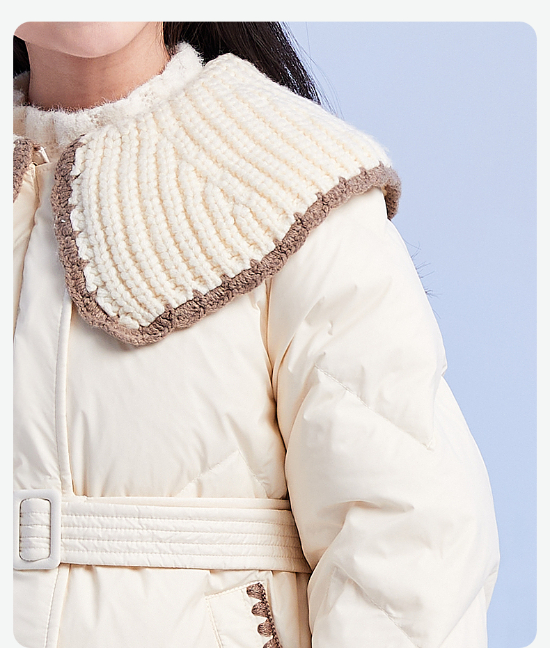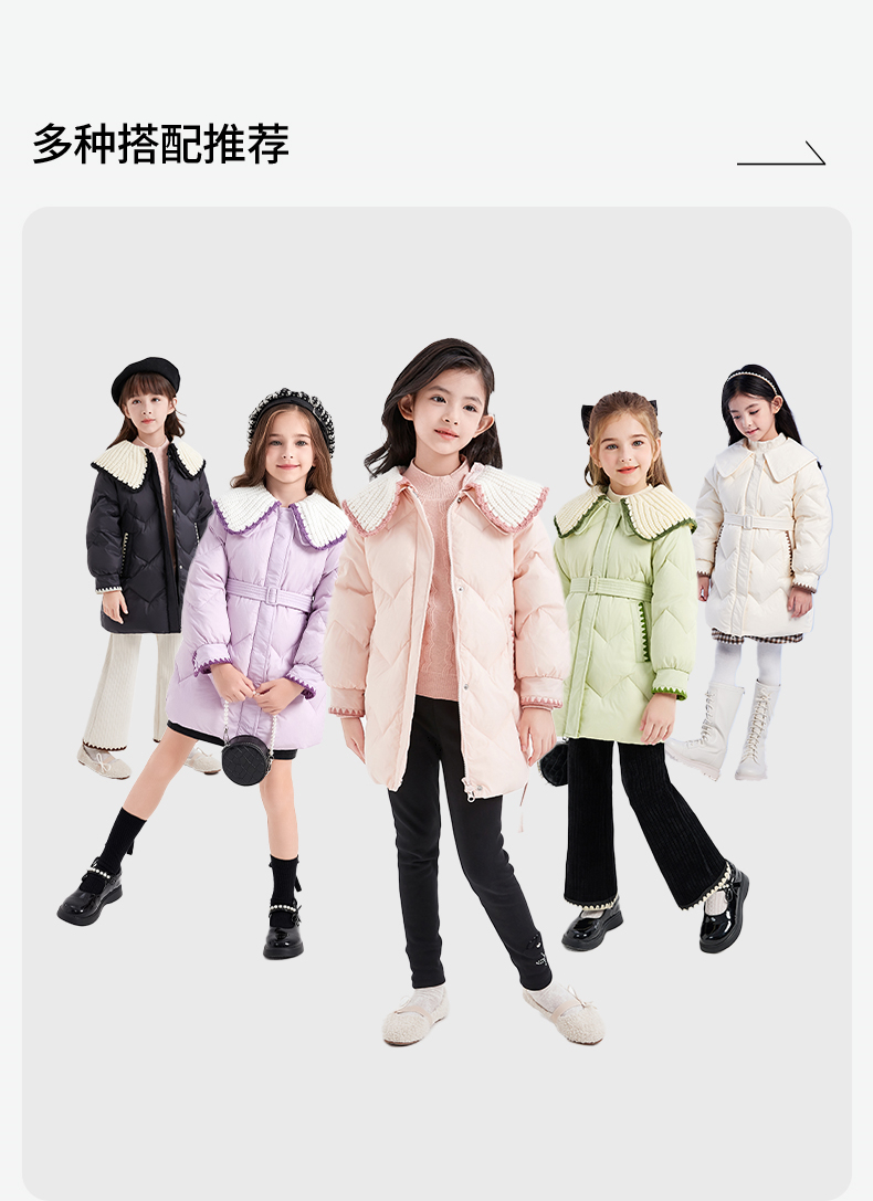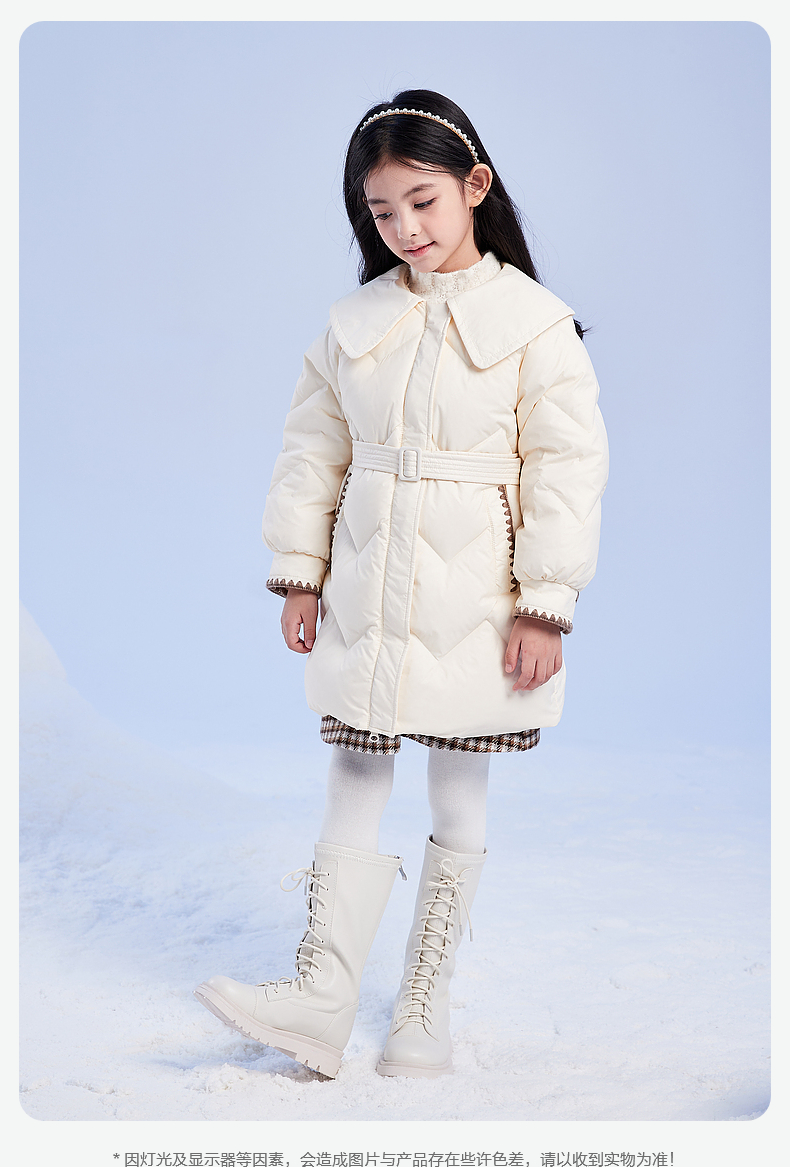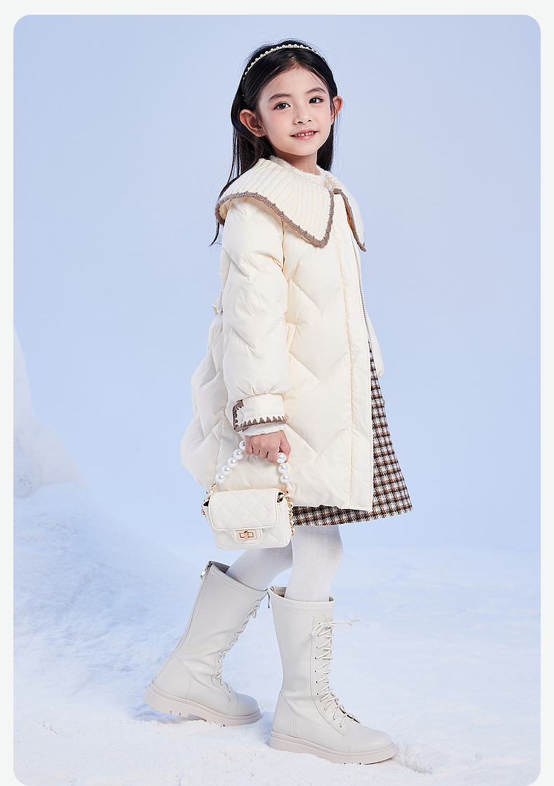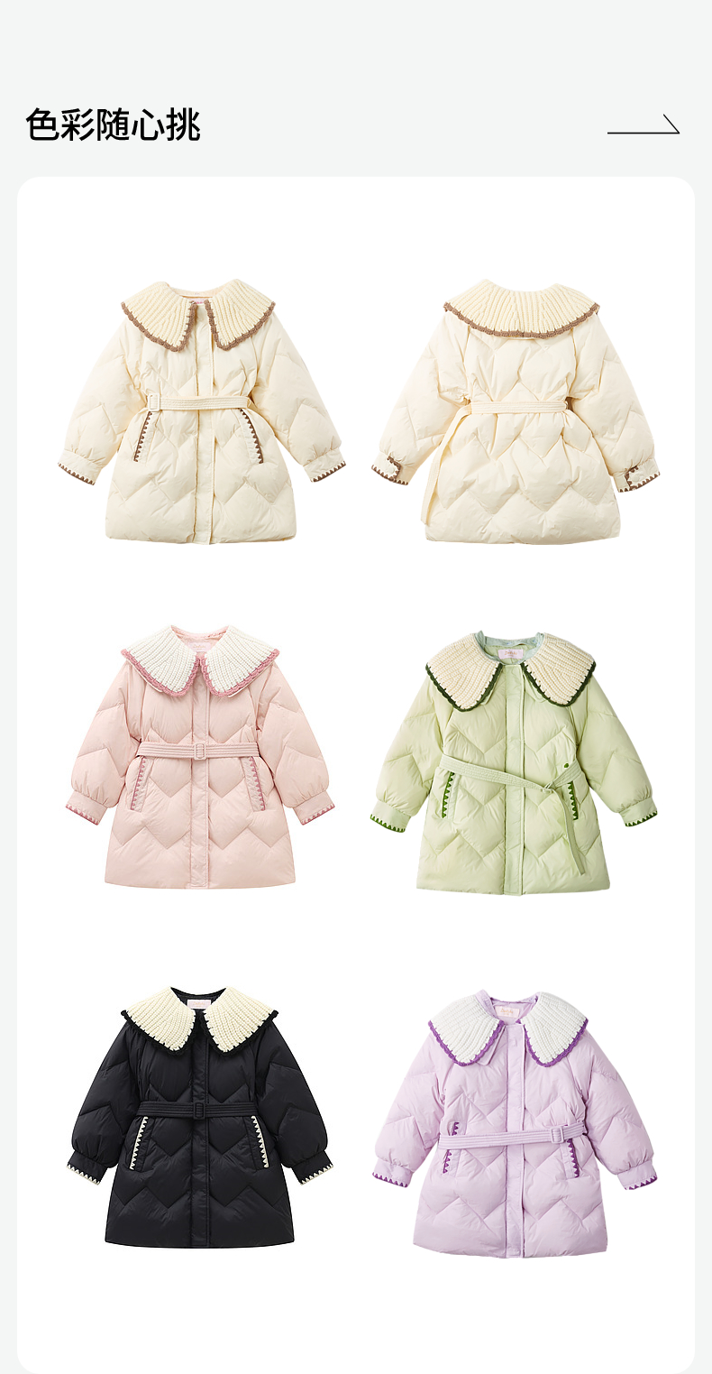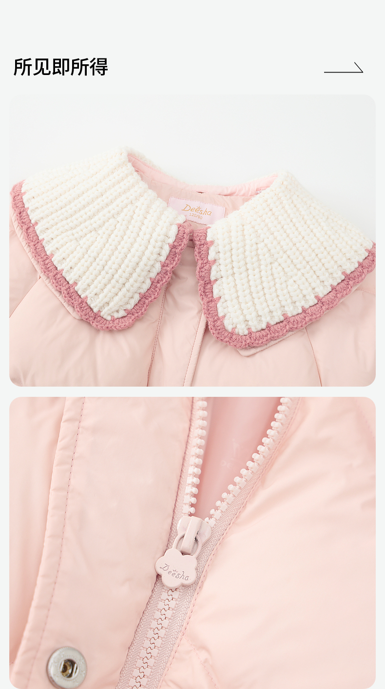 笛莎DESHA童装女童羽绒服2023冬季新款时尚翻领收腰长款羽绒服