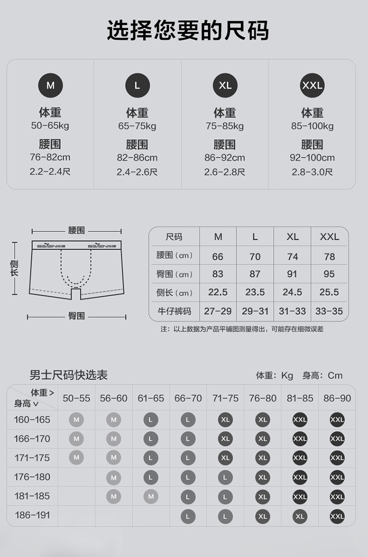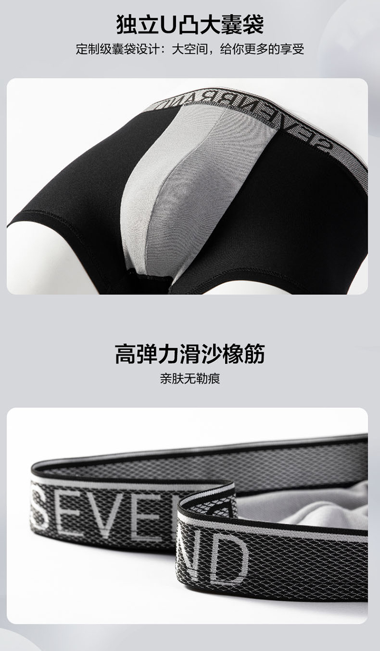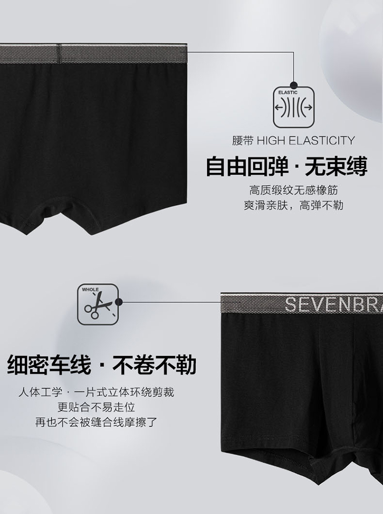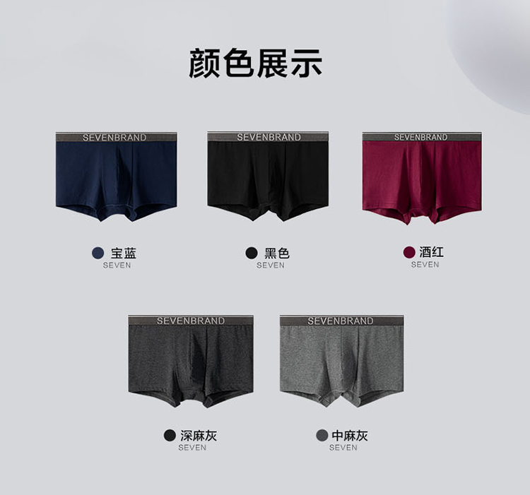 【礼盒3条装】柒牌内裤男新款中青年透气抗菌四角裤运动休闲平角短裤礼盒3条装 122F70250