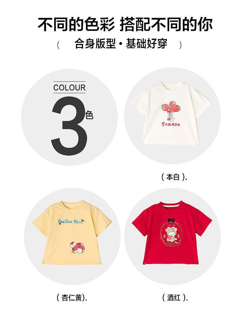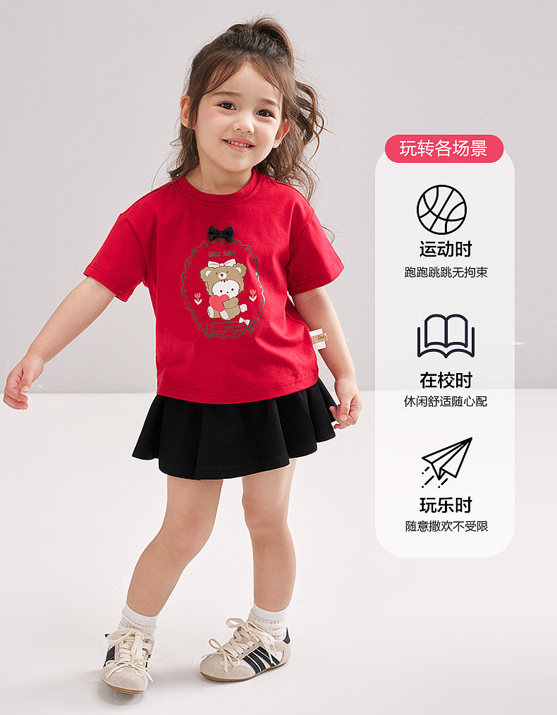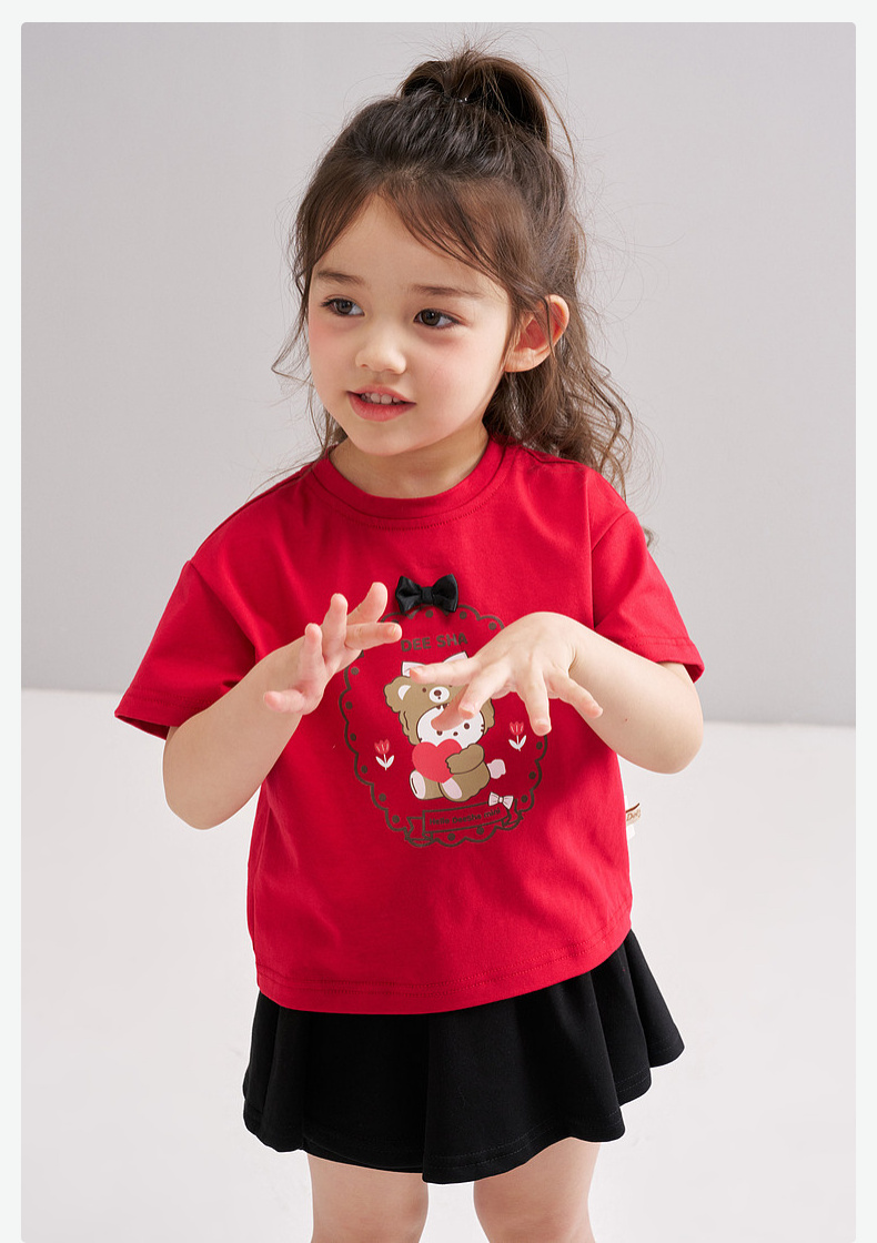 笛莎Deesha 2026年夏季新款松饼熊女童短袖T恤 预售预计4月10日发货