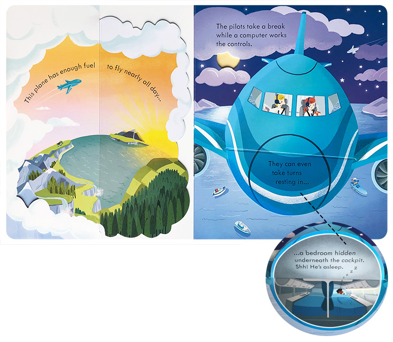 这是由全球知名出版社Usborne出版的科普翻翻书,丰富多彩的折页插图搭配浅显文字,让孩子了解更多有趣的科普知识,在满足孩子的好奇心的同时也能让孩子深入了解飞机。
