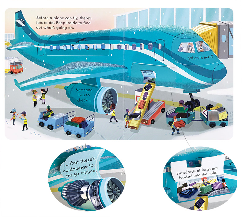 【中商原版】尤斯伯恩偷偷看里面飞机的运作 Peep Inside How a Plane Works 翻翻书 儿童科普绘本 纸板书 英文原版 6-9岁