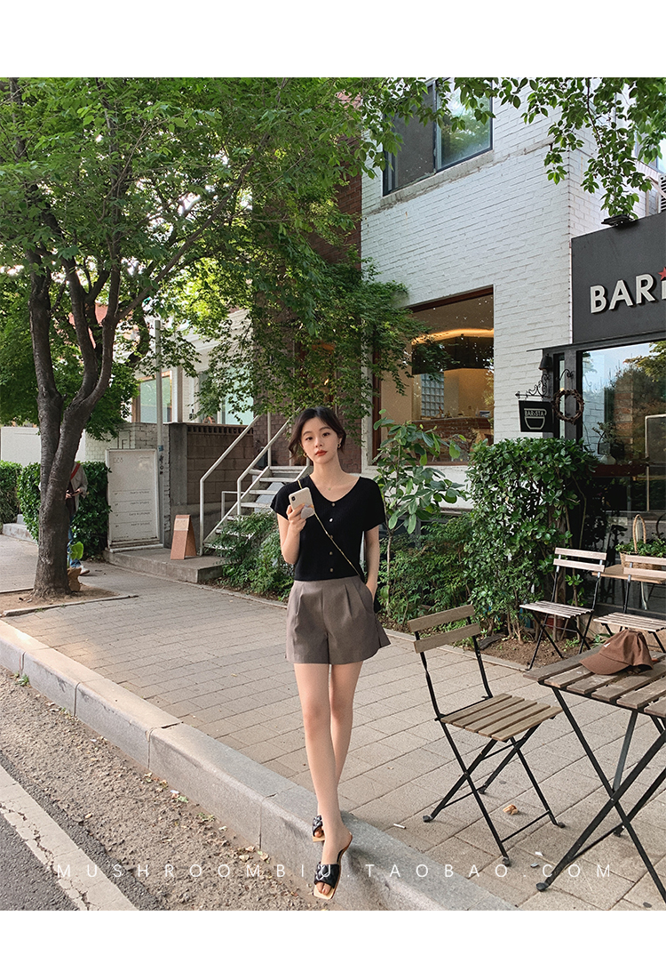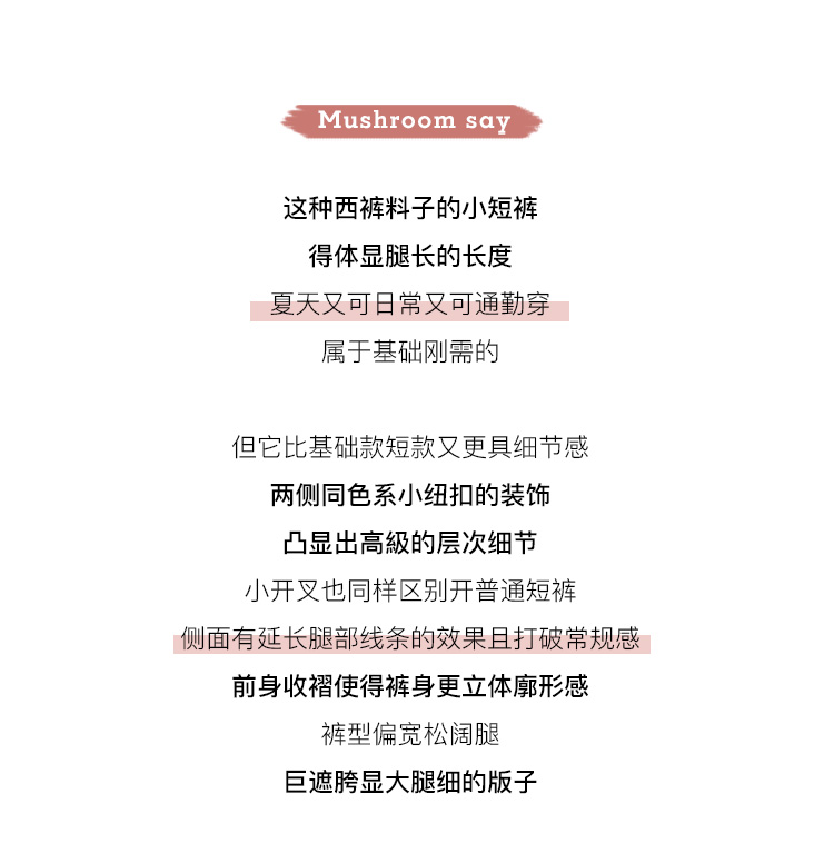 金蘑菇菇【小纽扣短裤】断码特价XS 日常通勤刚需~侧开叉好显瘦哦~