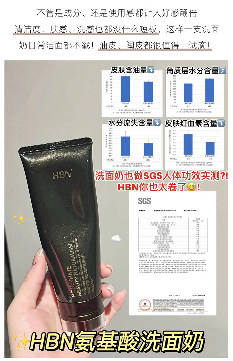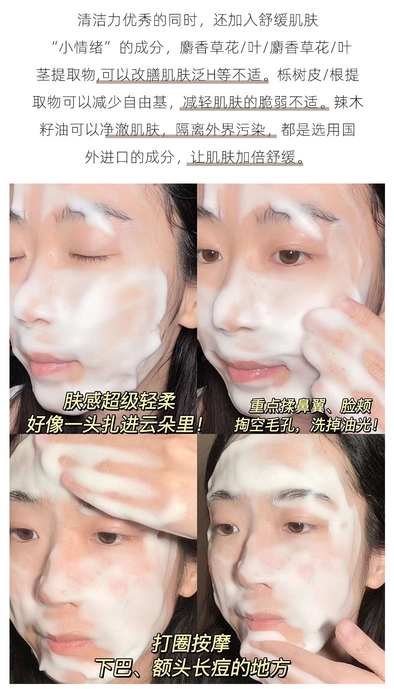 HBN氨基酸臻润安颜云感洗面奶洁面乳温和深层清洁毛孔100g
