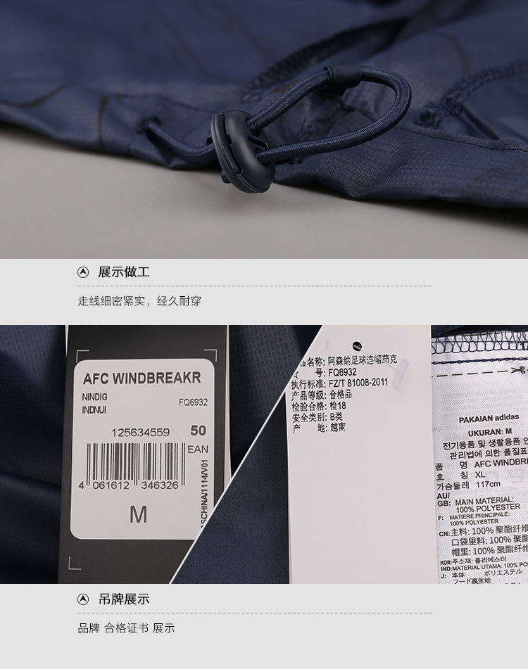 ADIDAS/阿迪达斯 阿森纳男子连帽夹克外套FQ6932