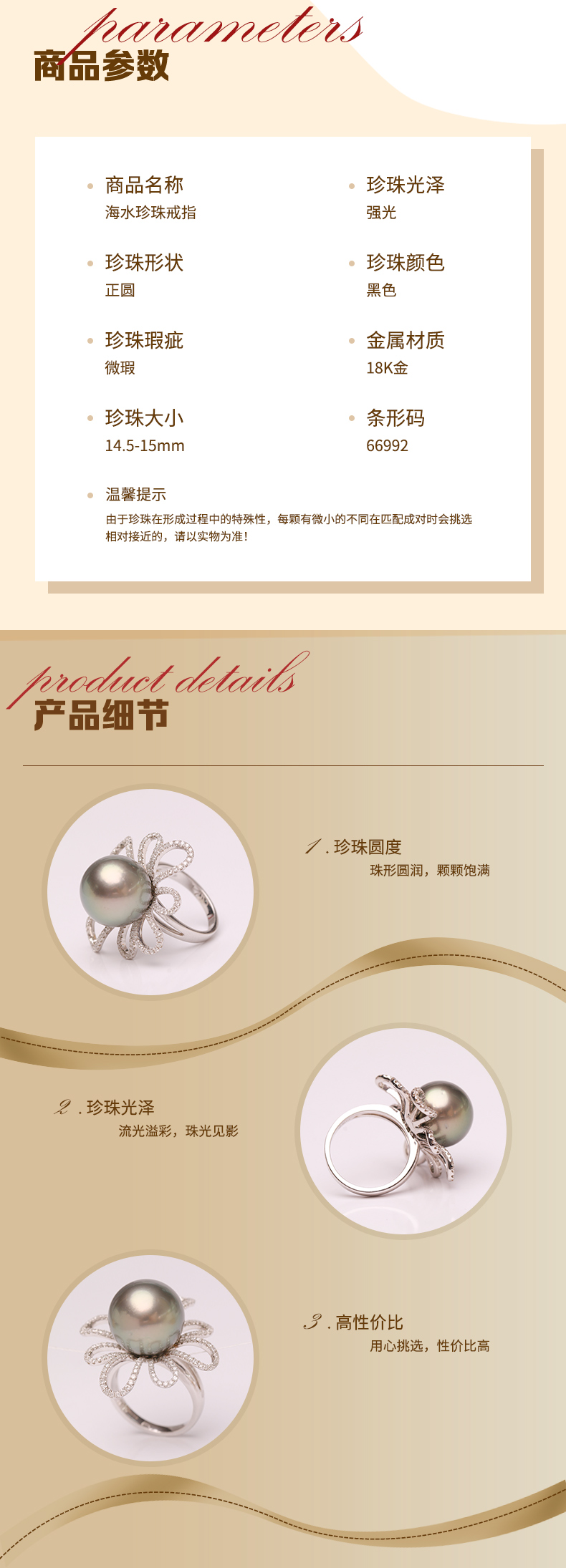 炫彩海南 18K金海水珍珠戒指 14.5-15mm 66992