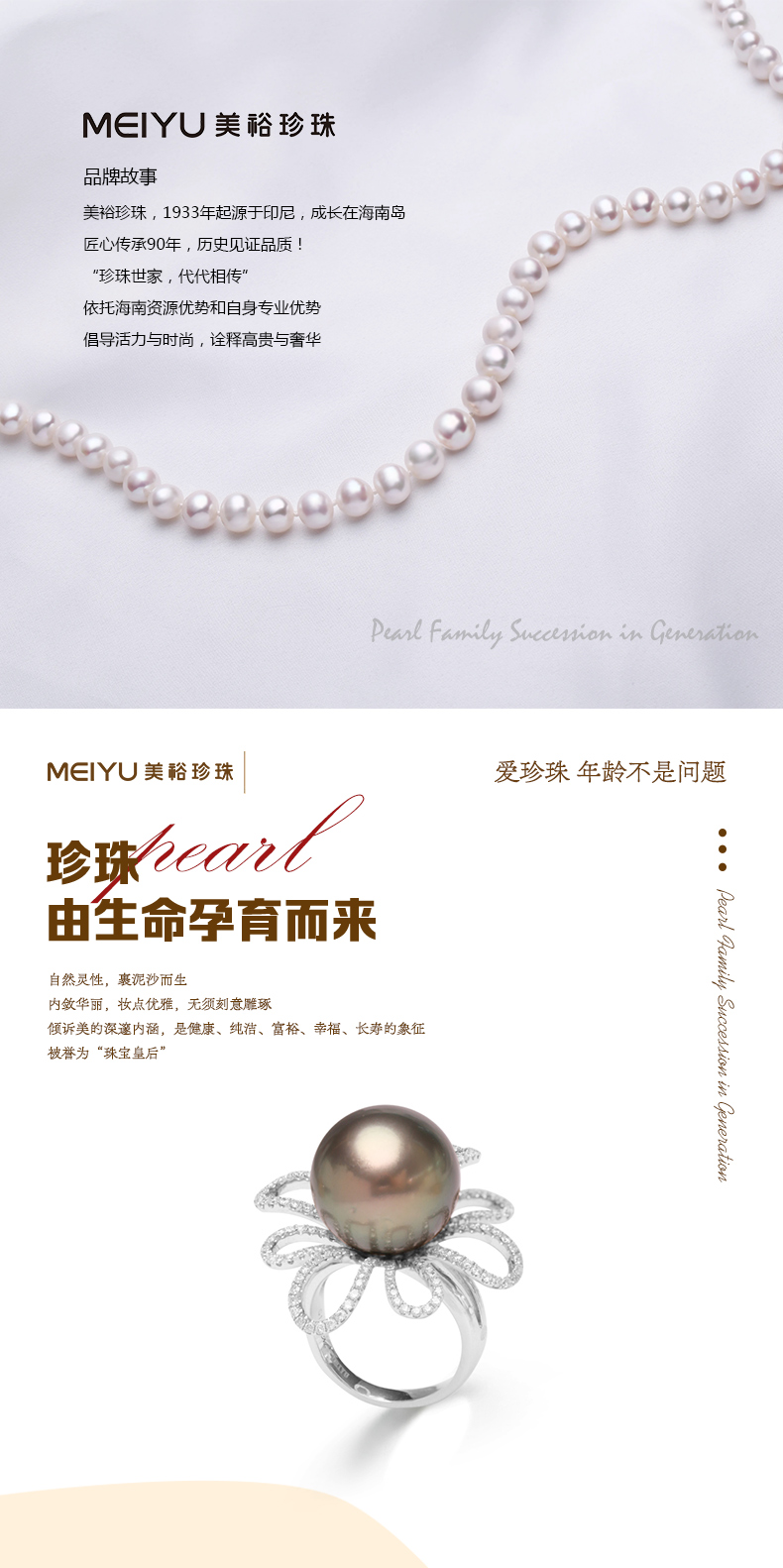 - 珍珠世家,代代相传。美裕珍珠,1933年起源于印尼,成长于海南岛。依托海南资源优势和自身专业优势,以经营南珠、南洋珠为主,专注于珍珠文化的挖掘和传播,把珍珠代表的爱意,永不间断地传承下去。