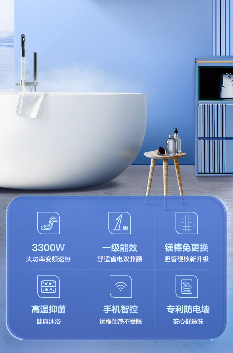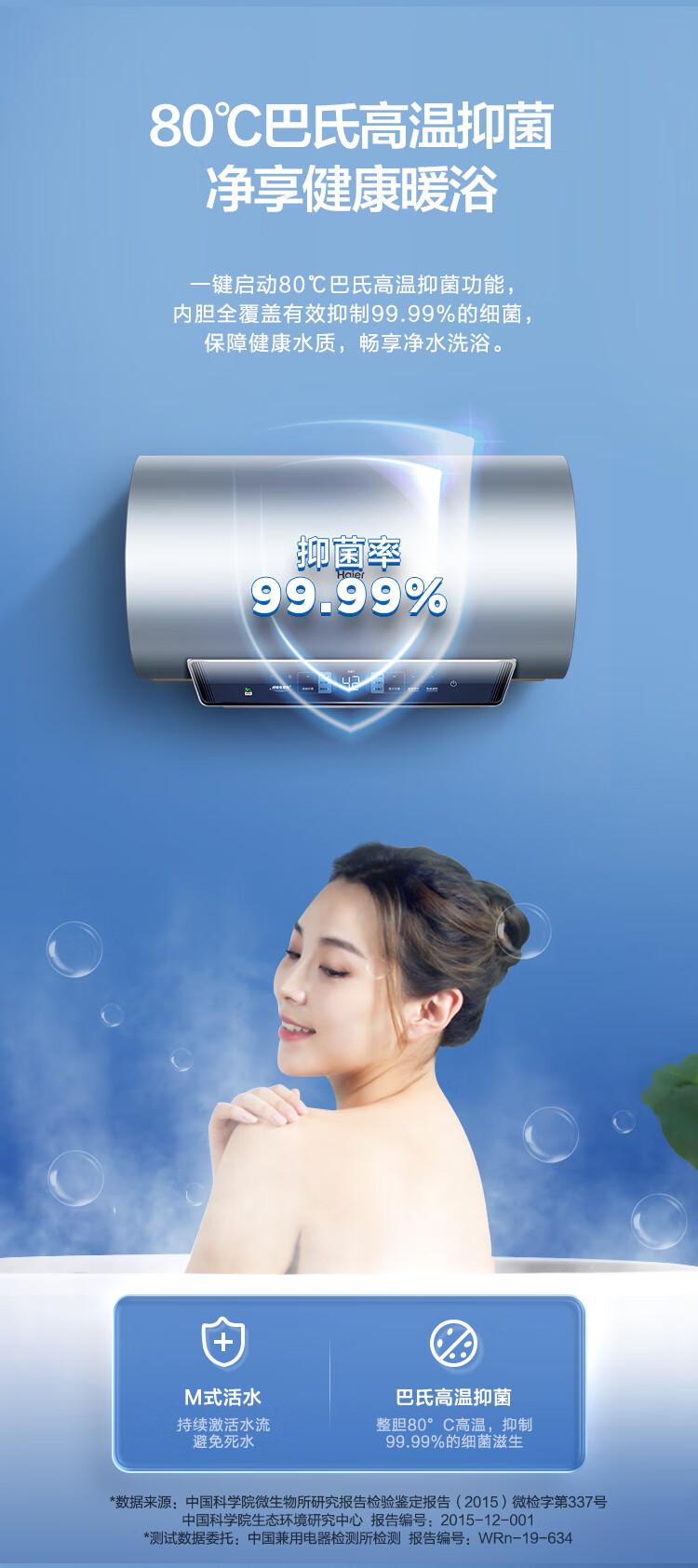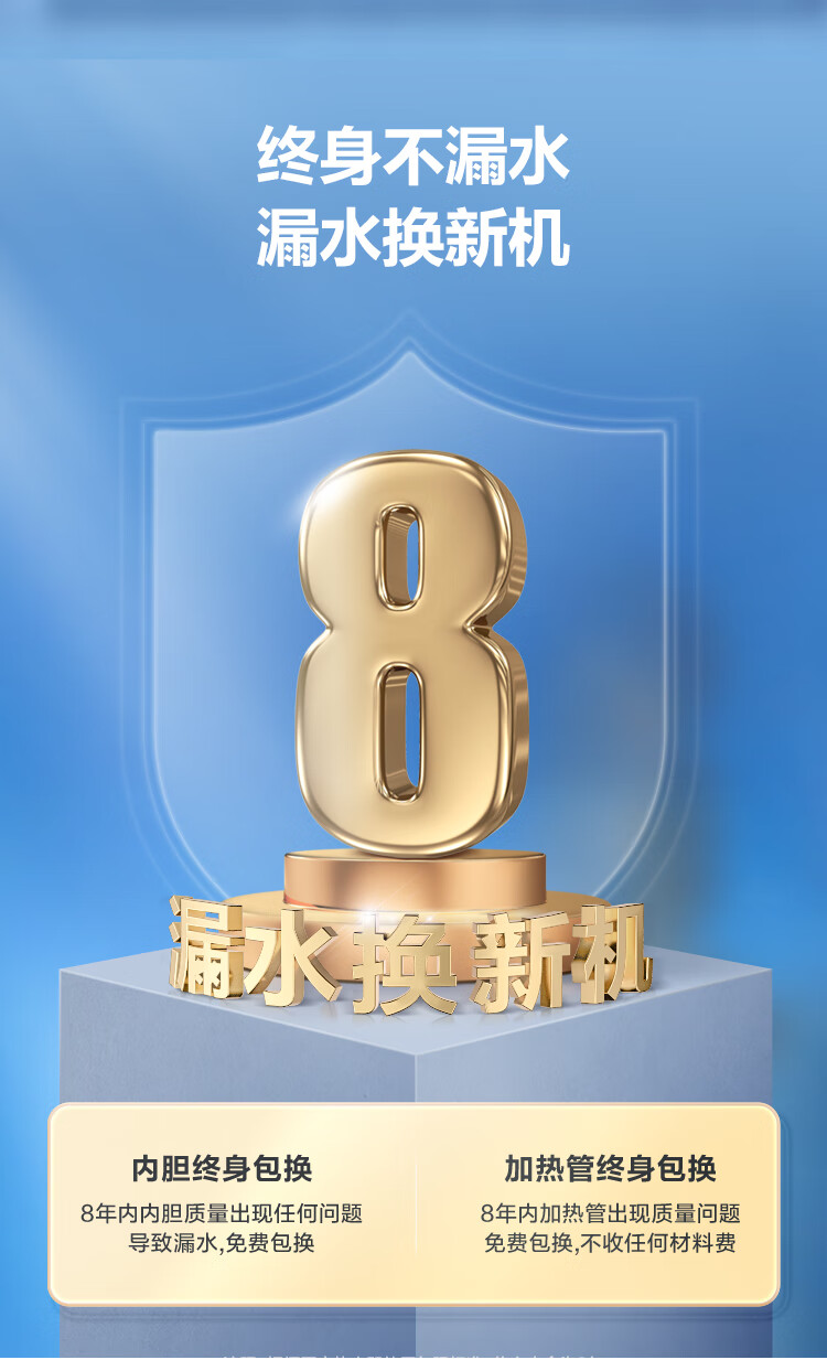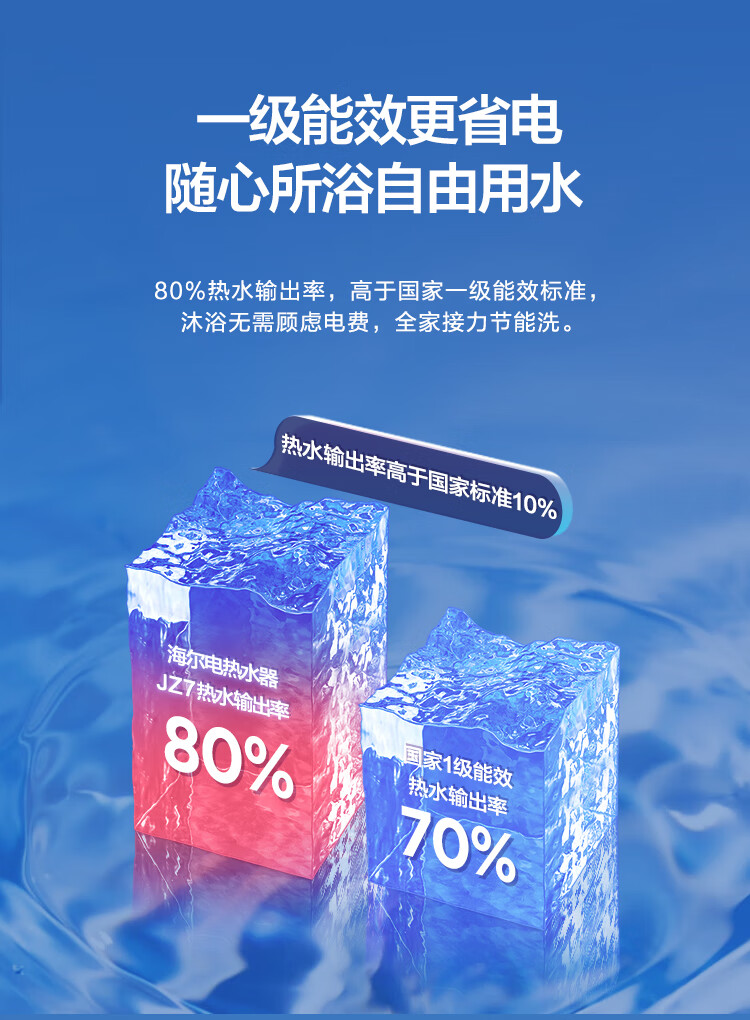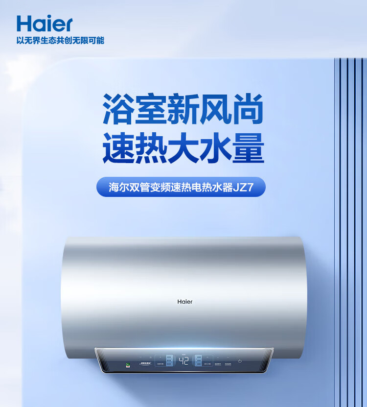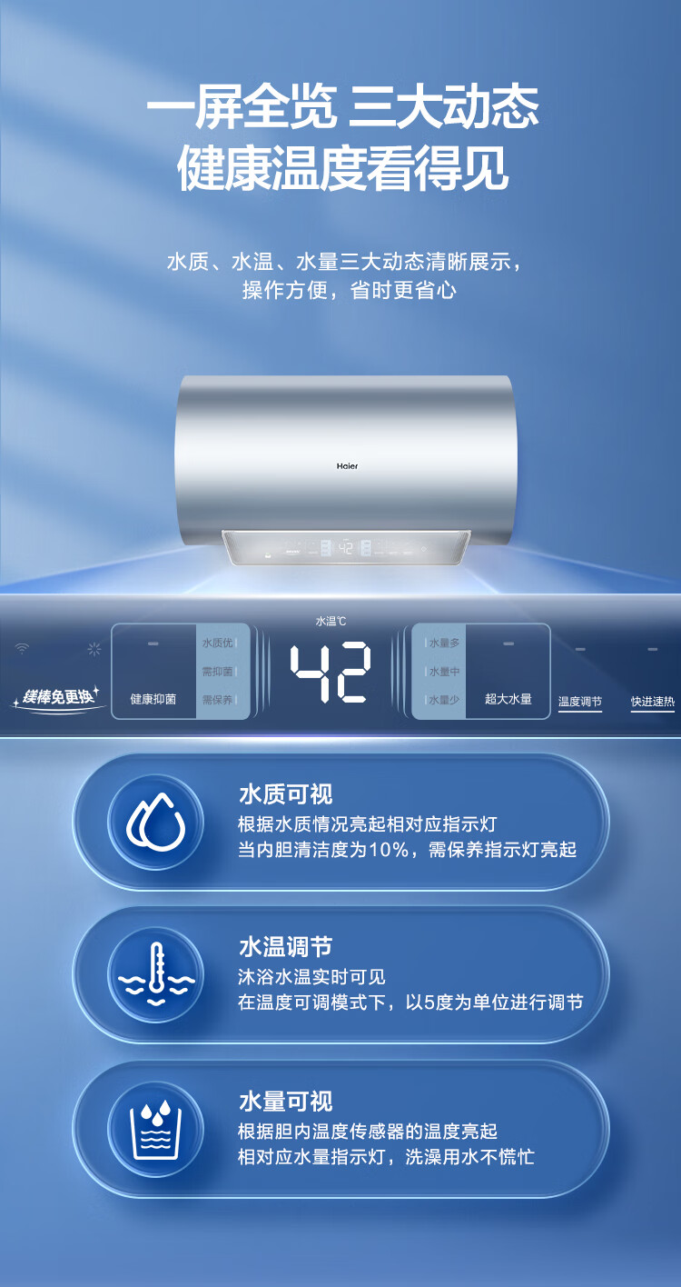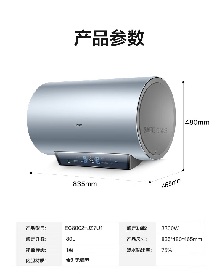 海尔(Haier)80升家用电热水器 3300W变频速热增容大水量 一级能效 水质可视 EC8002-JZ7U1 *