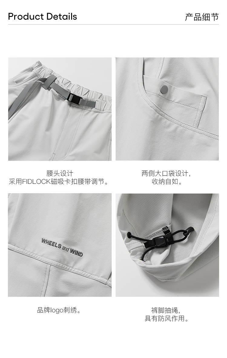 WHEELS and WIND 男女中性款机能性透气防泼水立体弧度弯刀裤