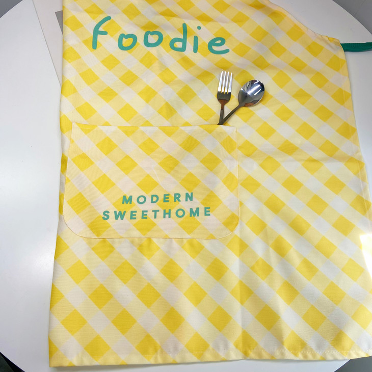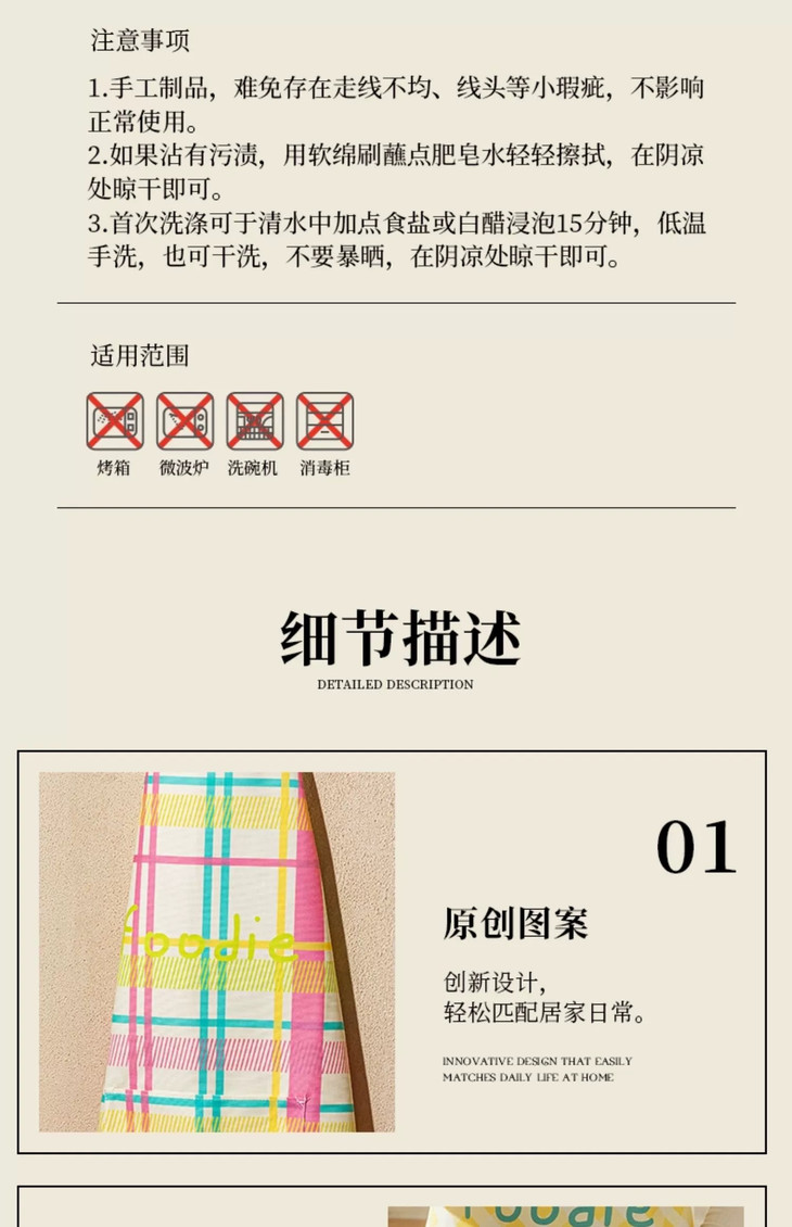 🔺走线规整笔直,光滑紧致,面料很有质感 让你下厨时能放心大显身手 挂在厨房也是一个装饰可可爱爱~~