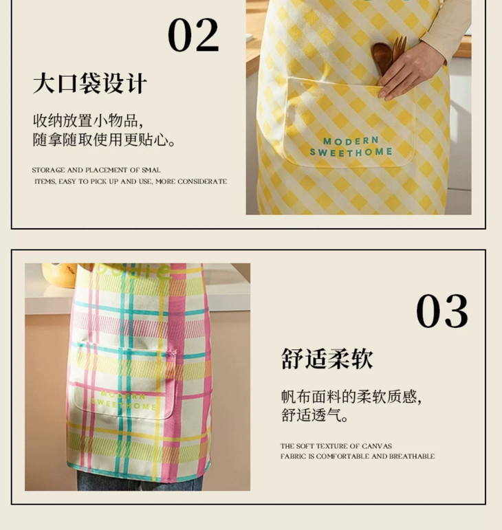 🔺大容量双口袋设计,方便利落,提高工作效率 围裙前面有一个超级大的兜, 方便我们放置手机等物品,随取随用