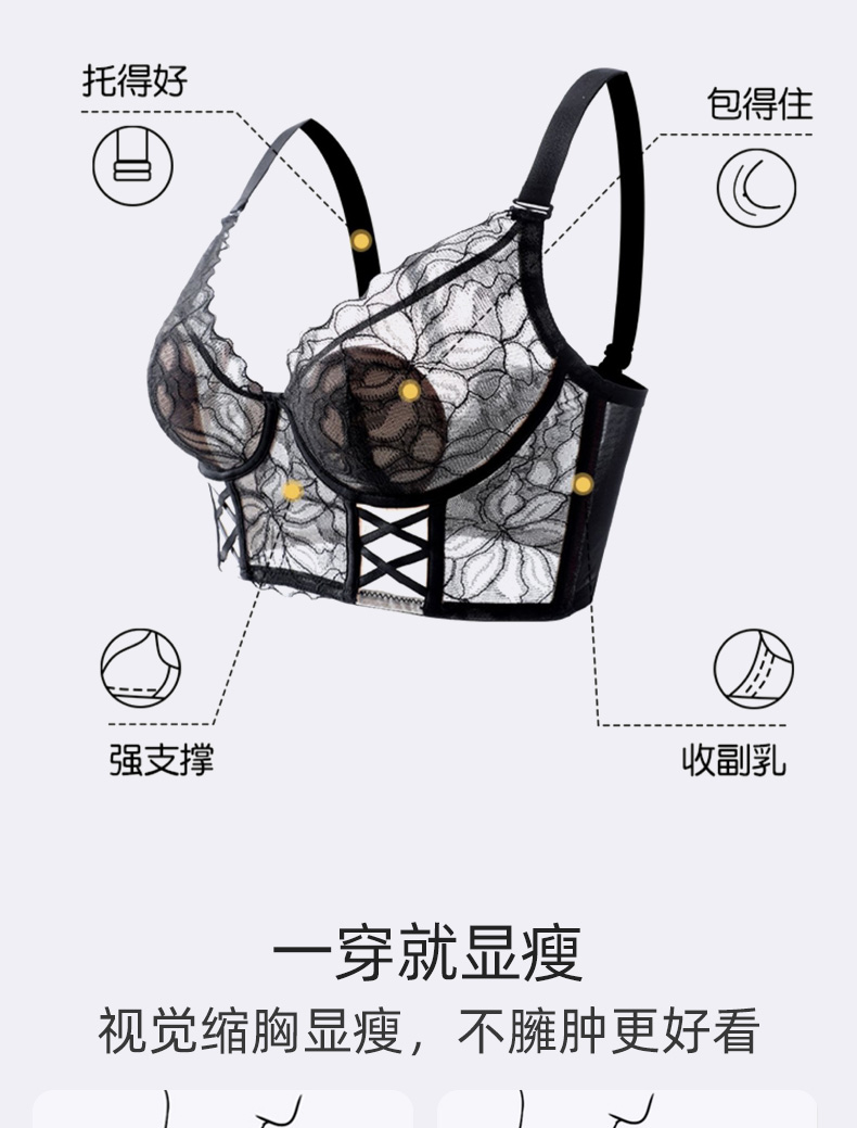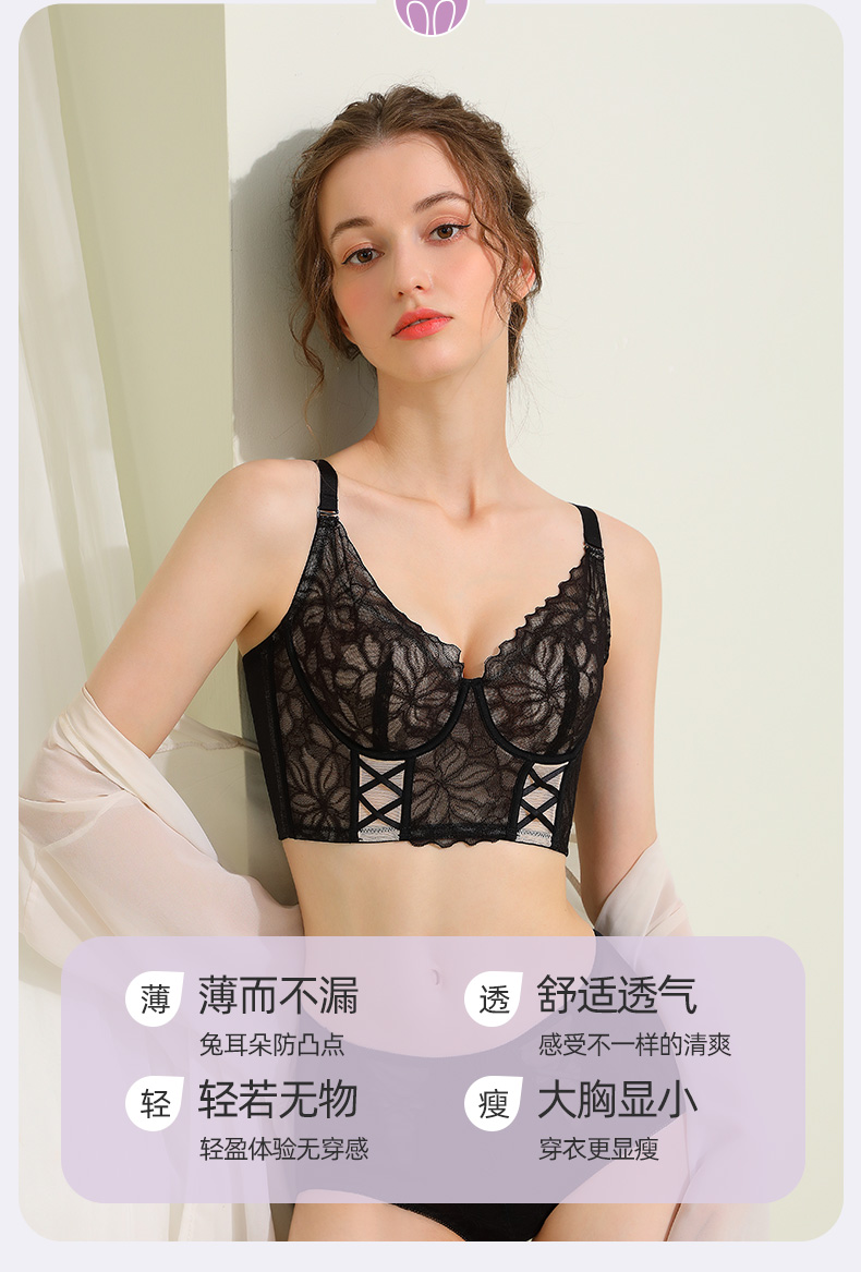 茜茜公主侧收副乳聚拢文胸罩轻薄透气矫正外扩下垂法式性感水晶杯内衣