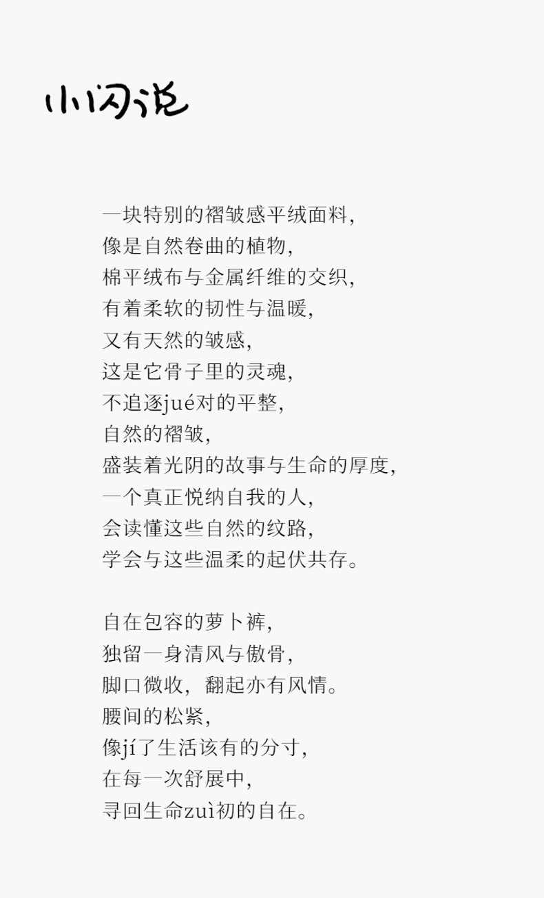 Petit Schan小闪 CLO#1027 Feel an instant connection 一见如故 棉混纺平绒皱感抽绳松紧腰萝卜裤