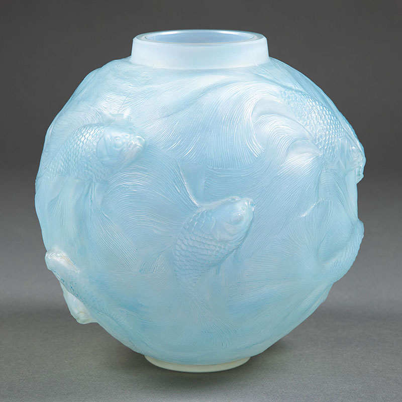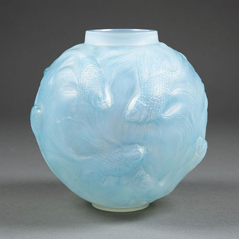 1924年法国出品FORMOSE锦鲤款蓝色欧泊水晶花瓶