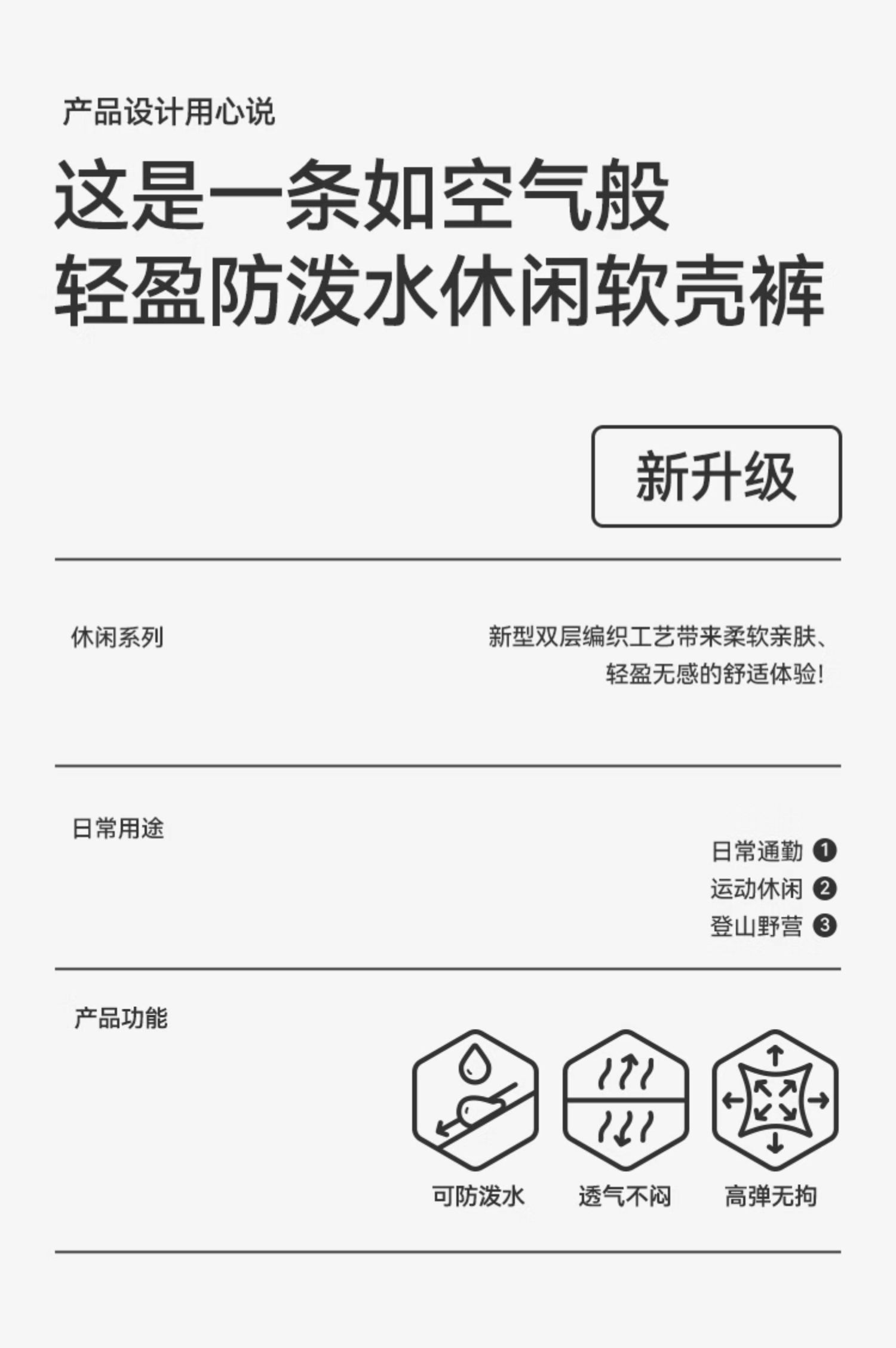 伯希和户外休闲裤男款透气防泼软壳裤弹力耐磨运动裤宽松百搭长裤