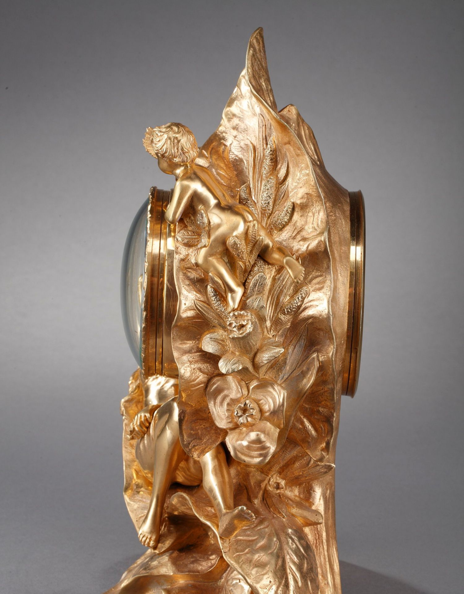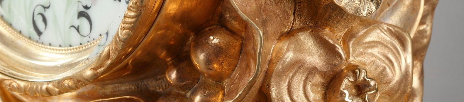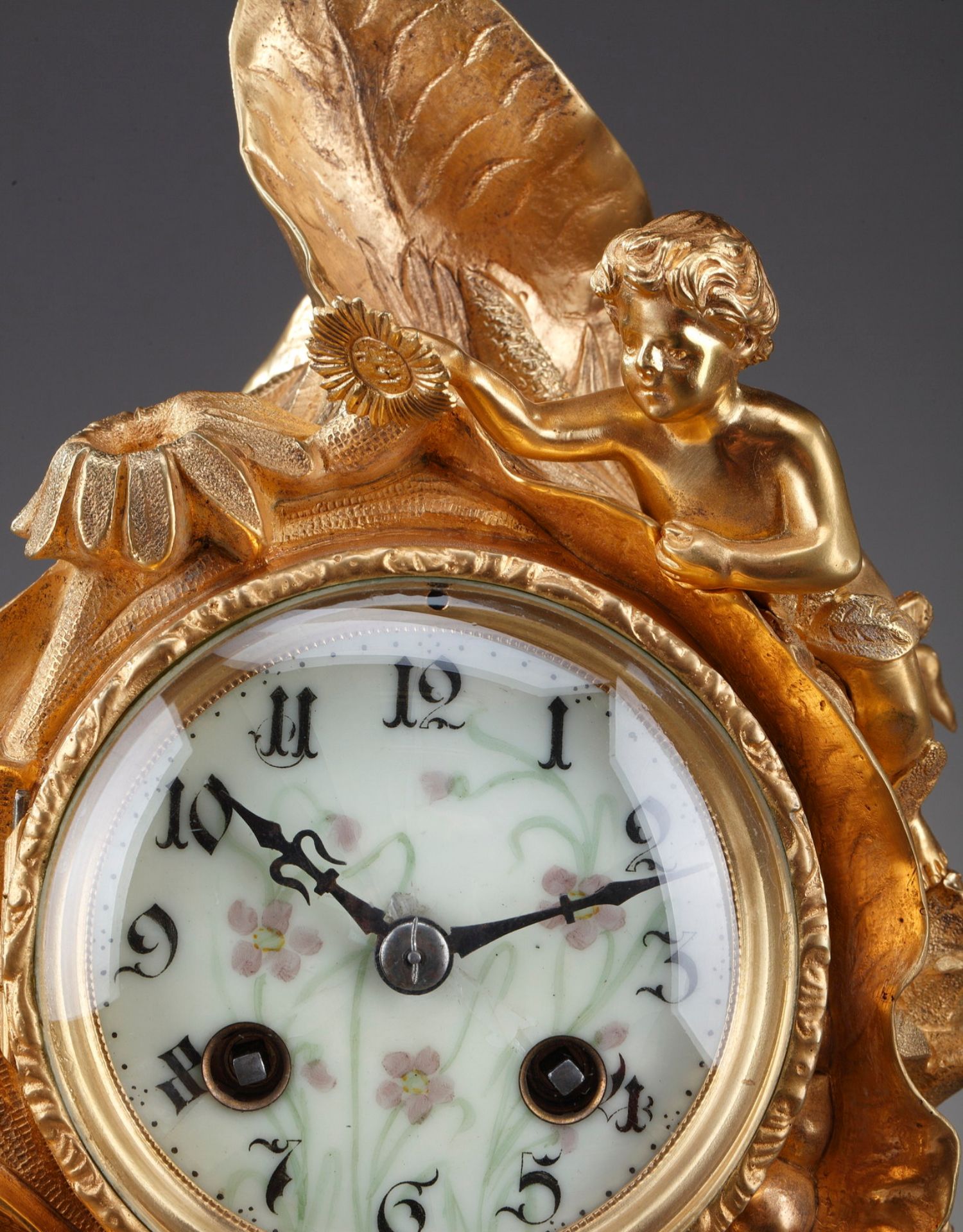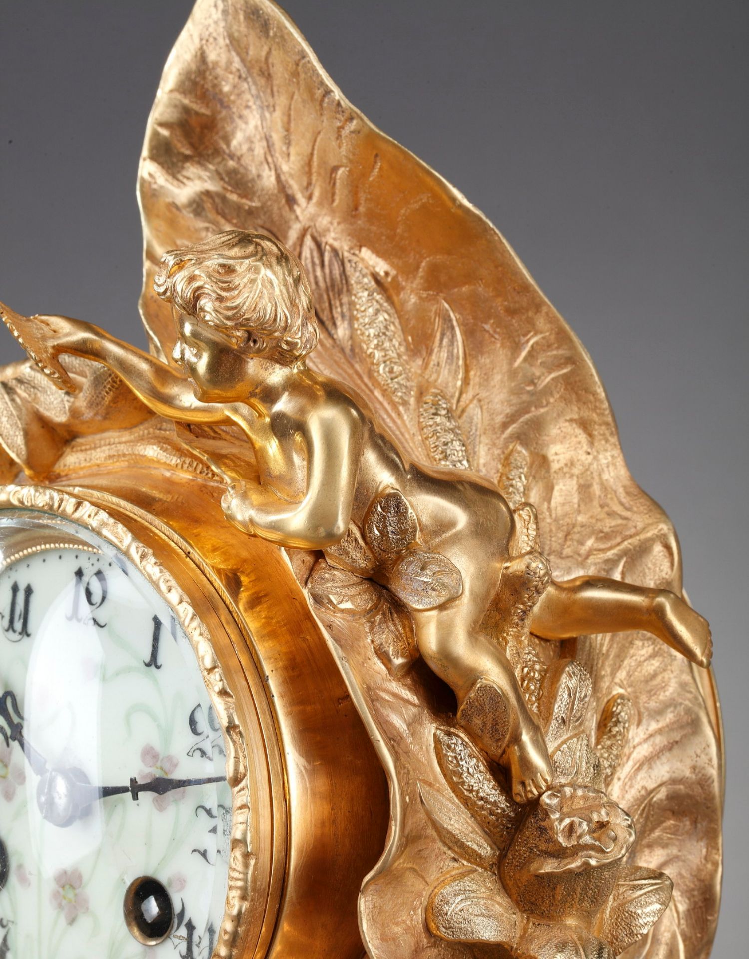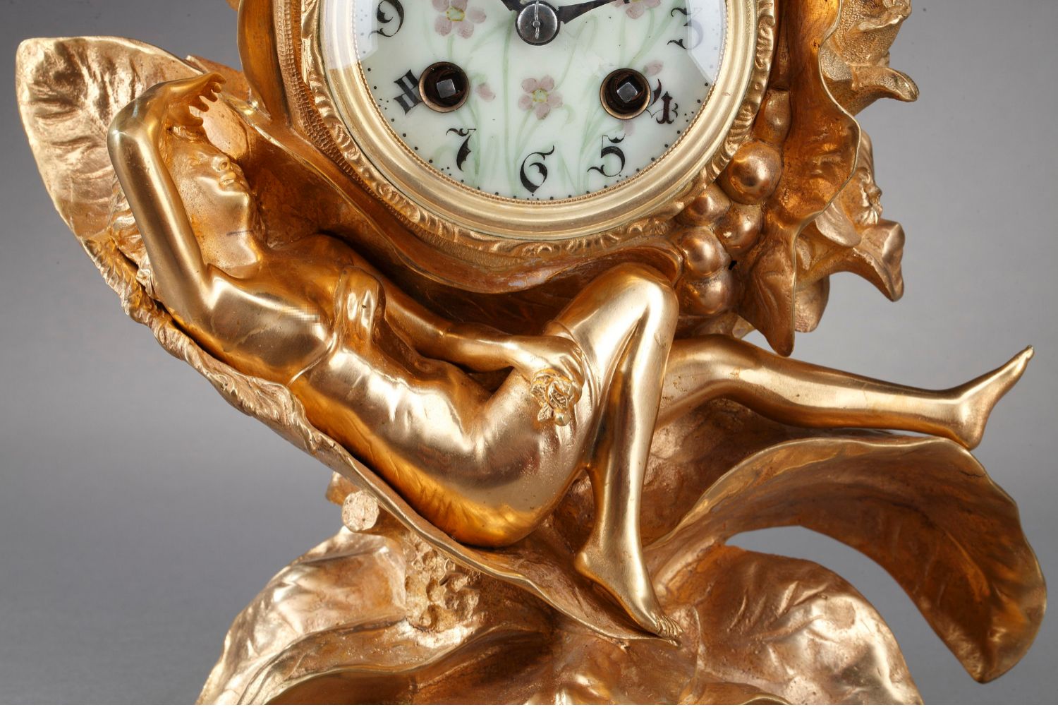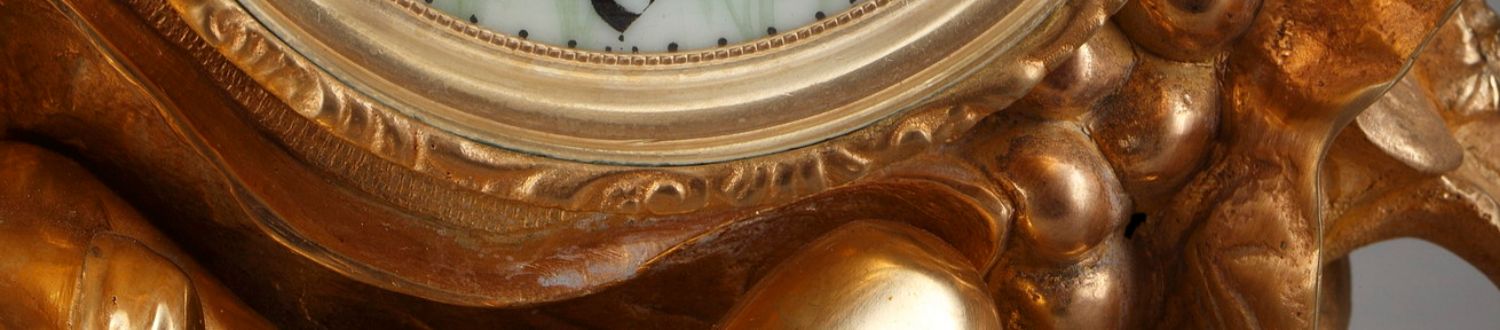 独角鹿西洋古董A.D. Mougin新艺术风铜鎏金底座圆形珐琅表盘座钟