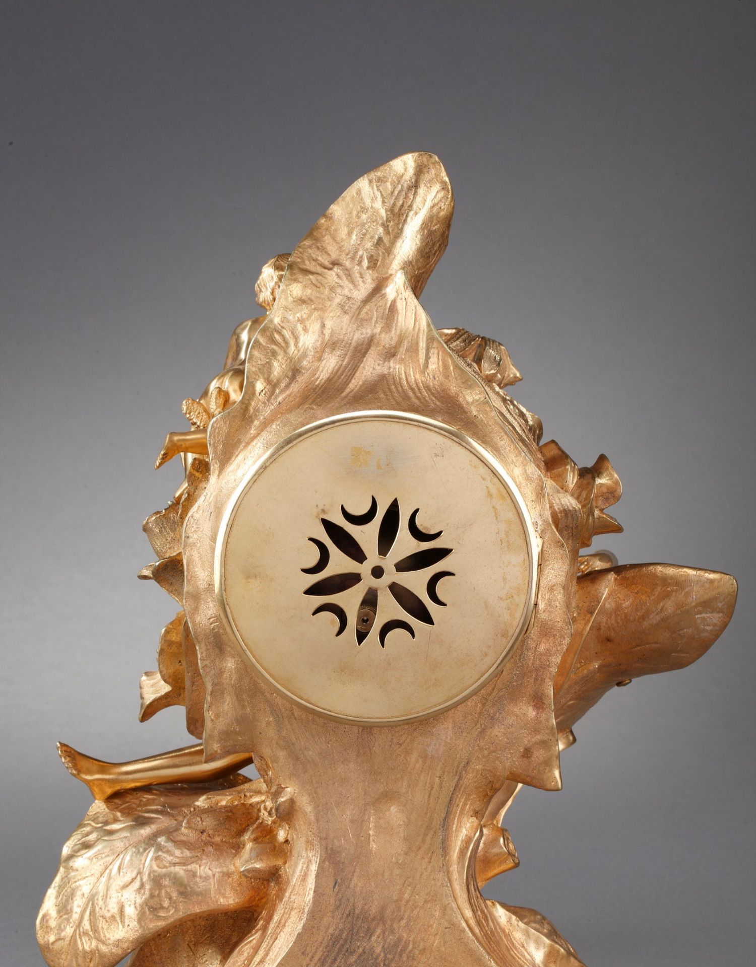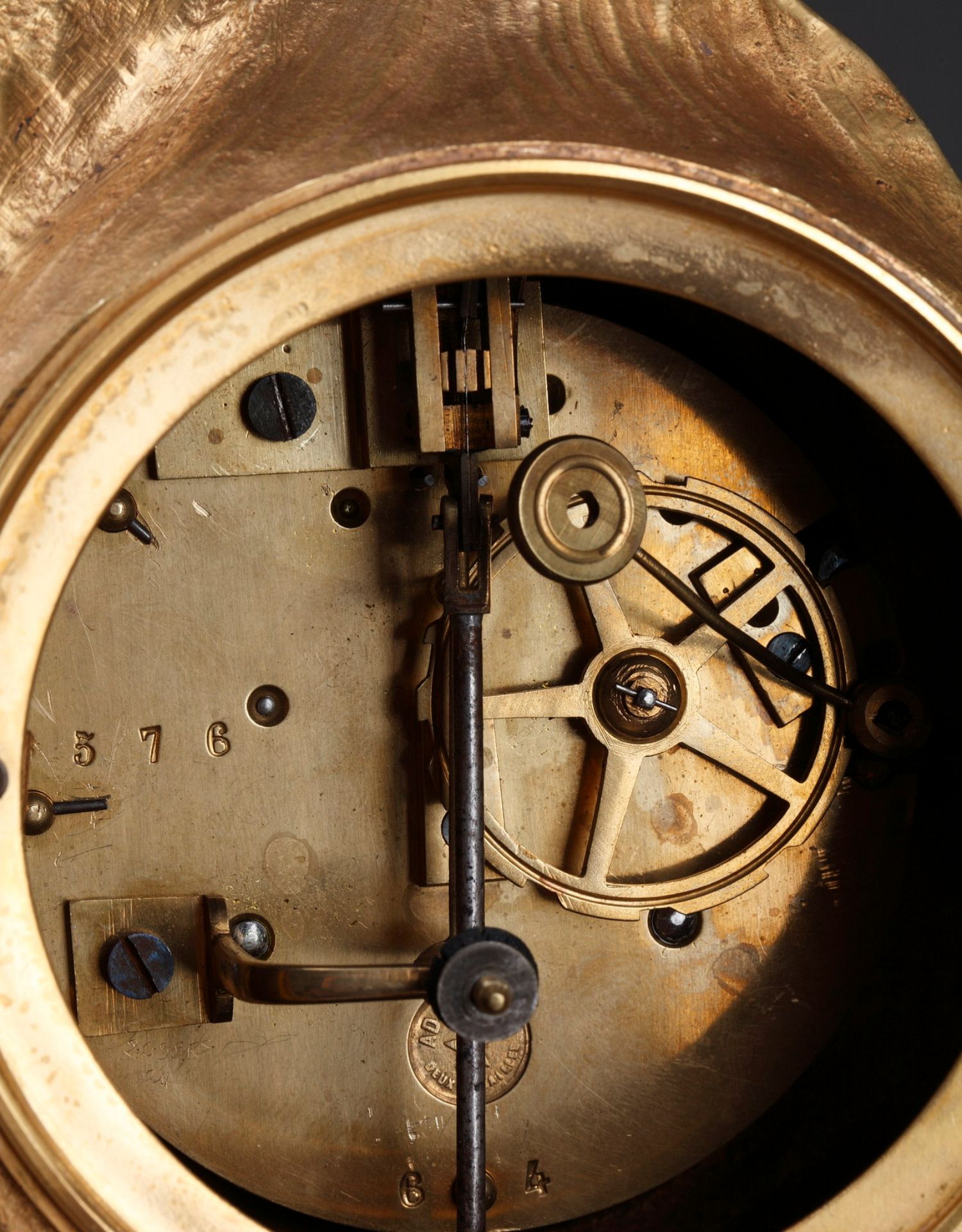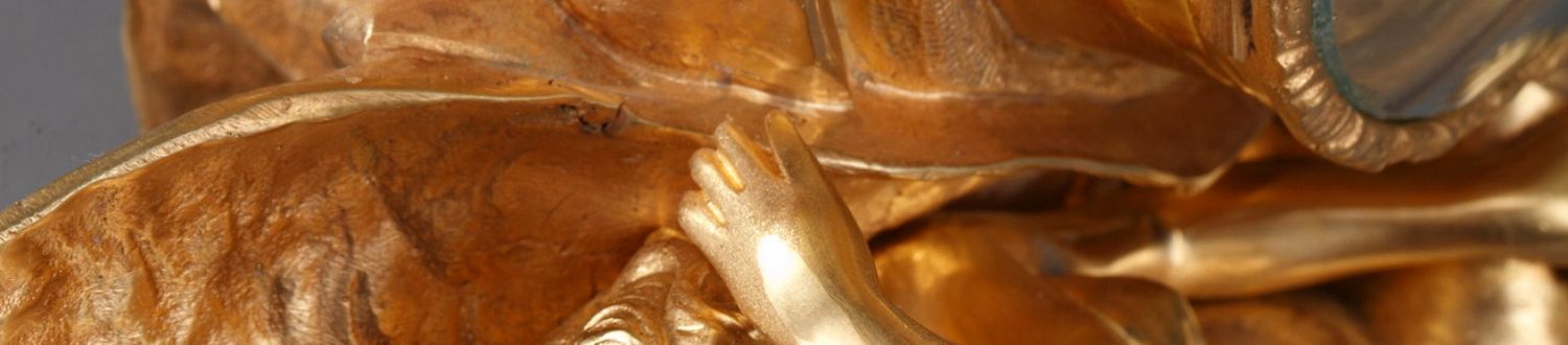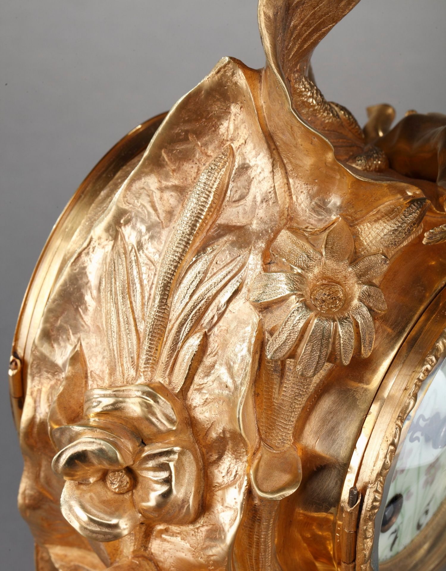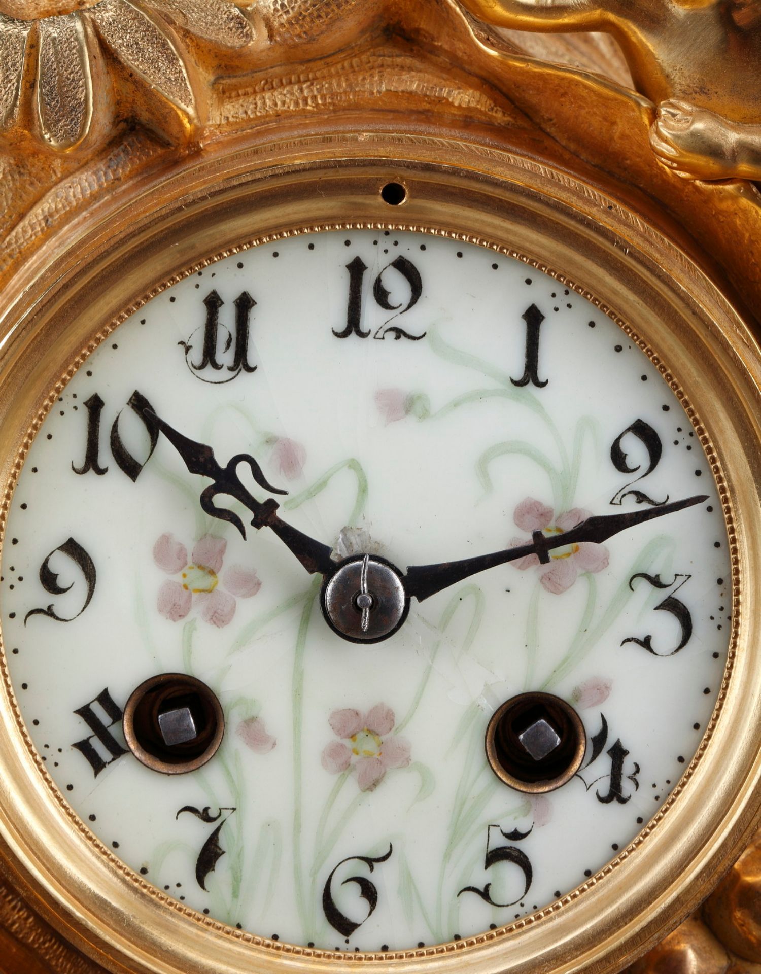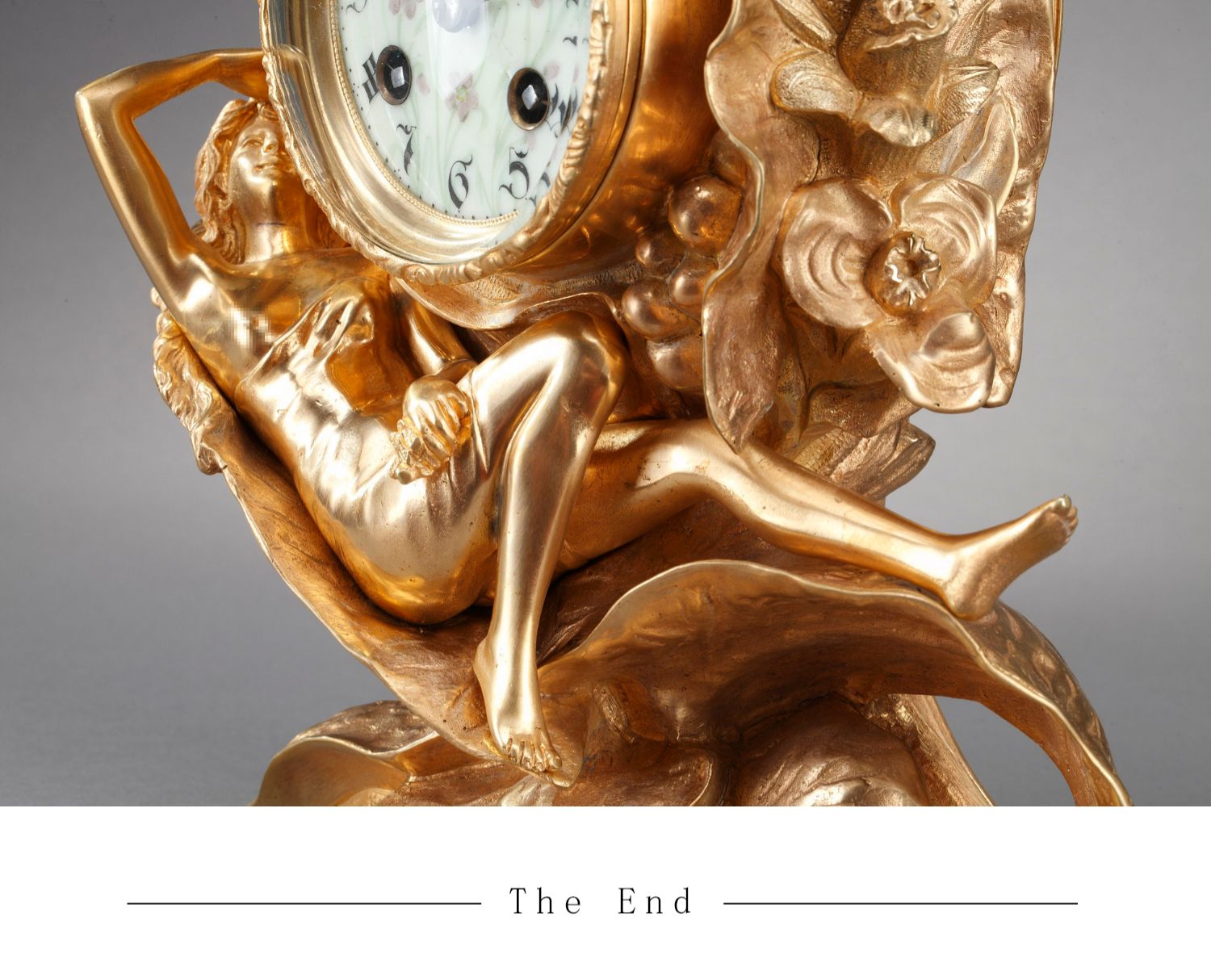 独角鹿西洋古董A.D. Mougin新艺术风铜鎏金底座圆形珐琅表盘座钟