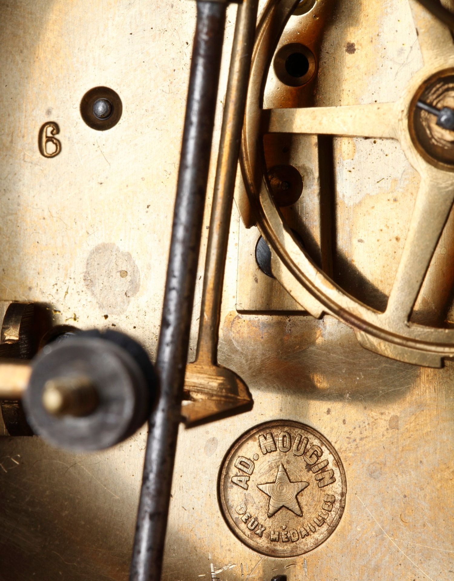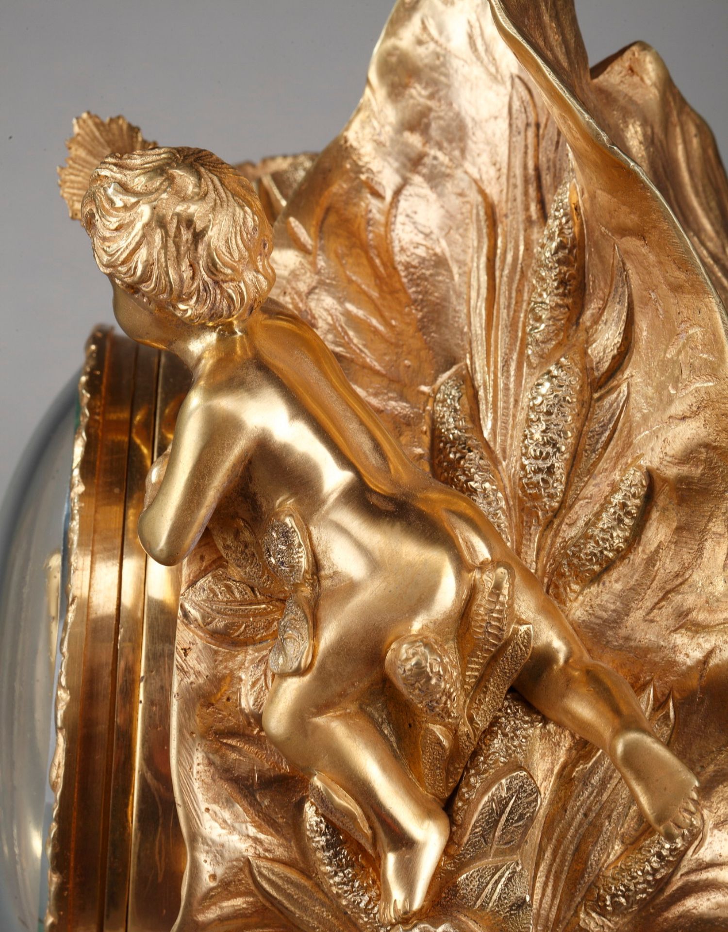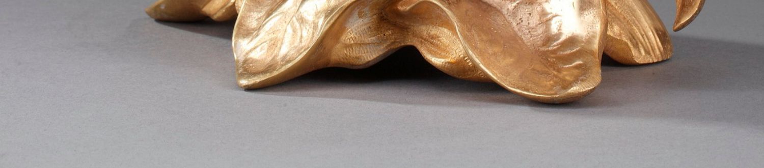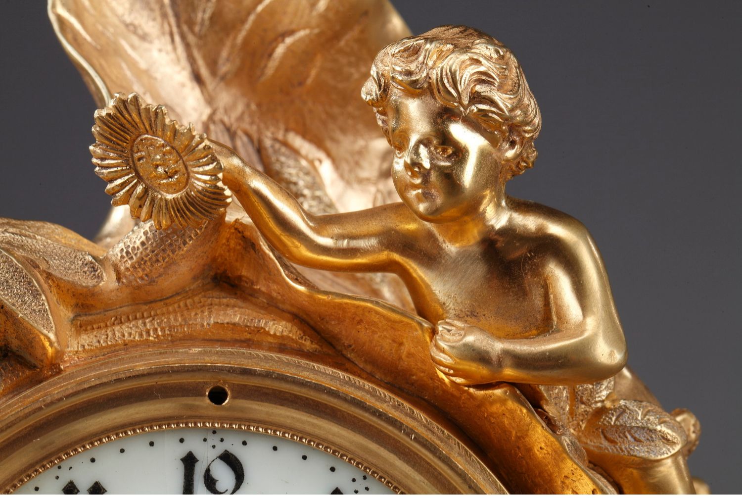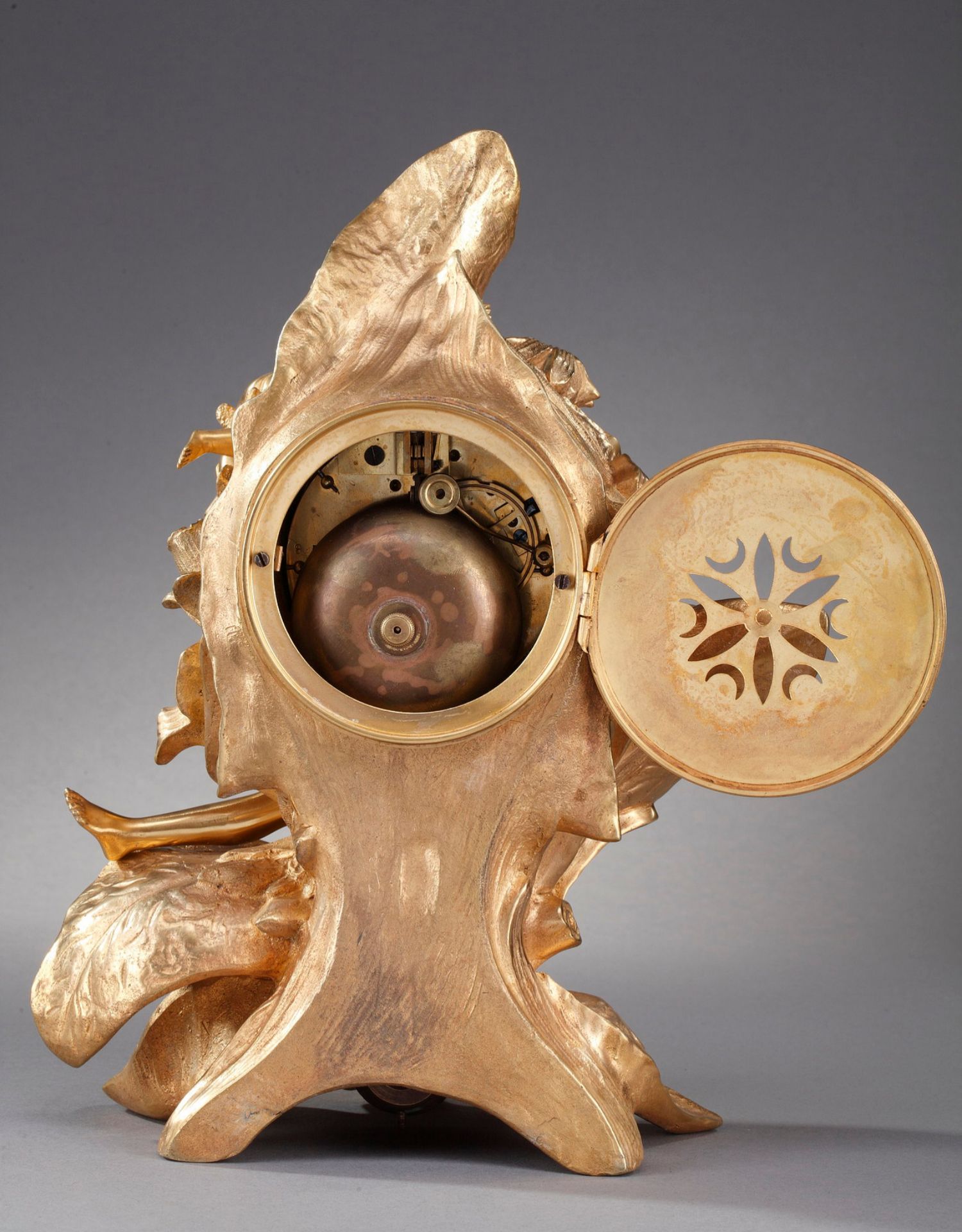 独角鹿西洋古董A.D. Mougin新艺术风铜鎏金底座圆形珐琅表盘座钟