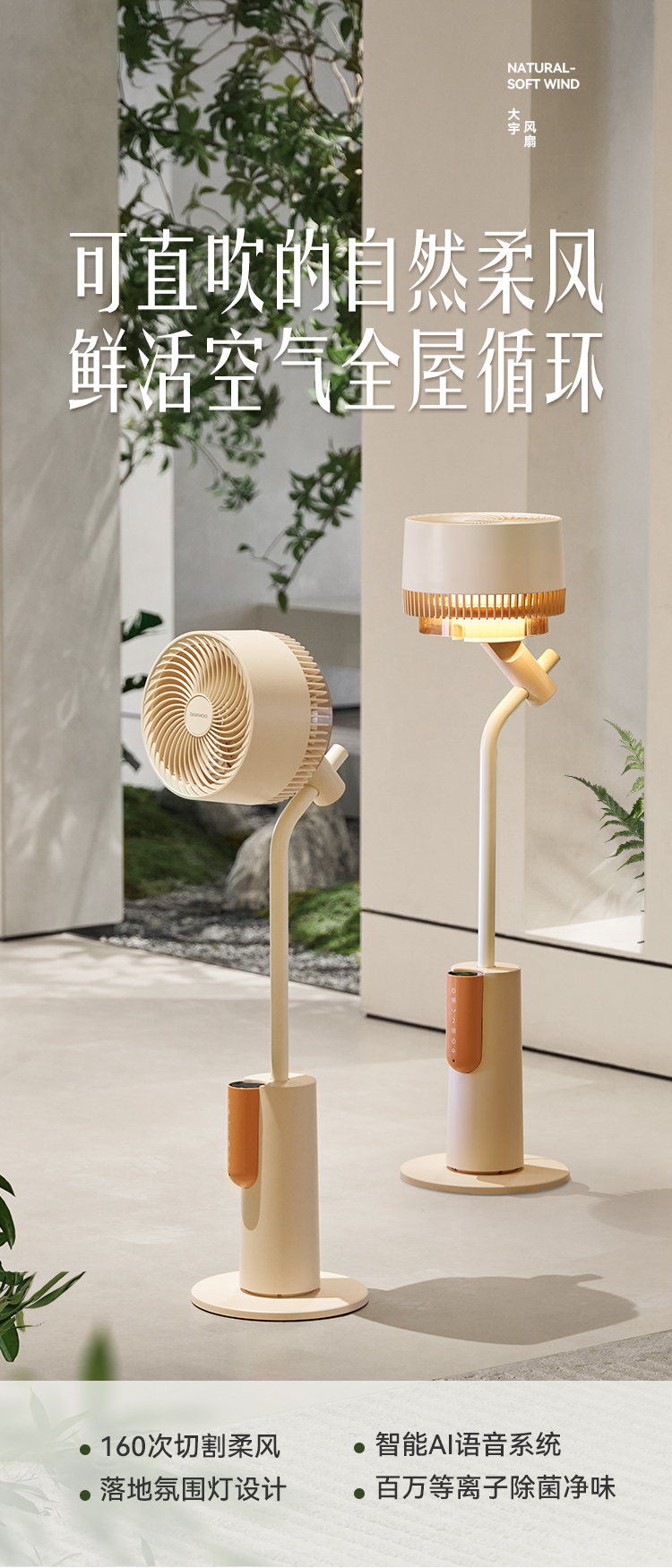 大宇等离子空气循环扇语音净化落地扇氛围灯电风扇F47
