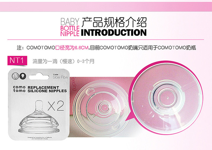 【一般贸易中文标】美国可么多么Comotomo奶嘴2滴(两个装)