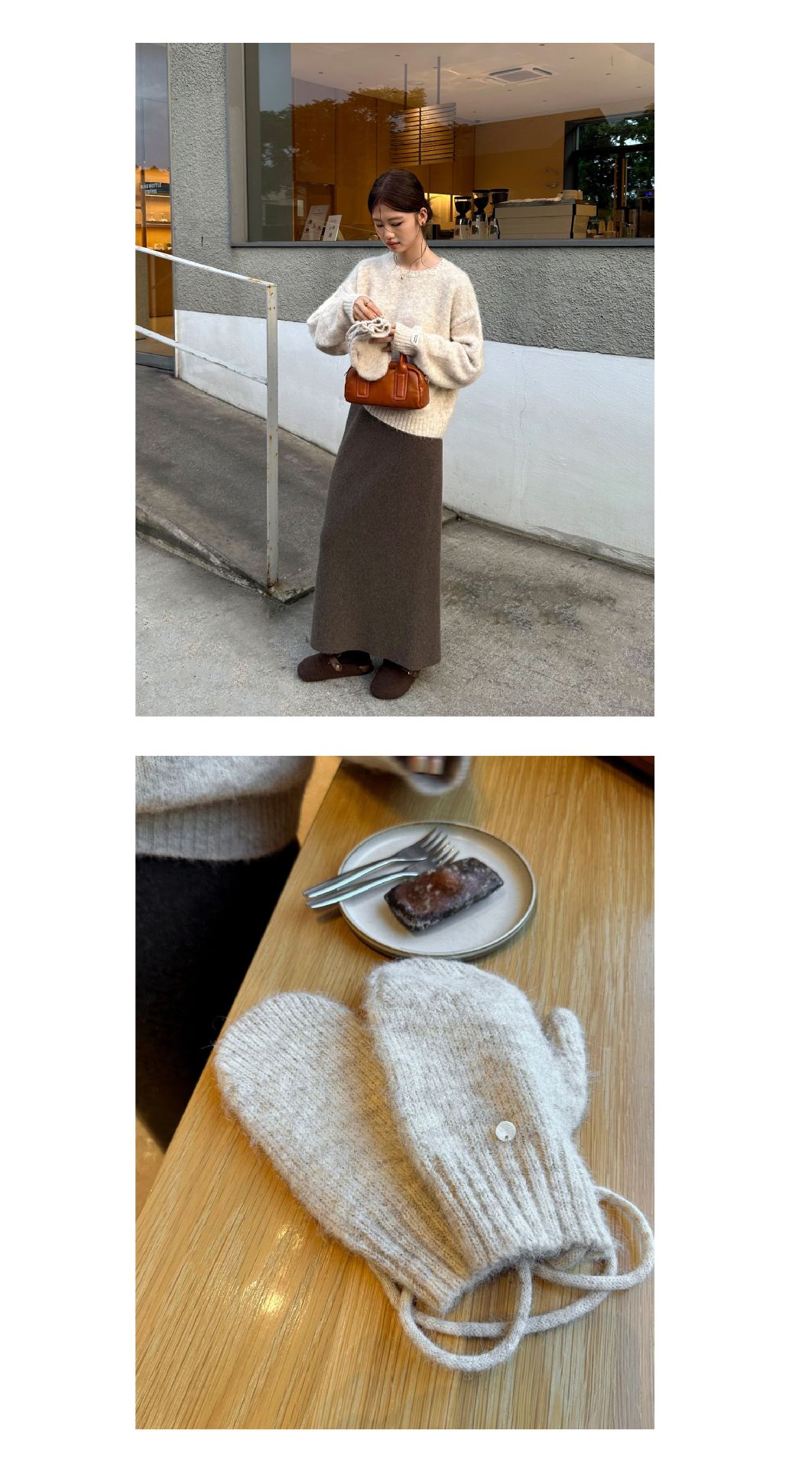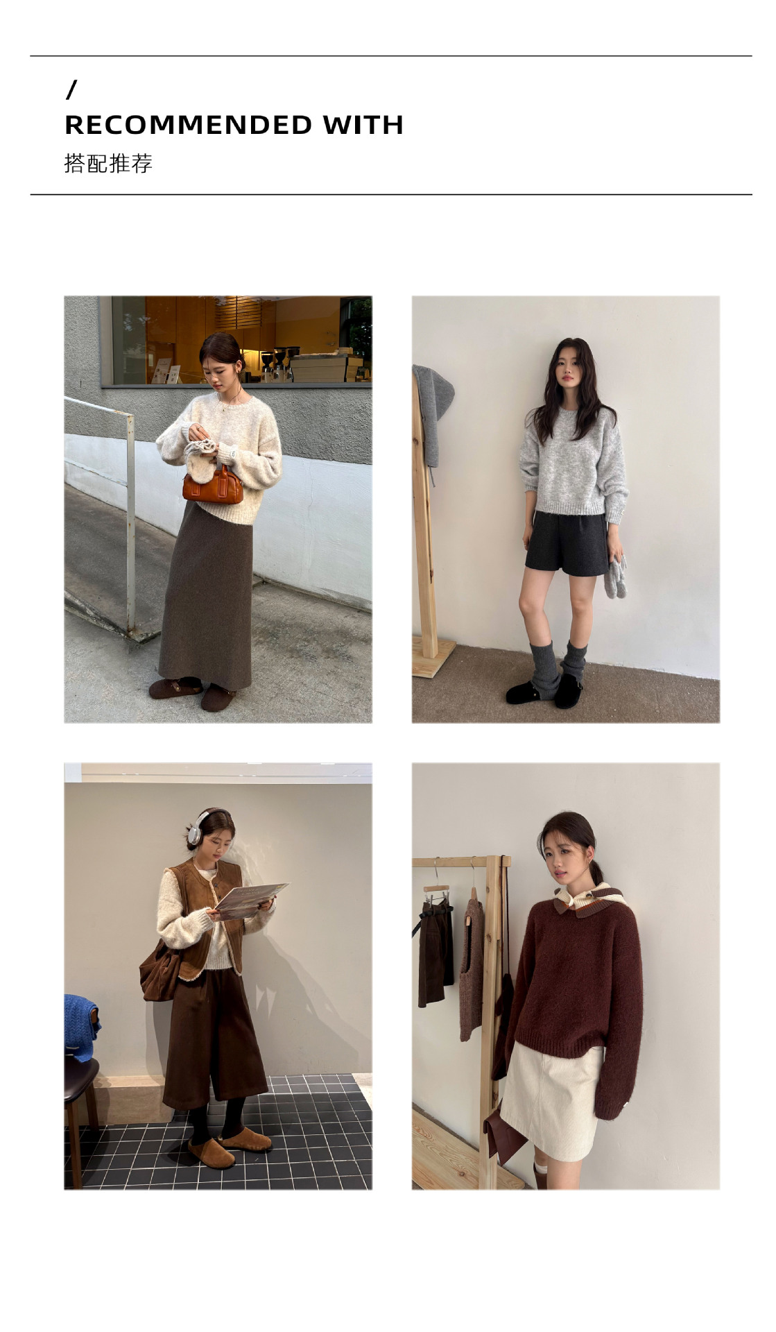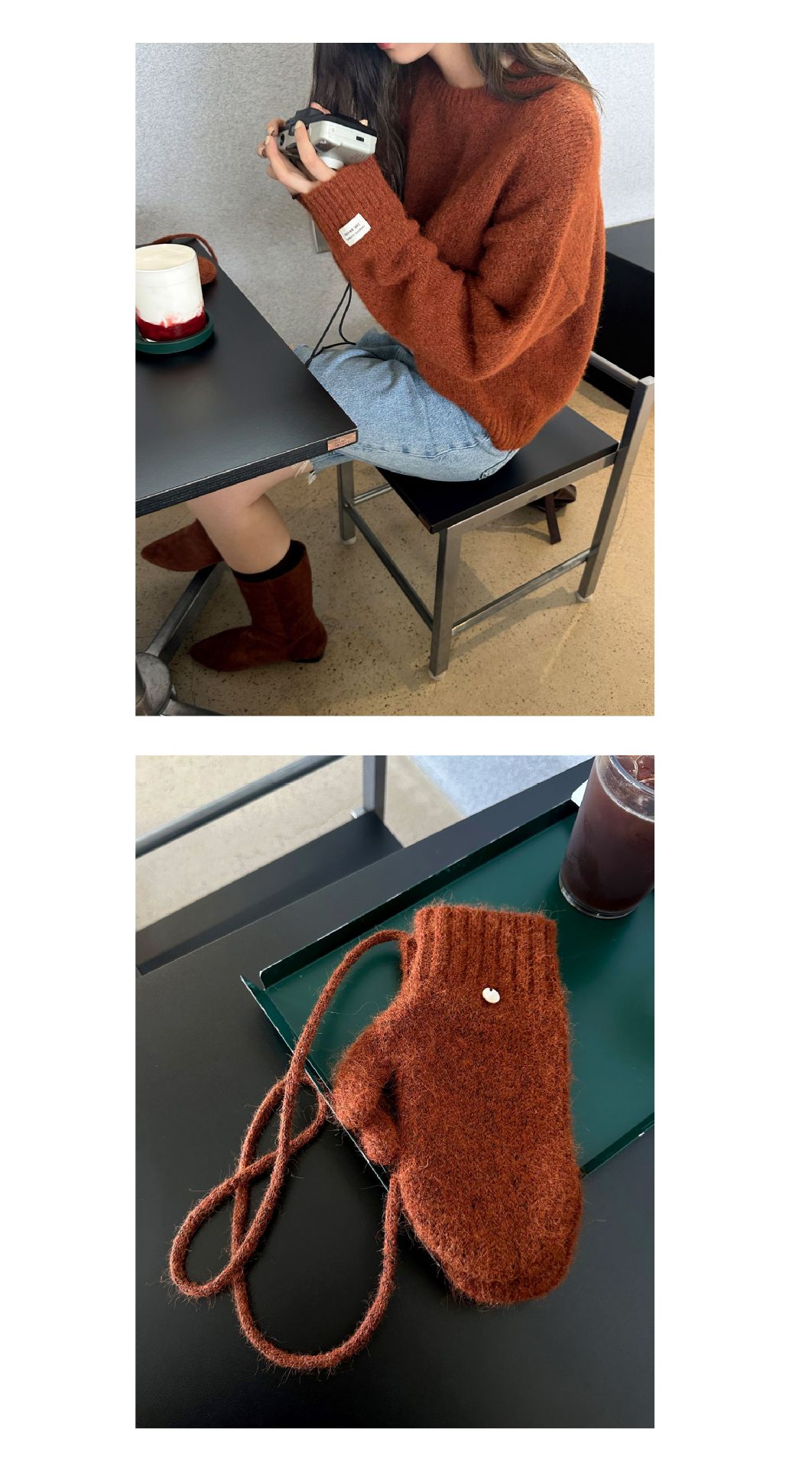 慵懒风圆领套头毛衣(配手套)338