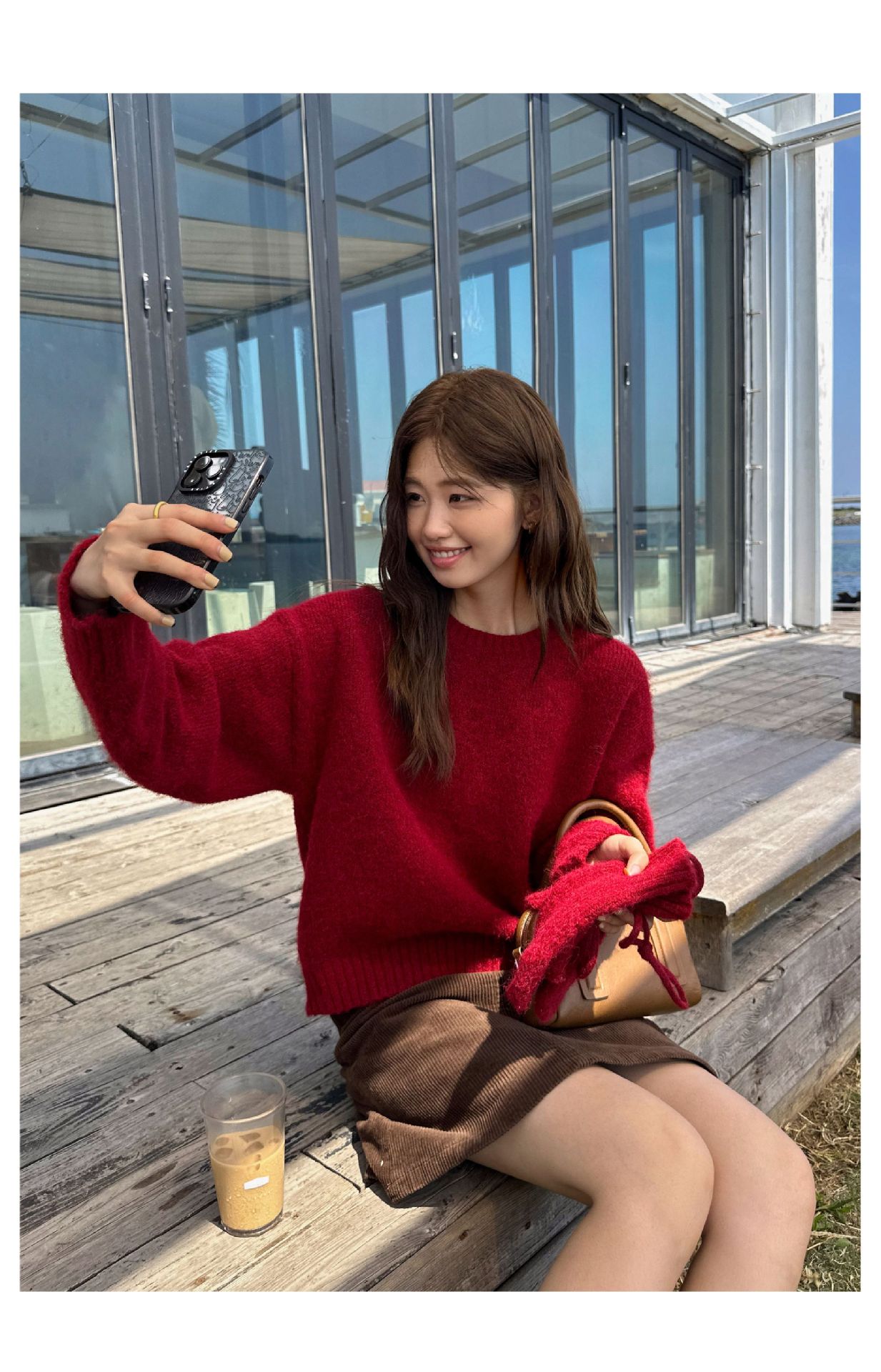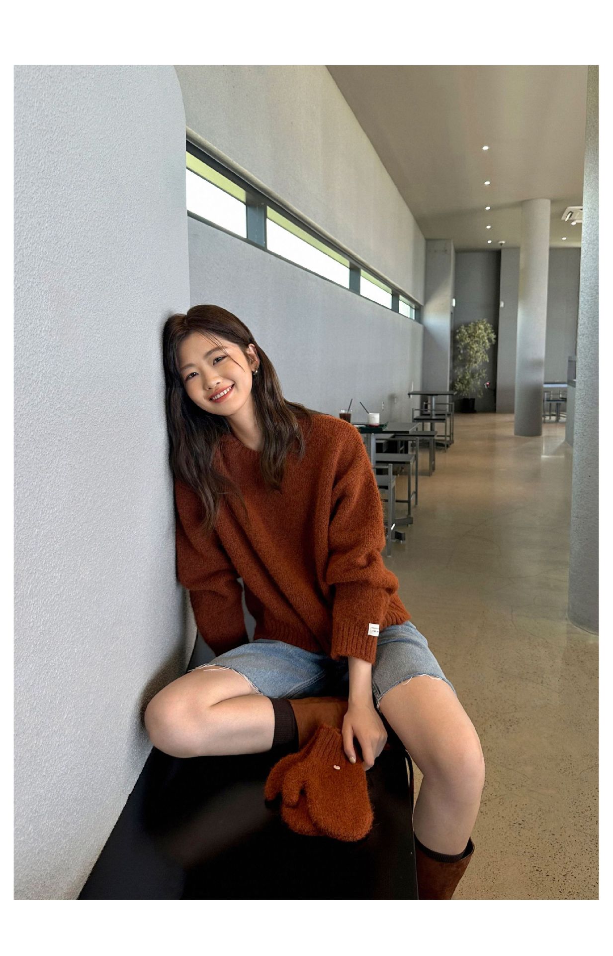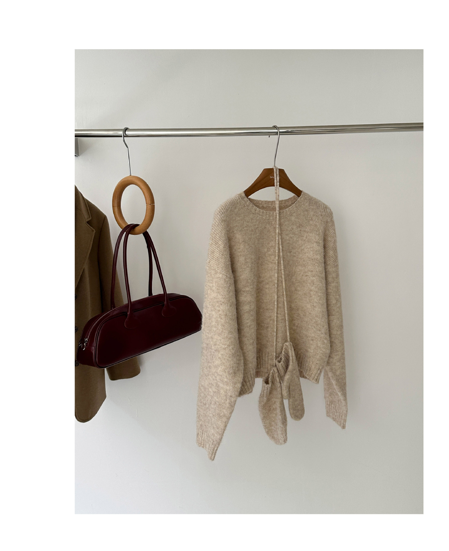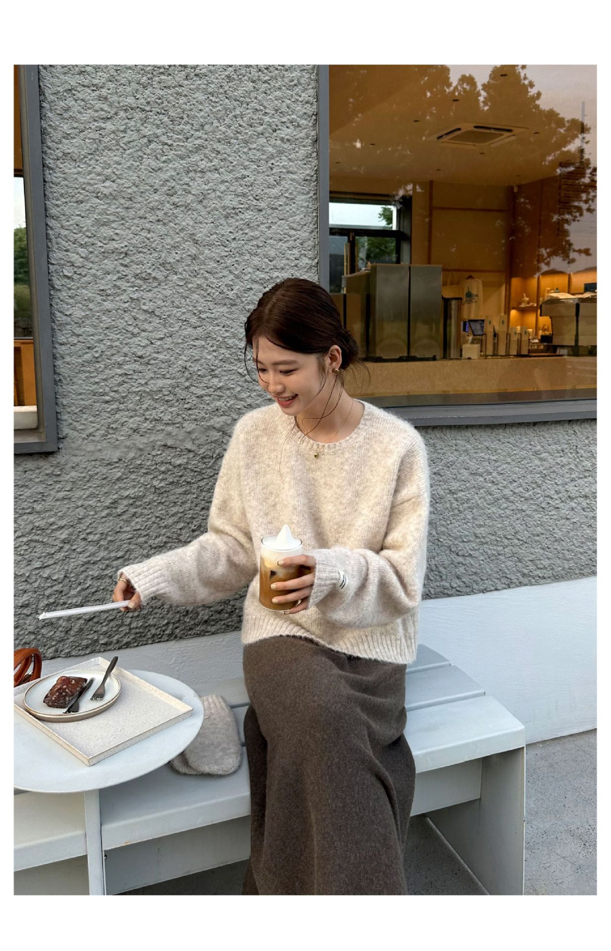 慵懒风圆领套头毛衣(配手套)338