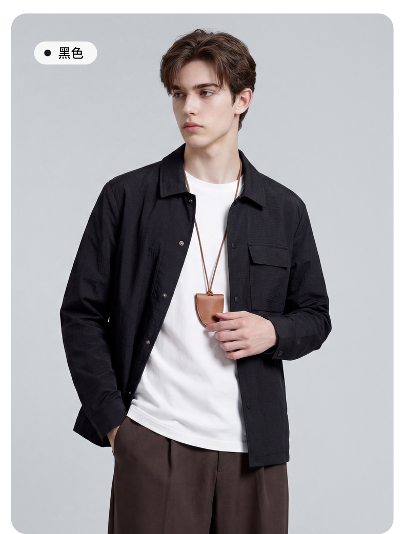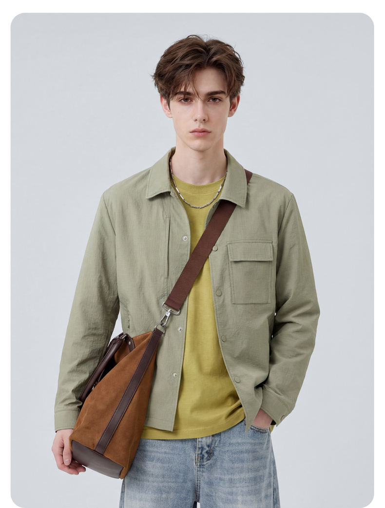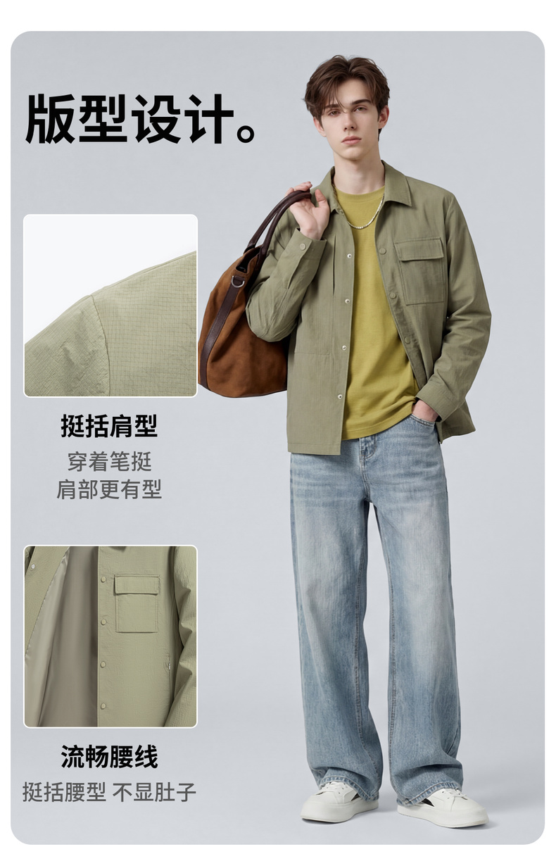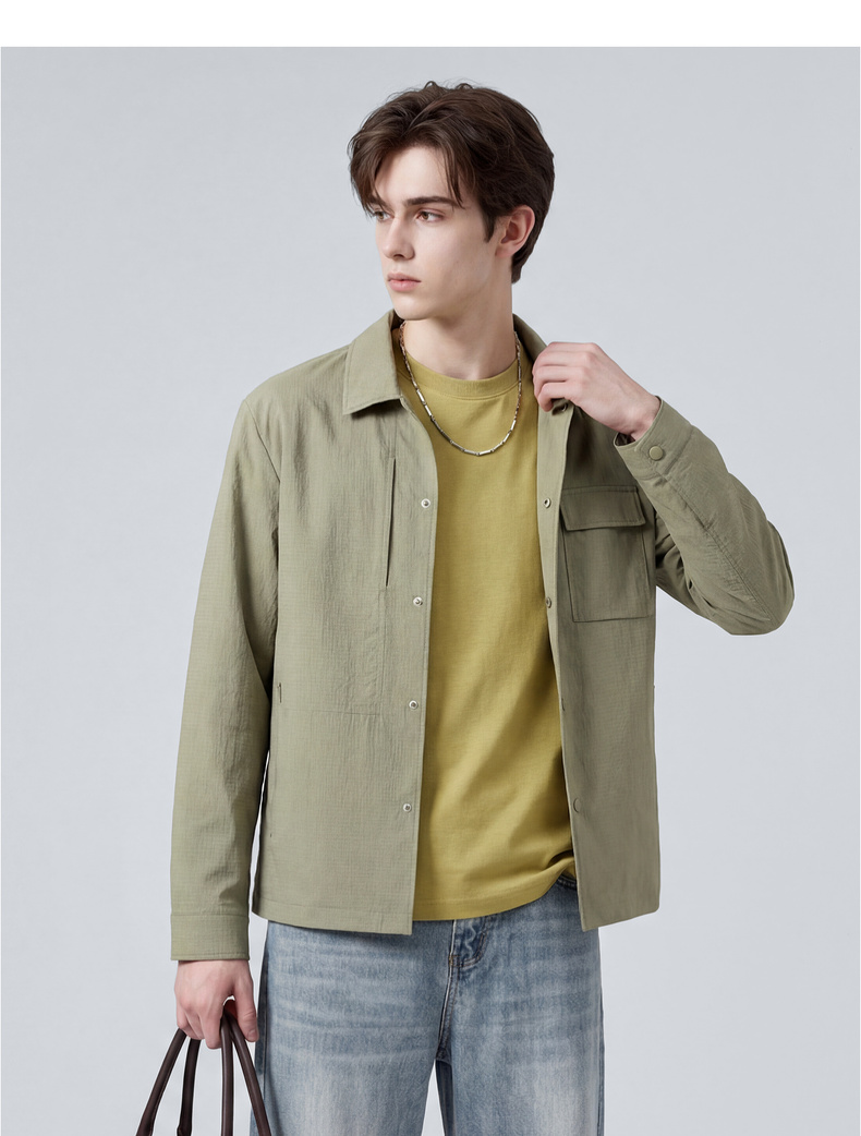 【易打理】圣得西肌理格纹工装夹克2026新款春季男款时尚翻领外套