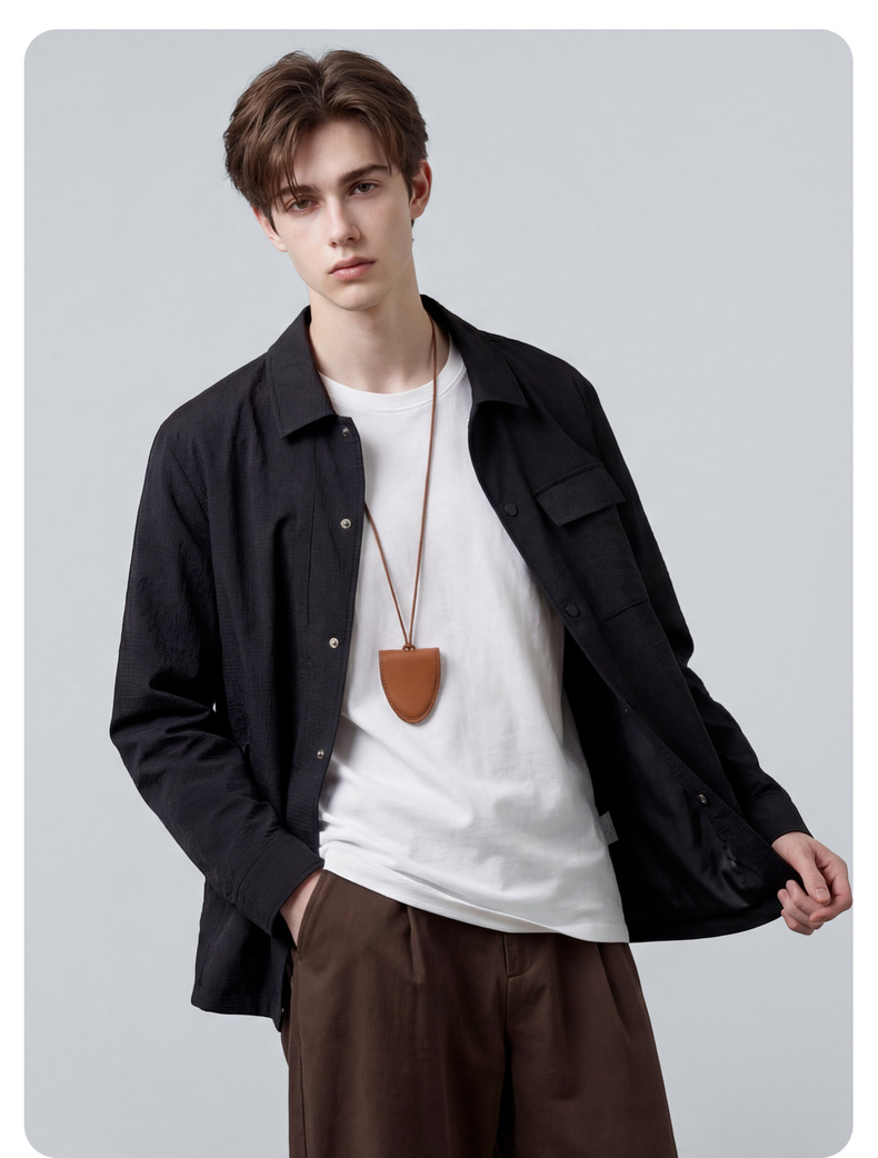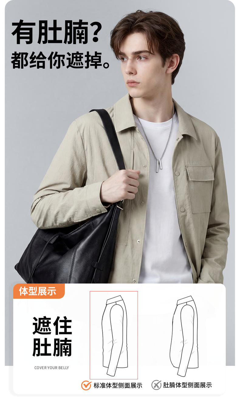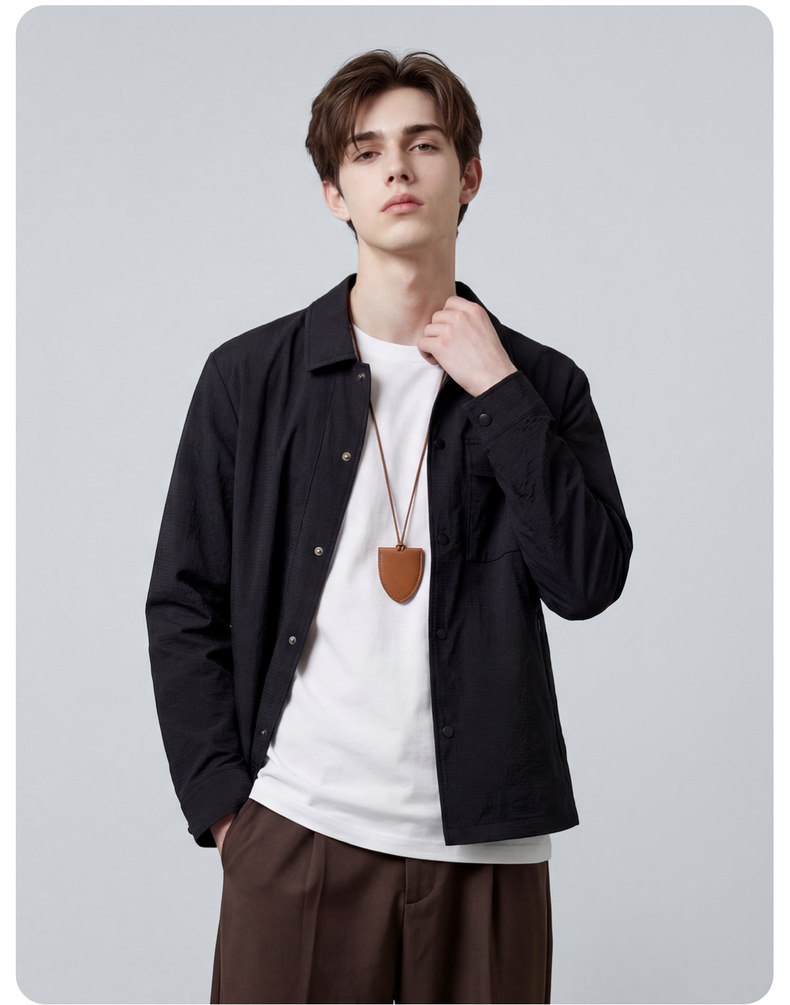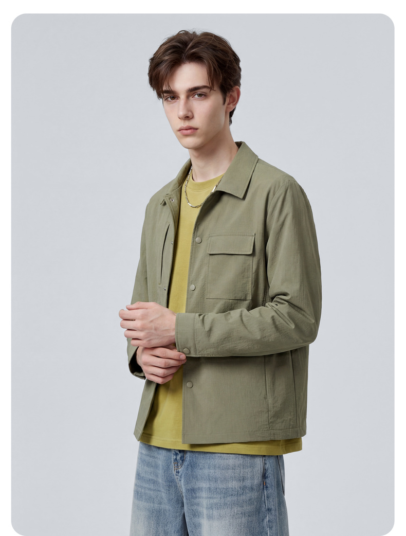 【易打理】圣得西肌理格纹工装夹克2026新款春季男款时尚翻领外套