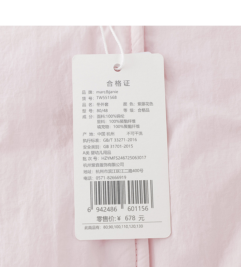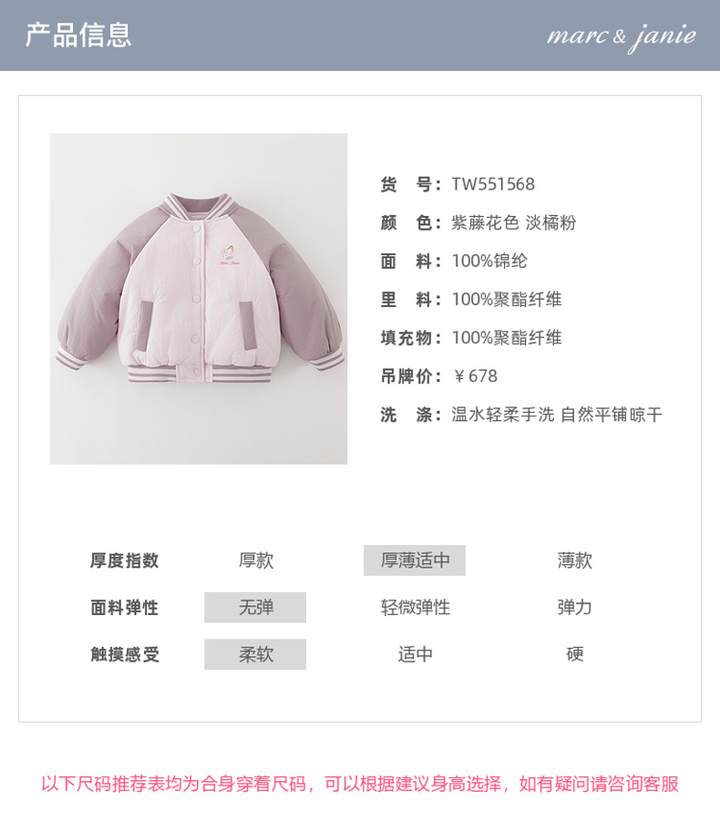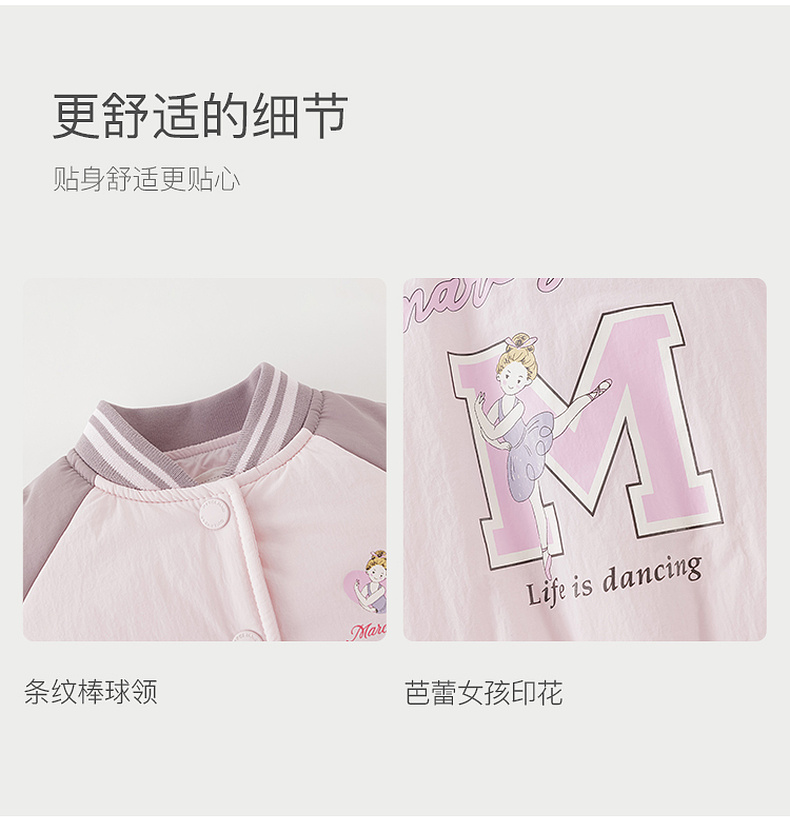 【无氟防泼水】马克珍妮女童芭蕾女孩夹棉拼色棒球服秋冬款551568