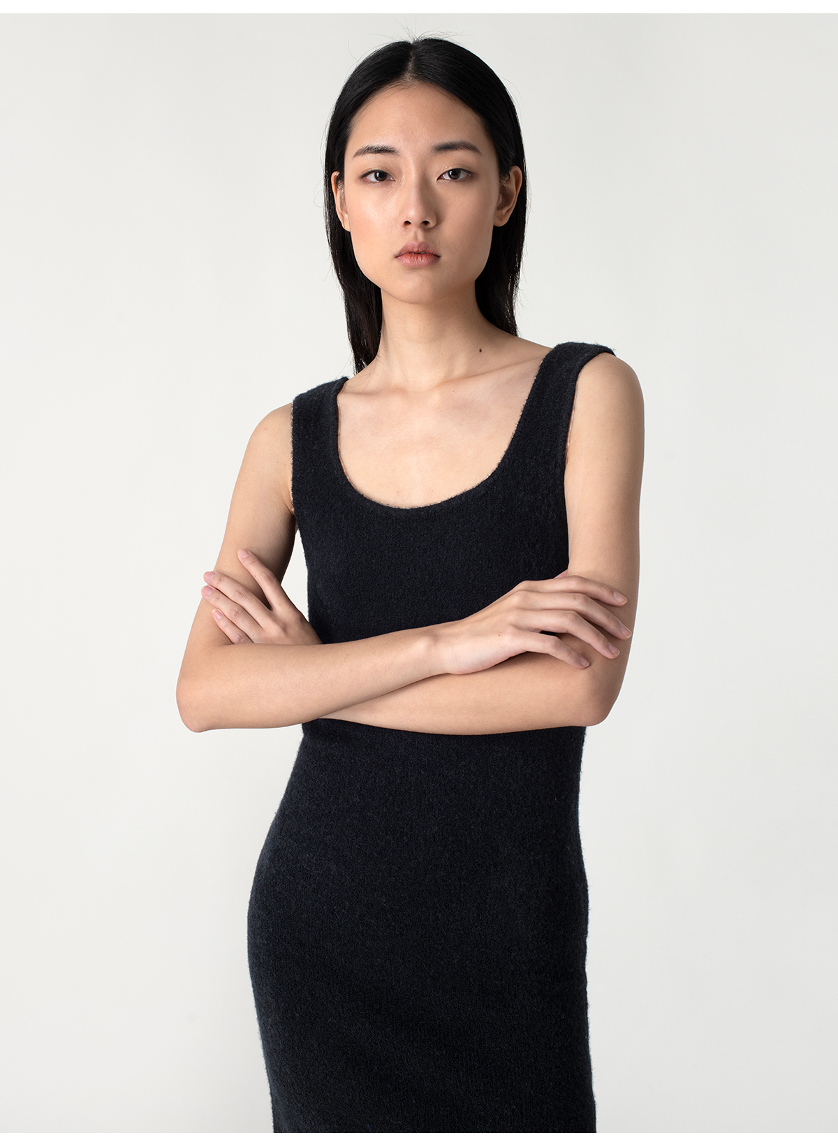 322工房新意短毛绒圈圈纱羊毛针织背心裙2023春夏U领中长款裙B017
