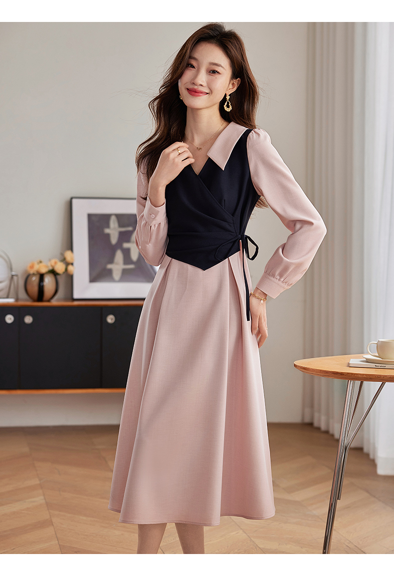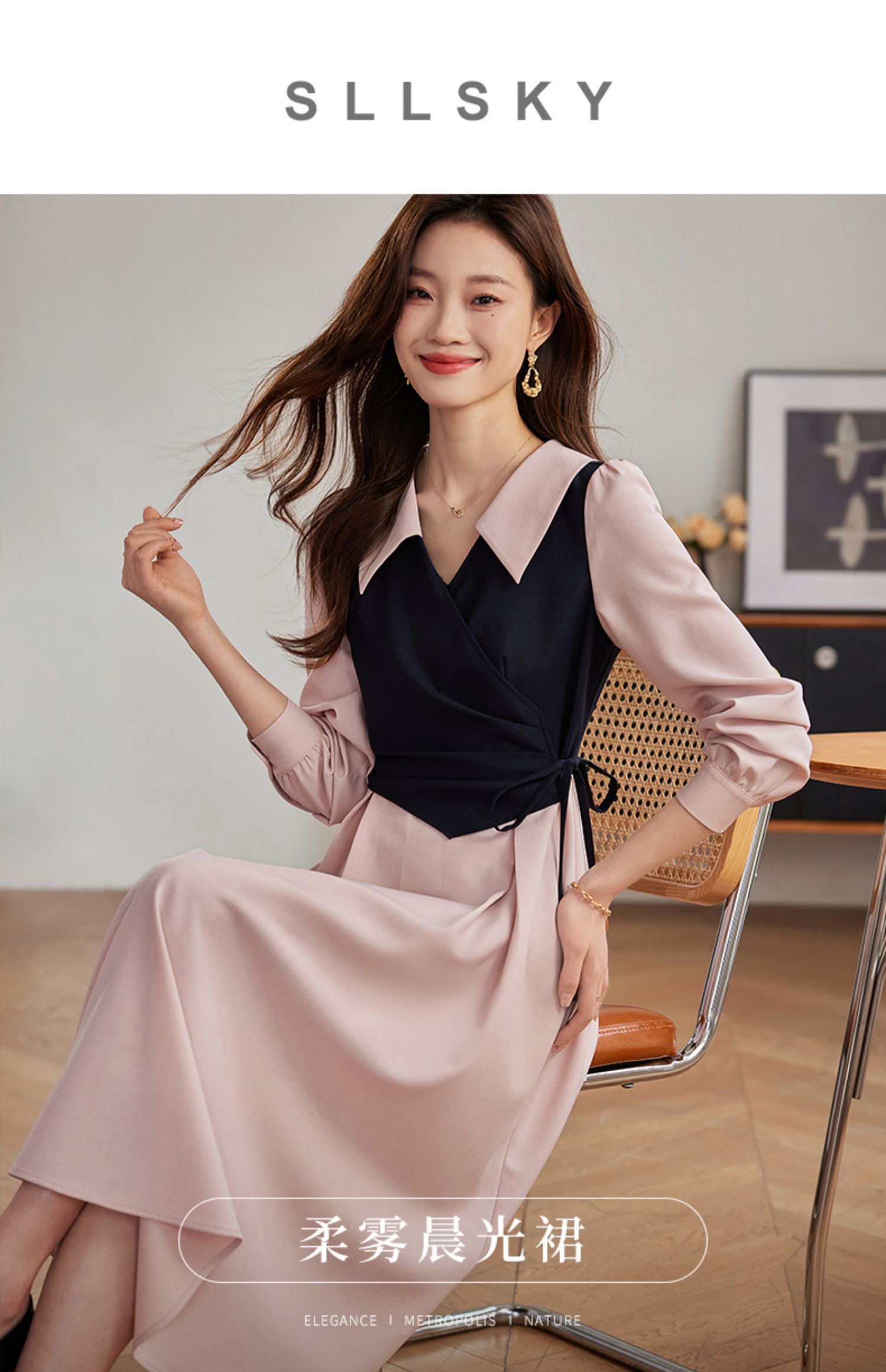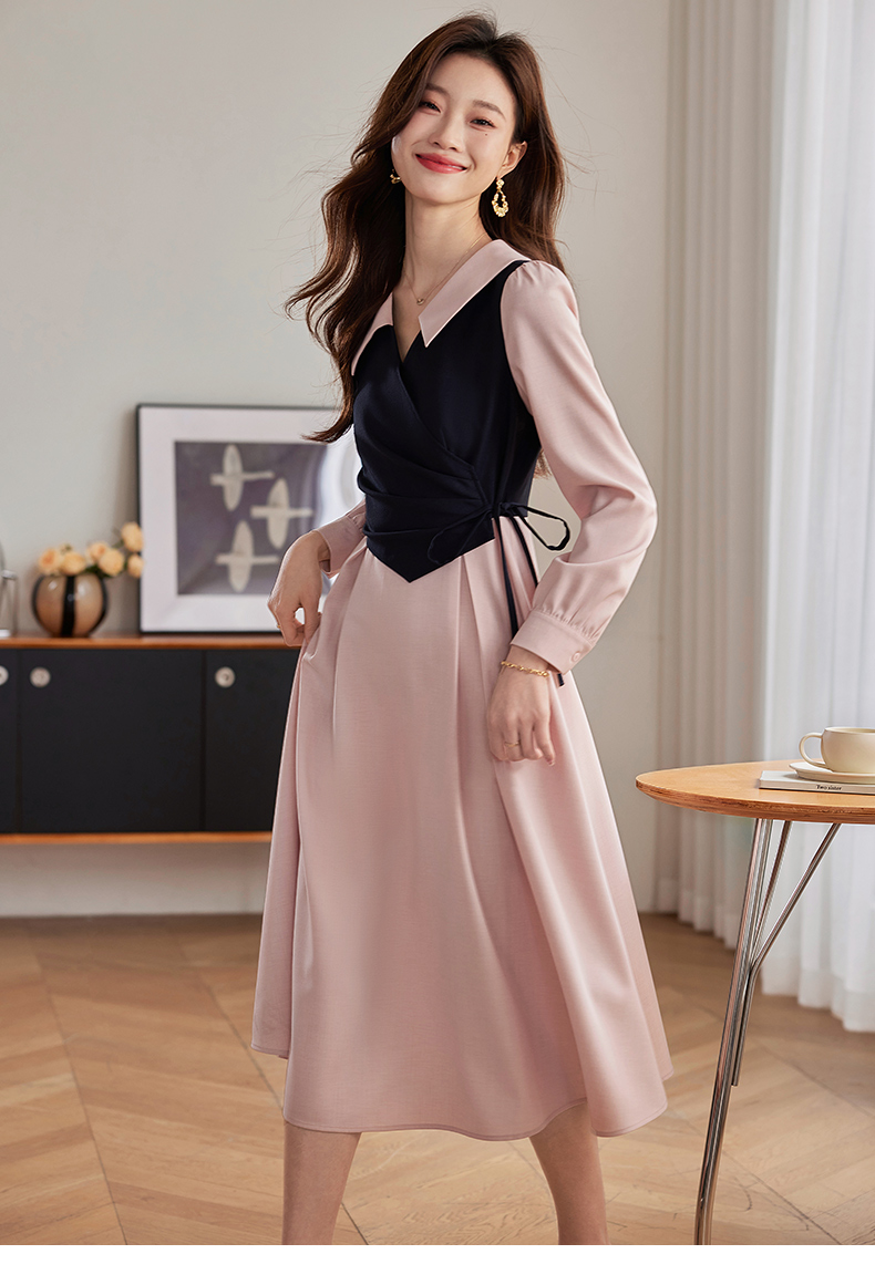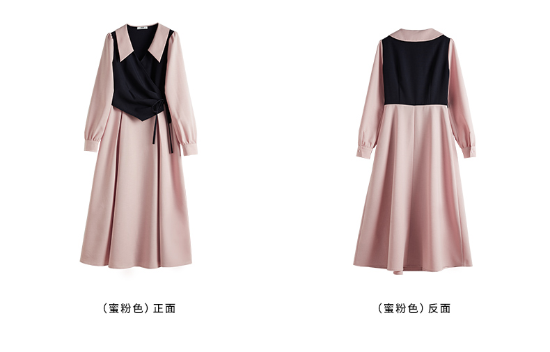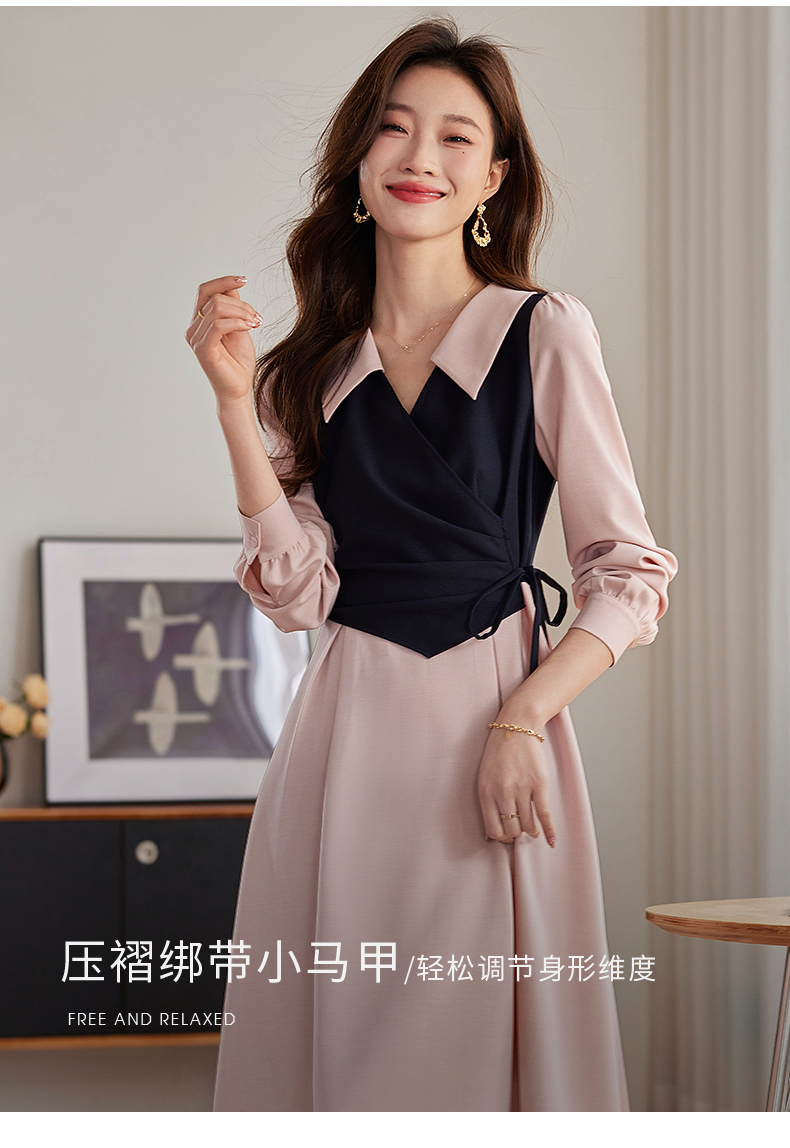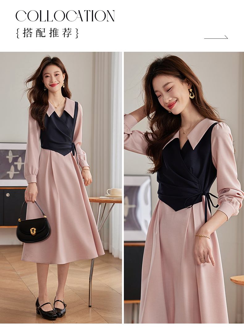 【专属特惠】熙世界法式气质撞色假两件连衣裙女高级感收腰显瘦裙子2025秋款