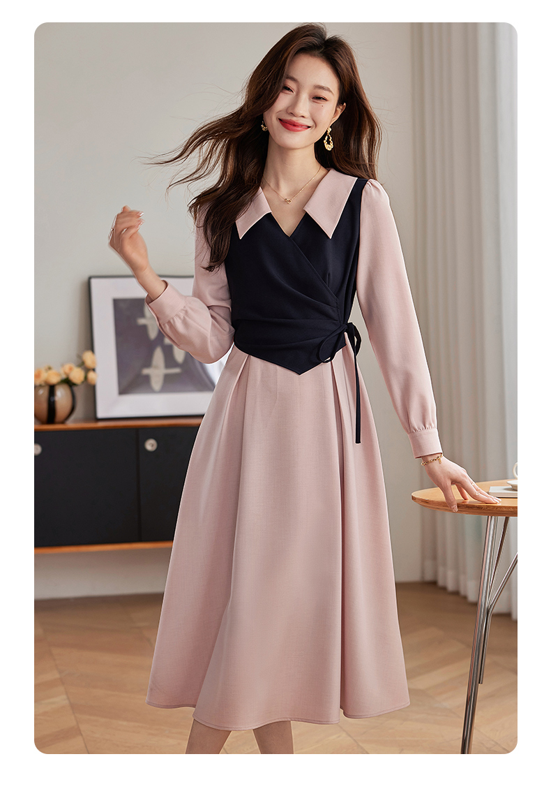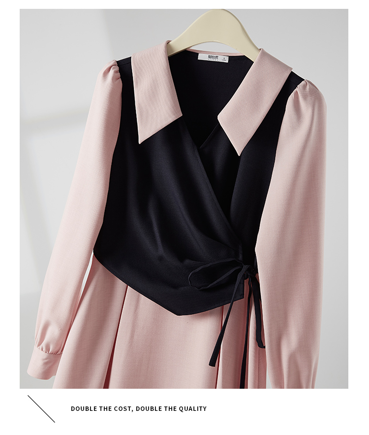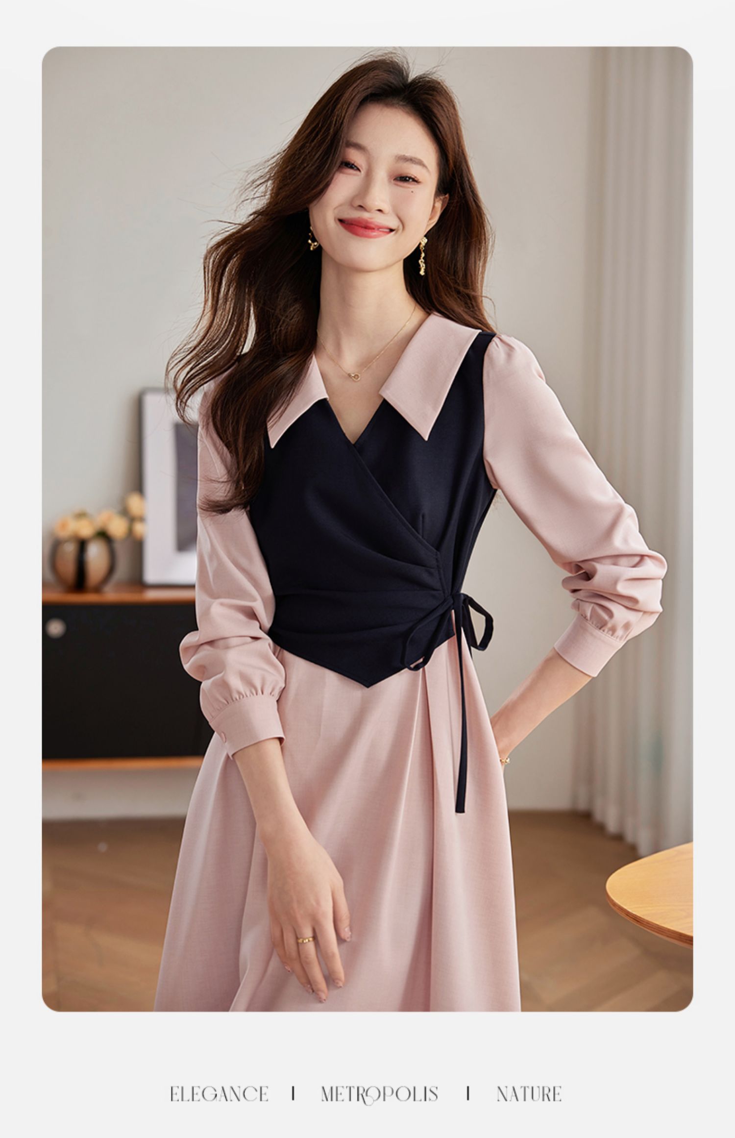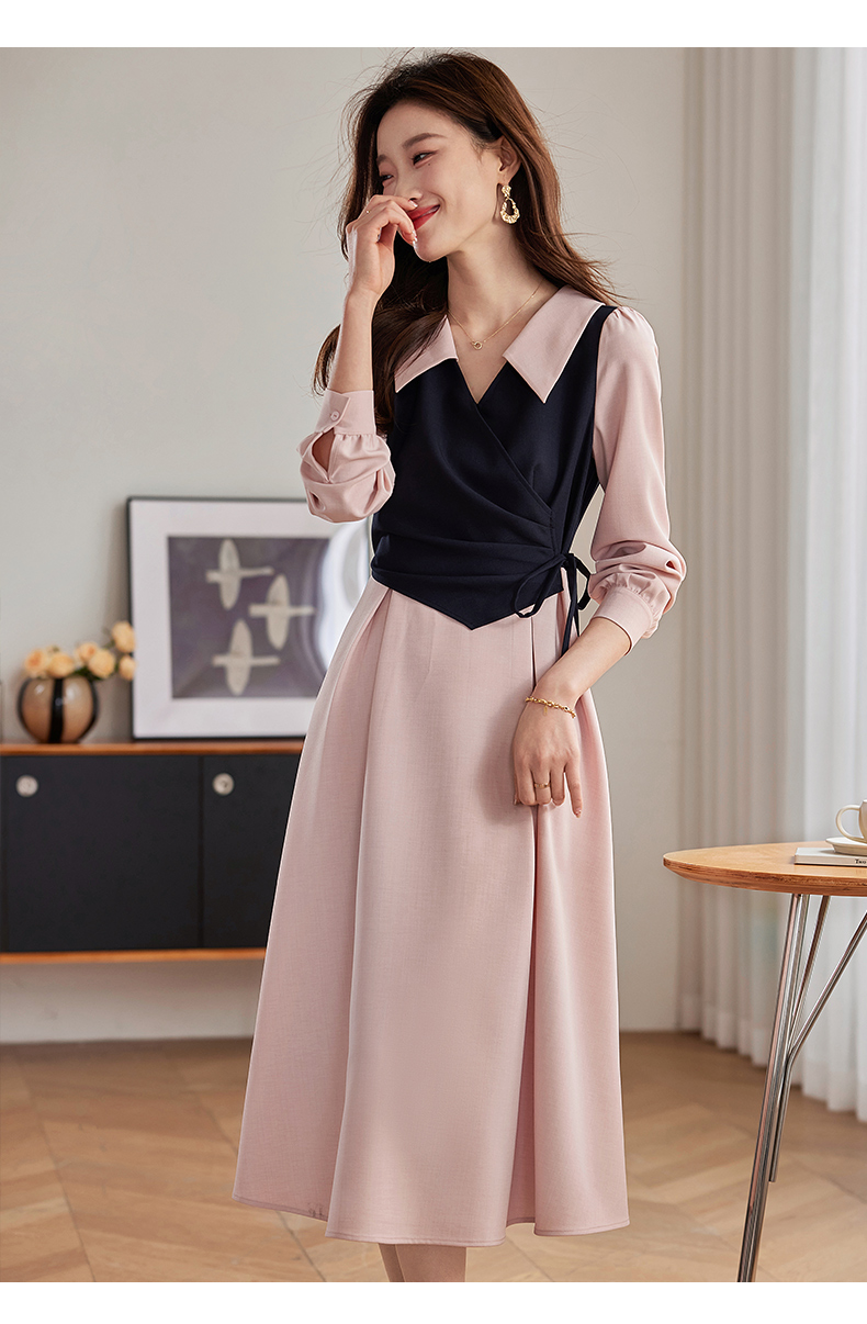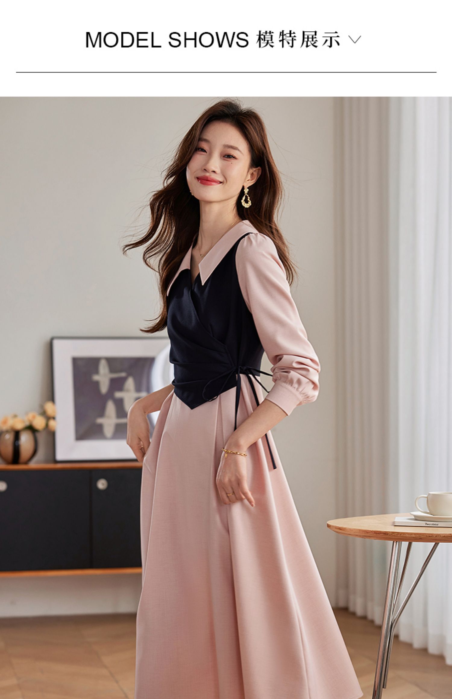 【专属特惠】熙世界法式气质撞色假两件连衣裙女高级感收腰显瘦裙子2025秋款
