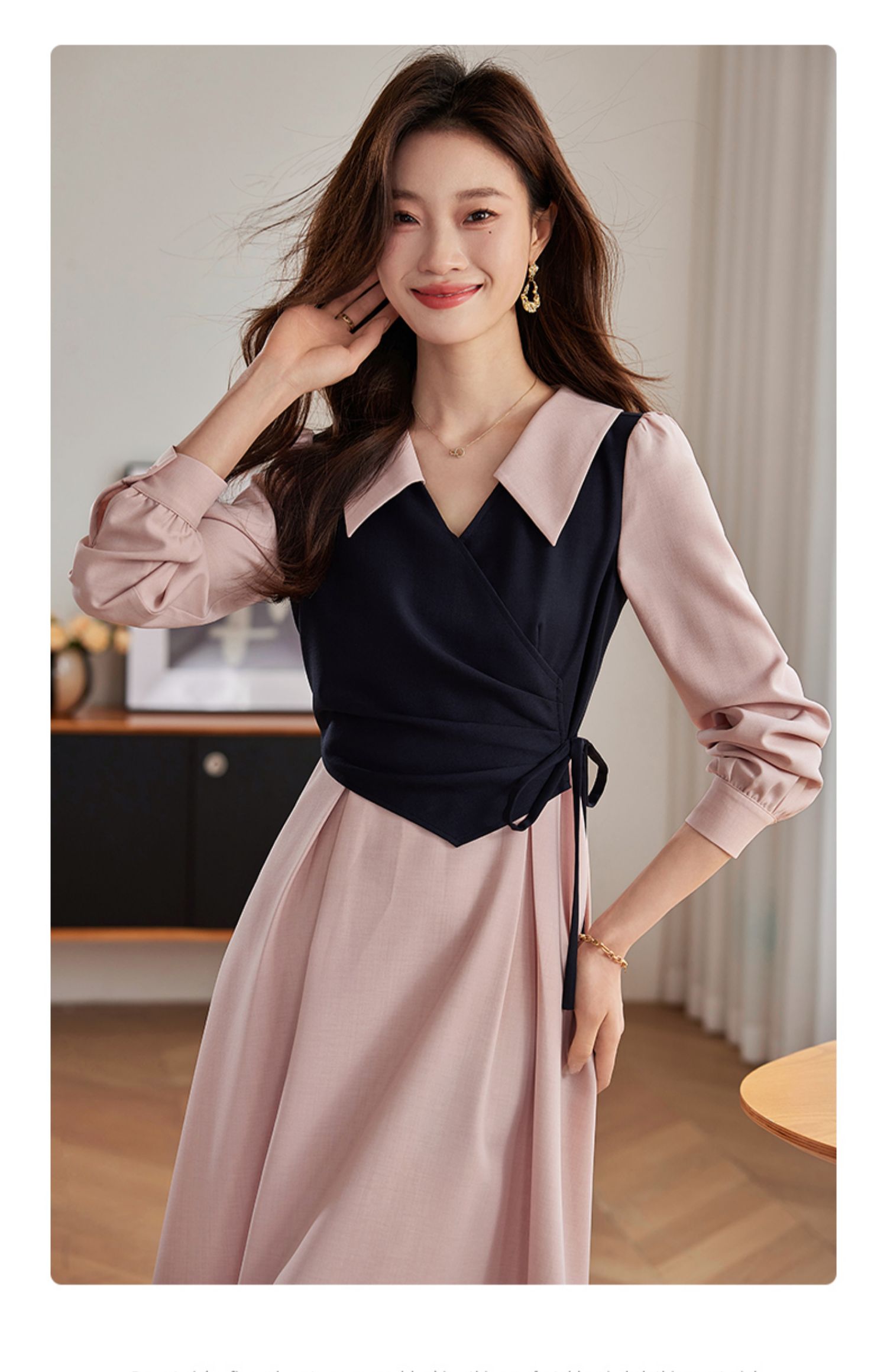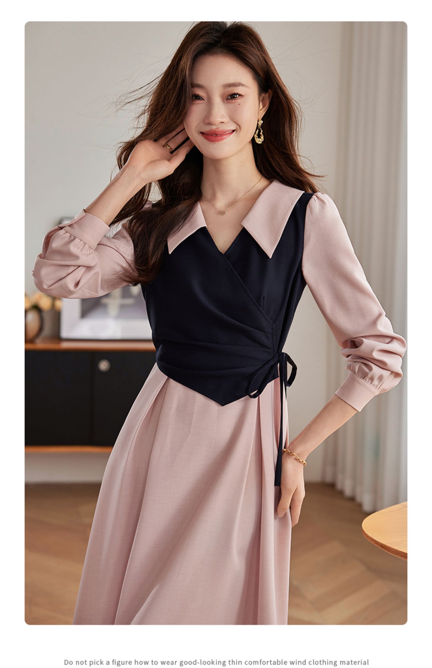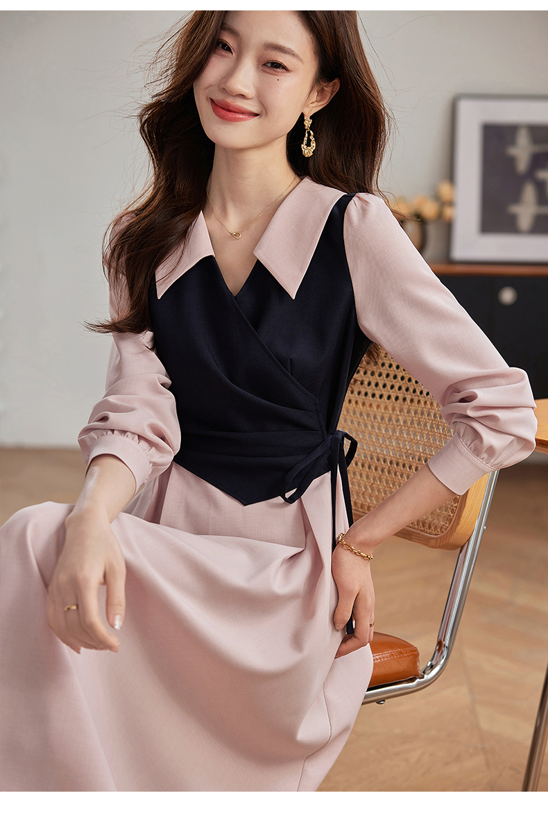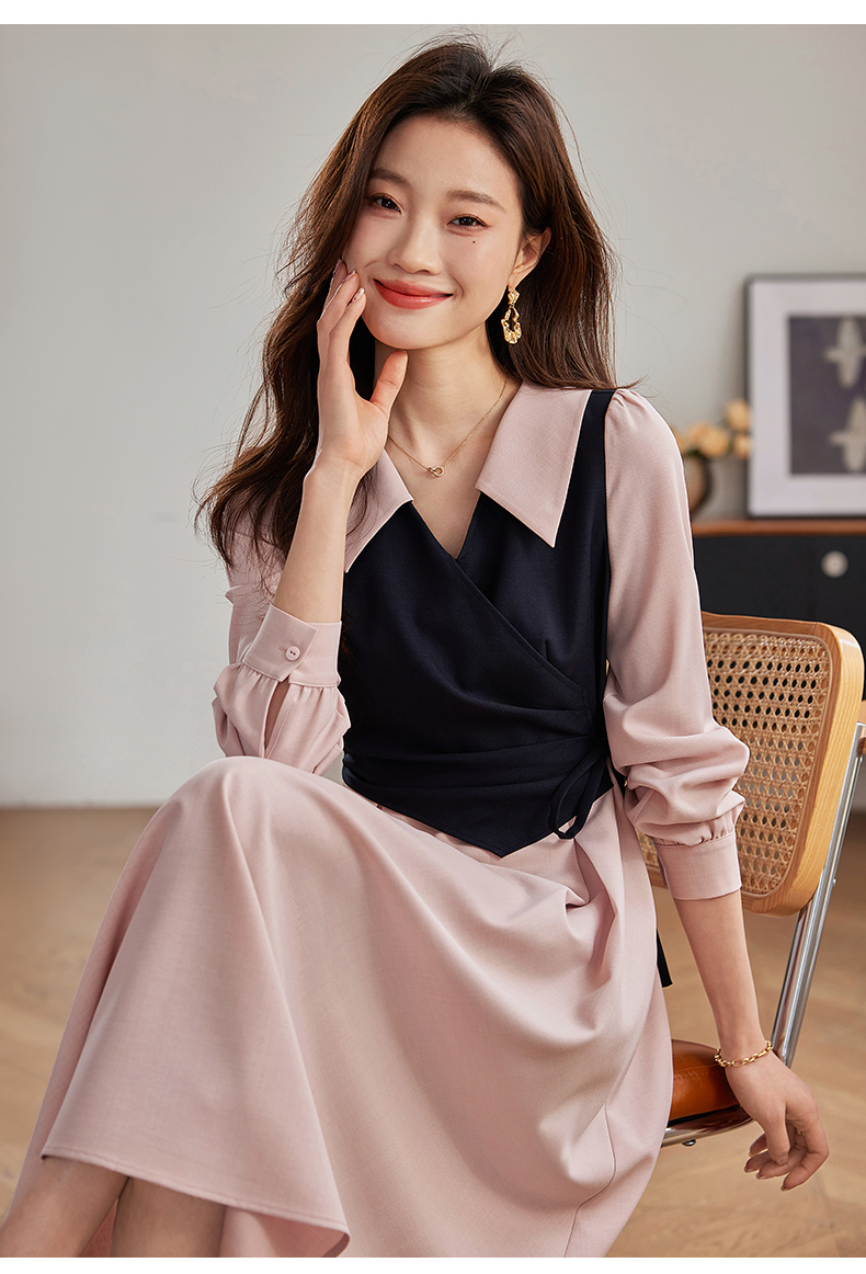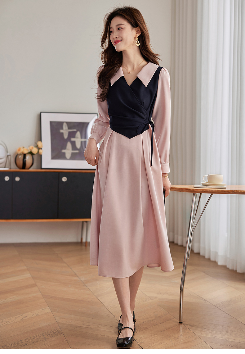 【专属特惠】熙世界法式气质撞色假两件连衣裙女高级感收腰显瘦裙子2025秋款