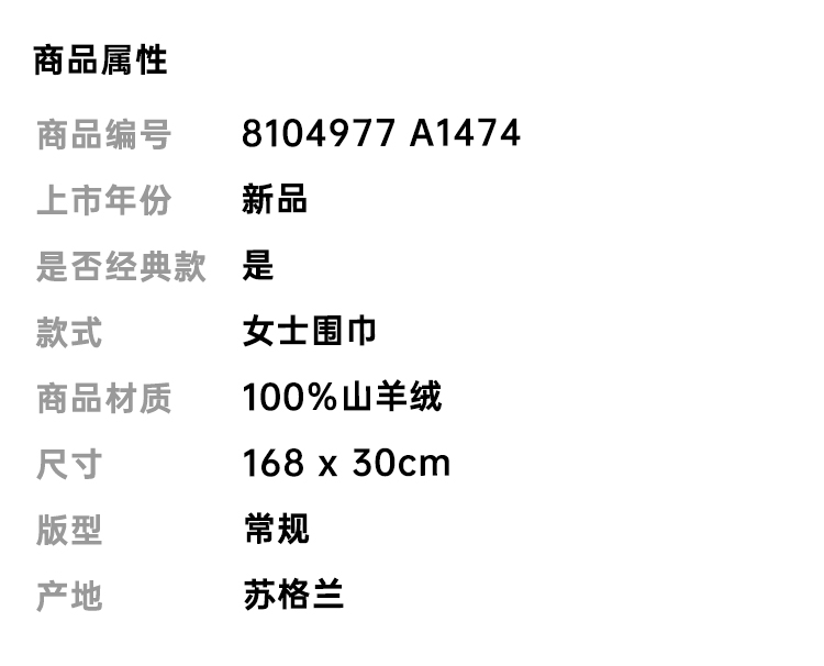 BURBERRY 巴宝莉 女士对比格纹羊绒双面围巾 格子 8104977 A1474