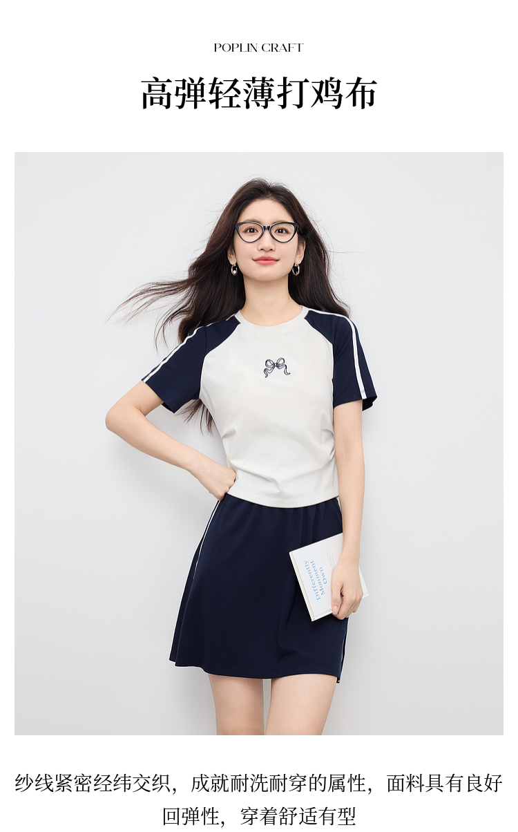 【07/09新品】熙世界休闲运动风时尚套装女2025年夏装新款撞色T恤a字短裙两件套