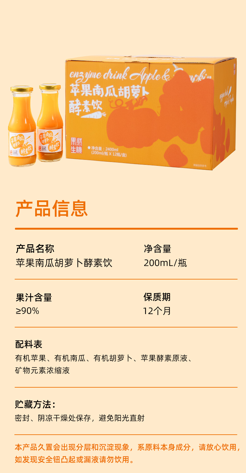 【商品名称】:苹果南瓜胡萝卜酵素饮