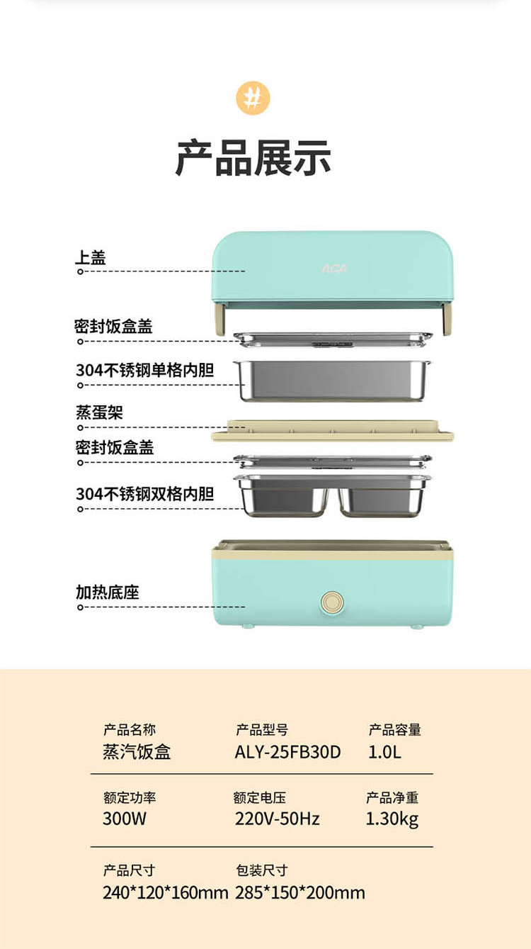 ACA北美电器 蒸汽饭盒ALY-25FB30D