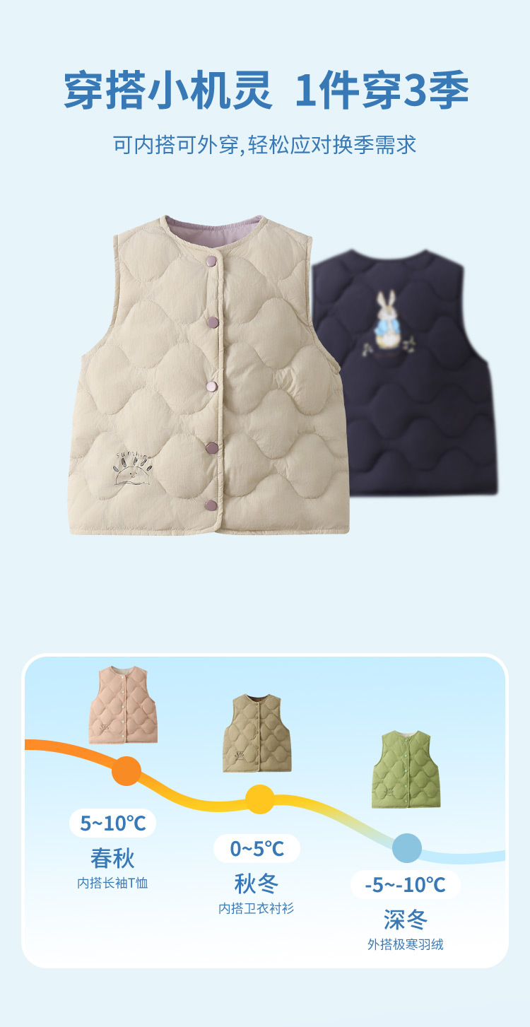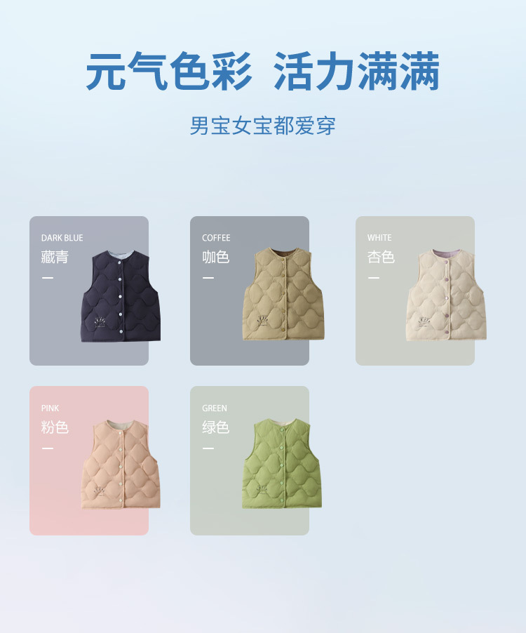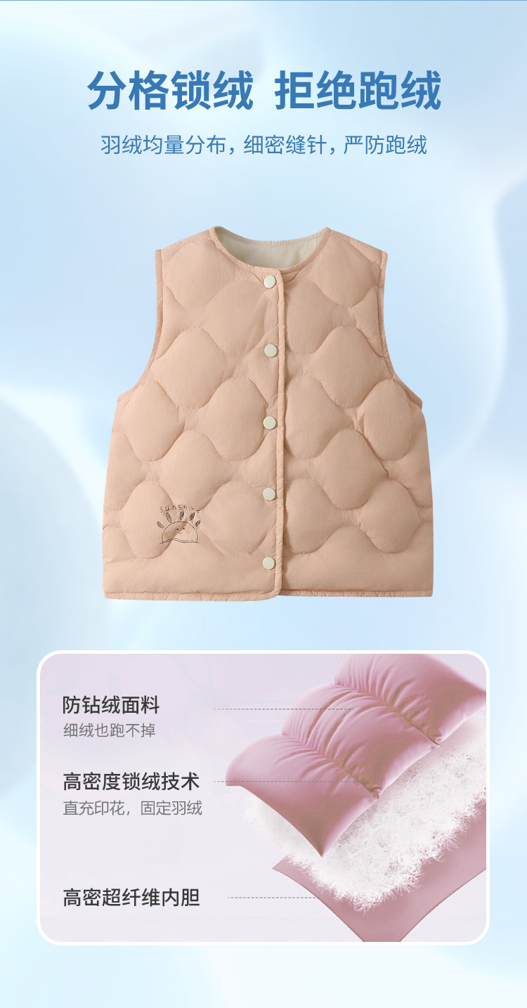 「五款配色!90%含绒量」呦奇2023冬季新款韩版无袖短款儿童羽绒佰搭舒适轻羽绒三季可穿童装