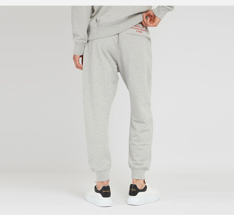 ALEXANDER MCQUEEN 亚历山大.麦昆 男士弹力棉质字母徽标印花休闲运动裤 浅灰色 711088 QTZ43 0902