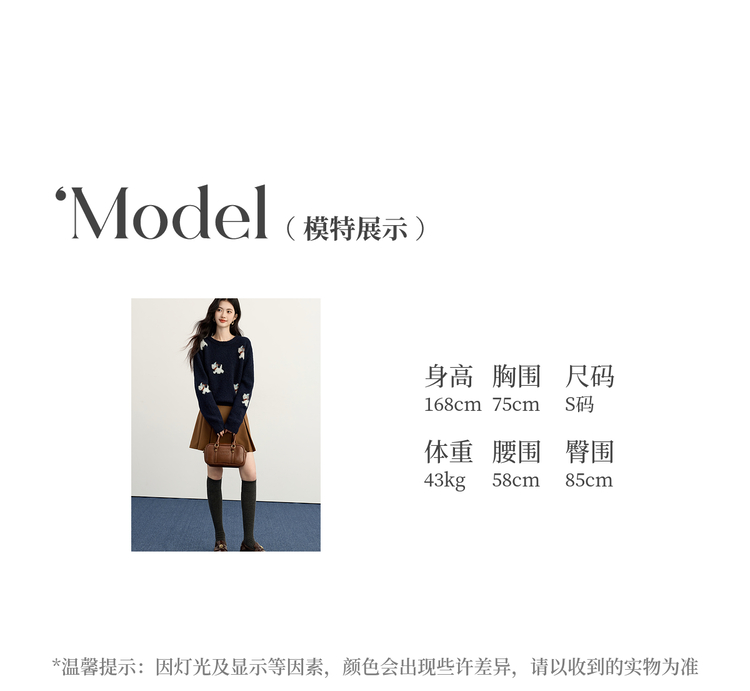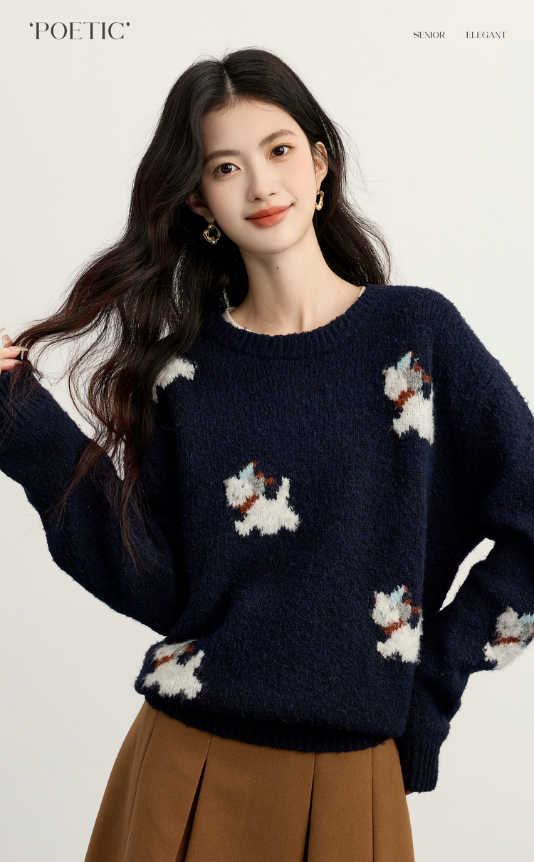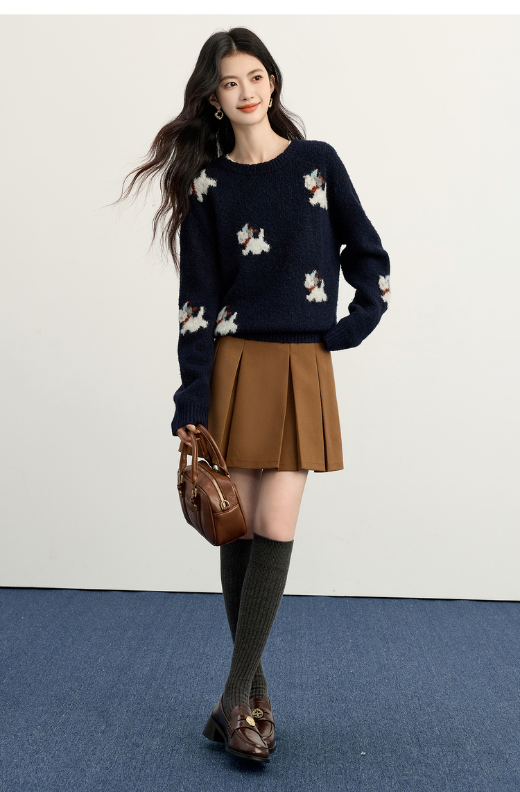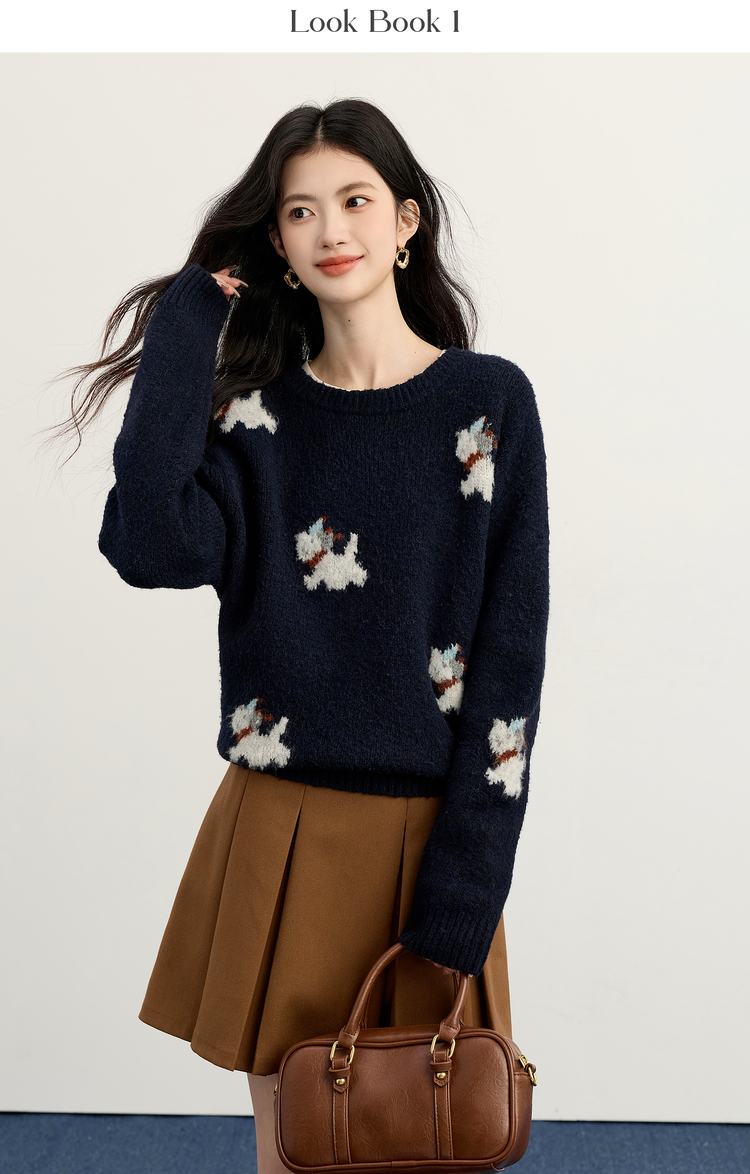 【11/26新品】熙世界糯叽叽小狗提花毛衣女2025冬季新款慵懒圆领内搭打底针织衫